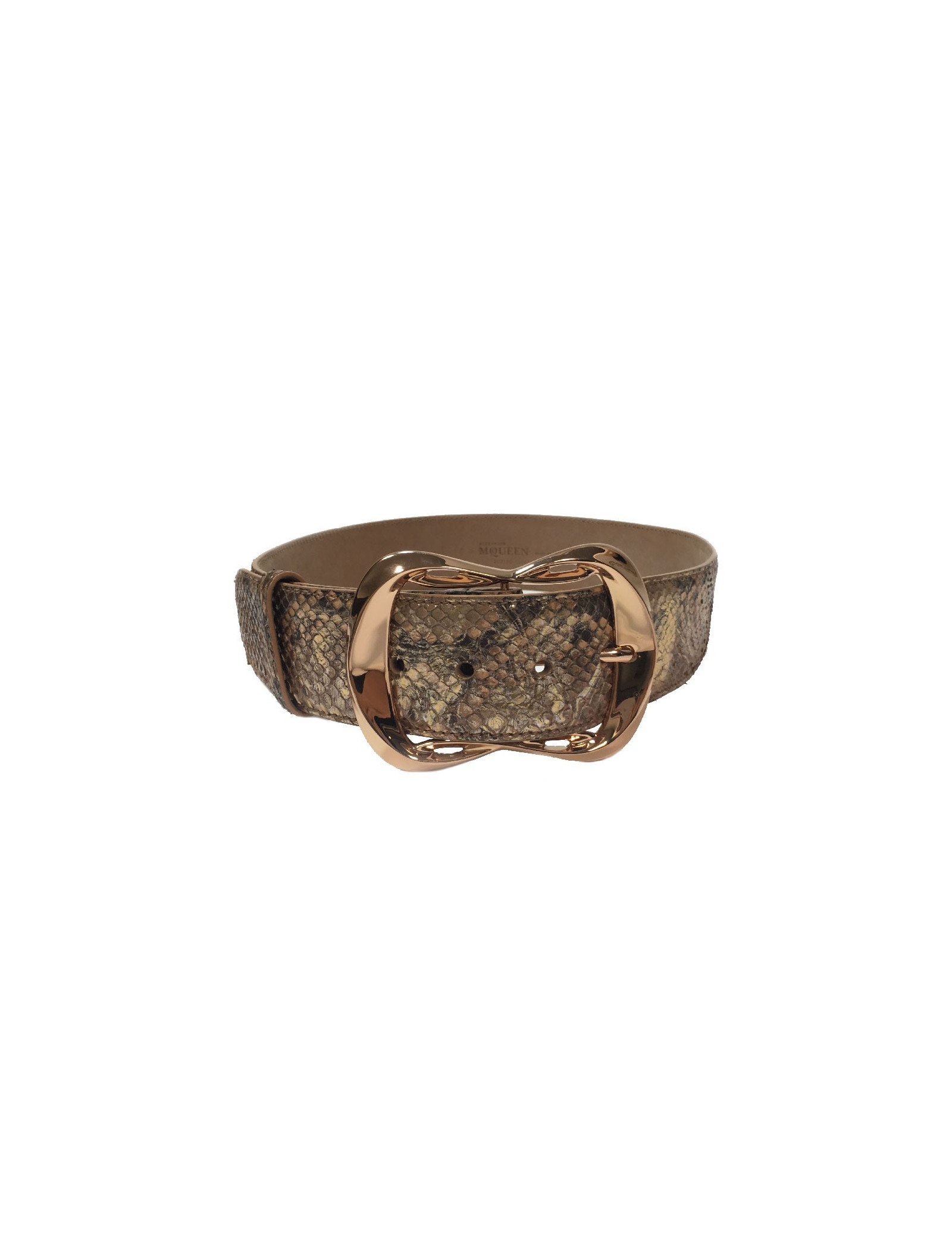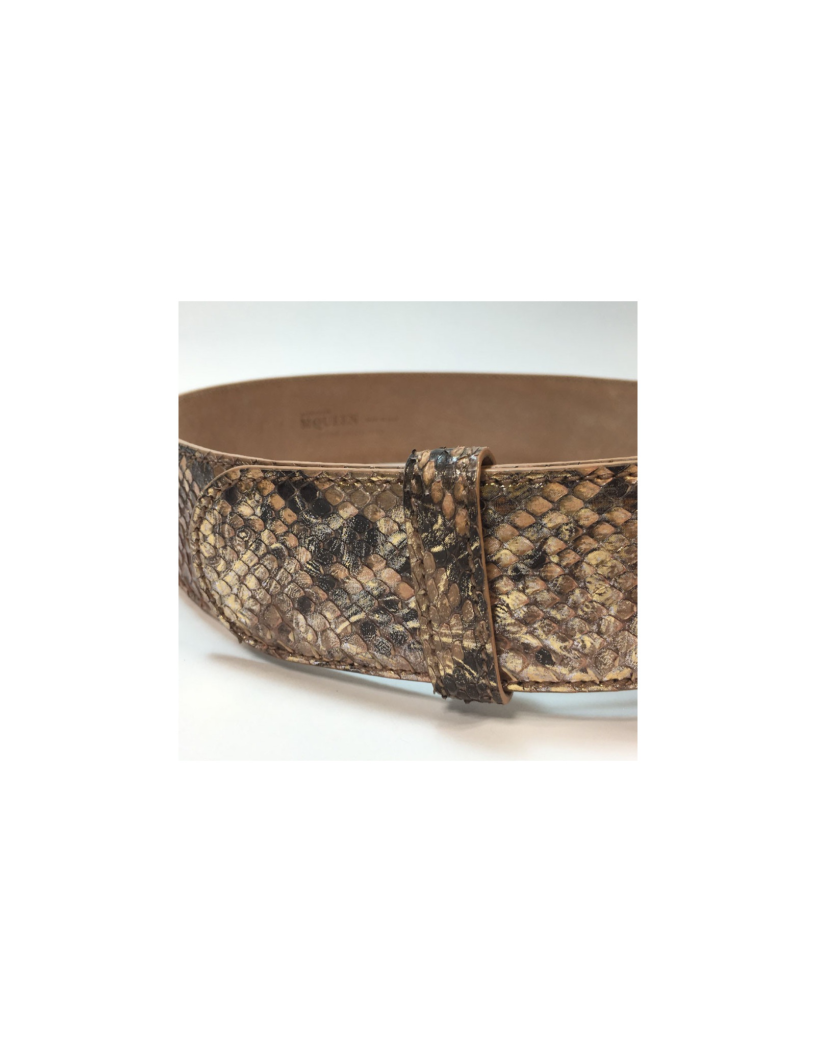 Ceinture ALEXANDER Mc QUEEN T75 en cuir exotique python rose irisé