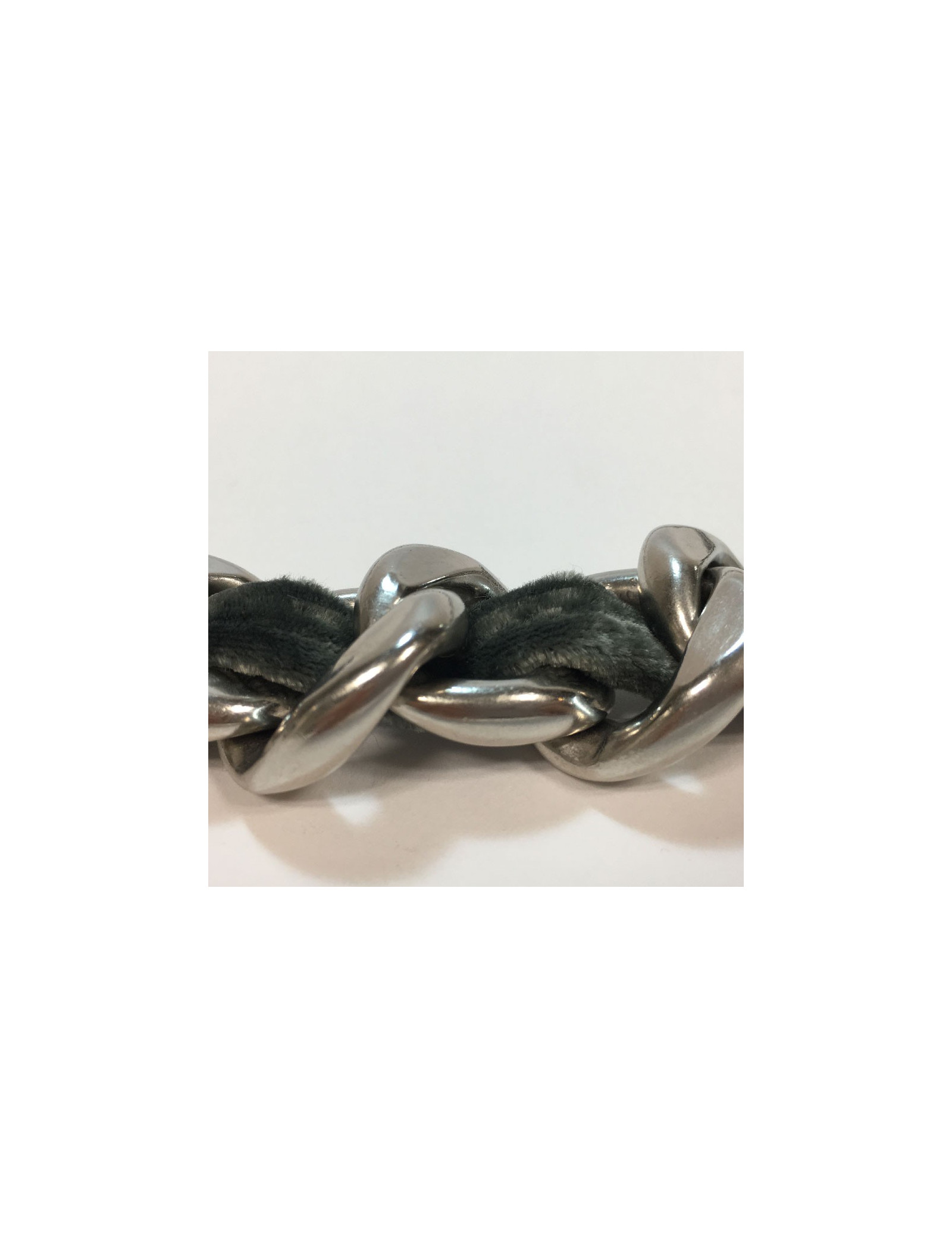 Ceinture CHANEL chaine en métal argenté entrelacée de velours gris