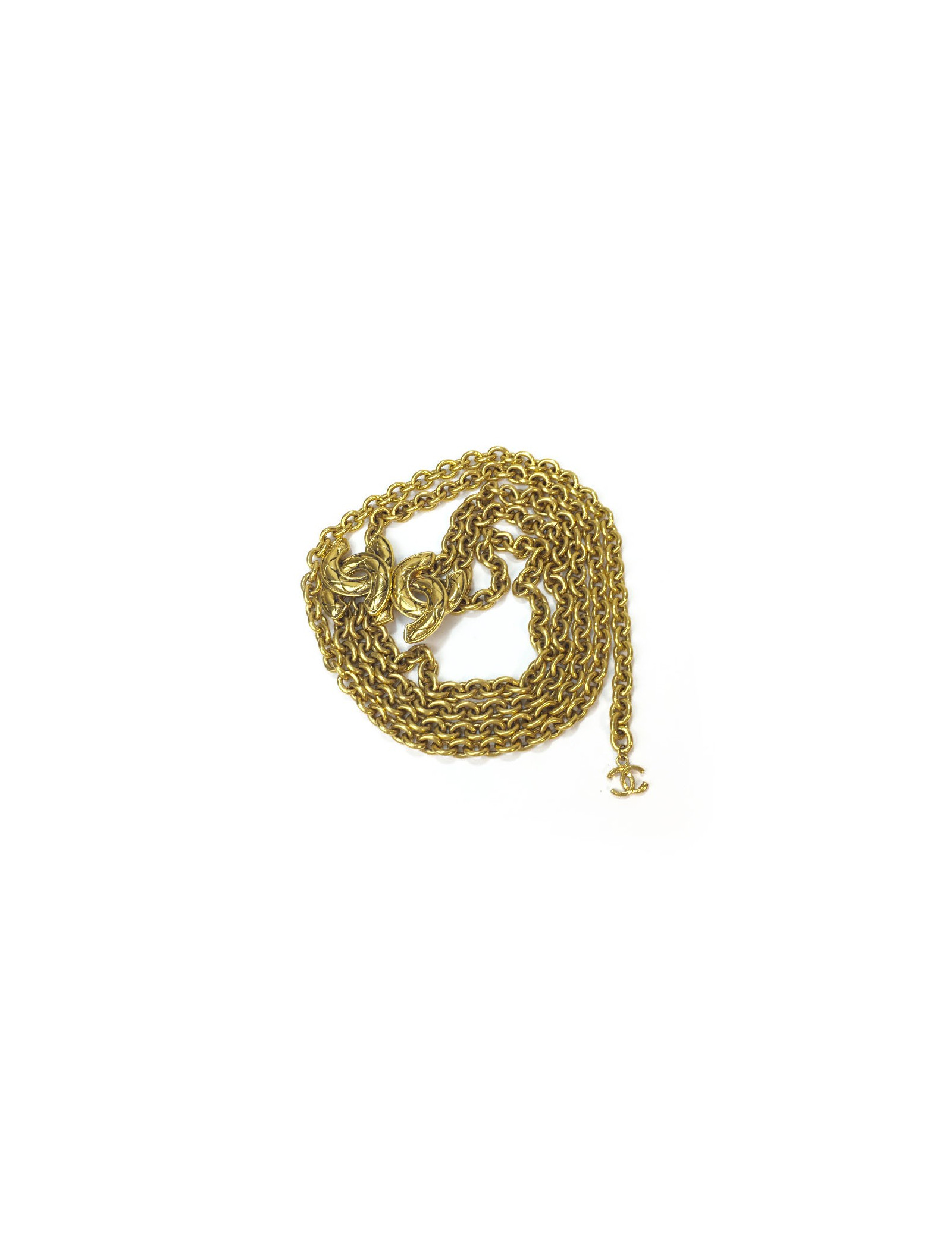 Belle ceinture Chanel vintage, triple chaine et CC en métal doré. Fermoir crochet.