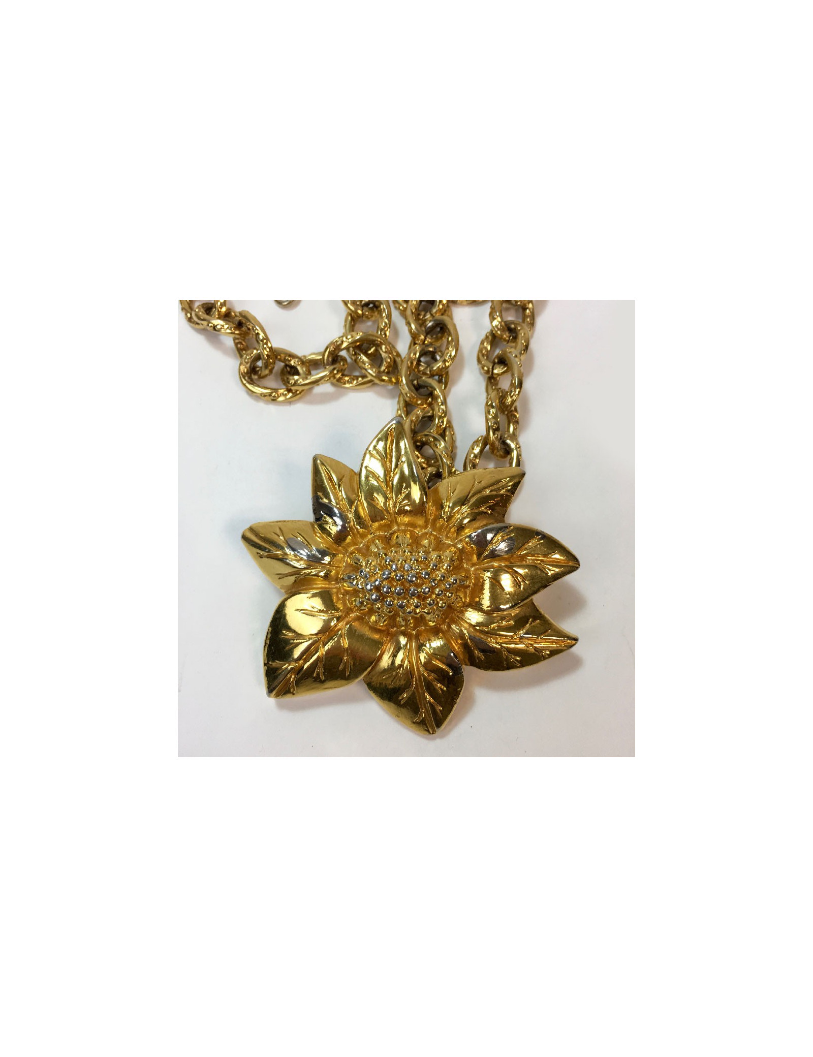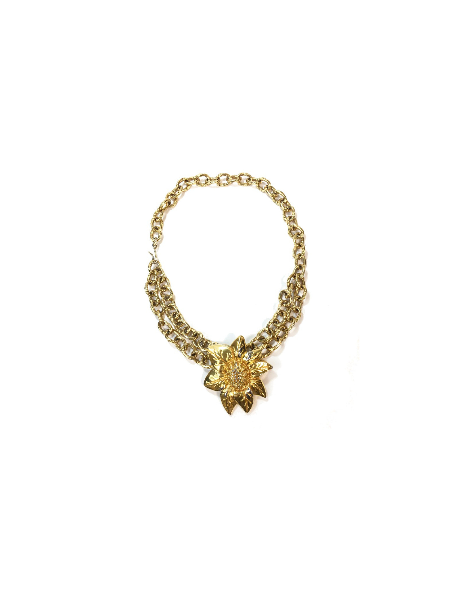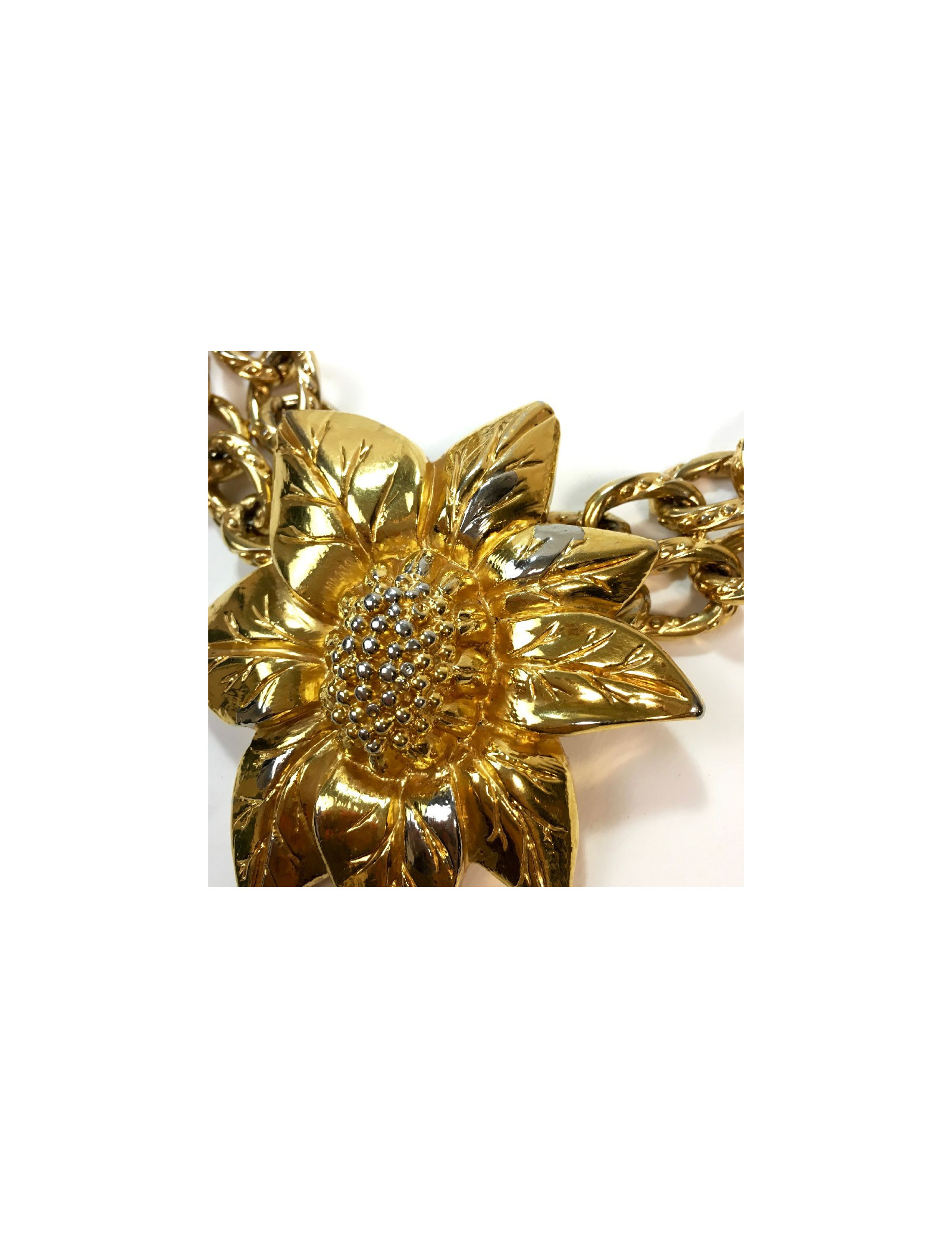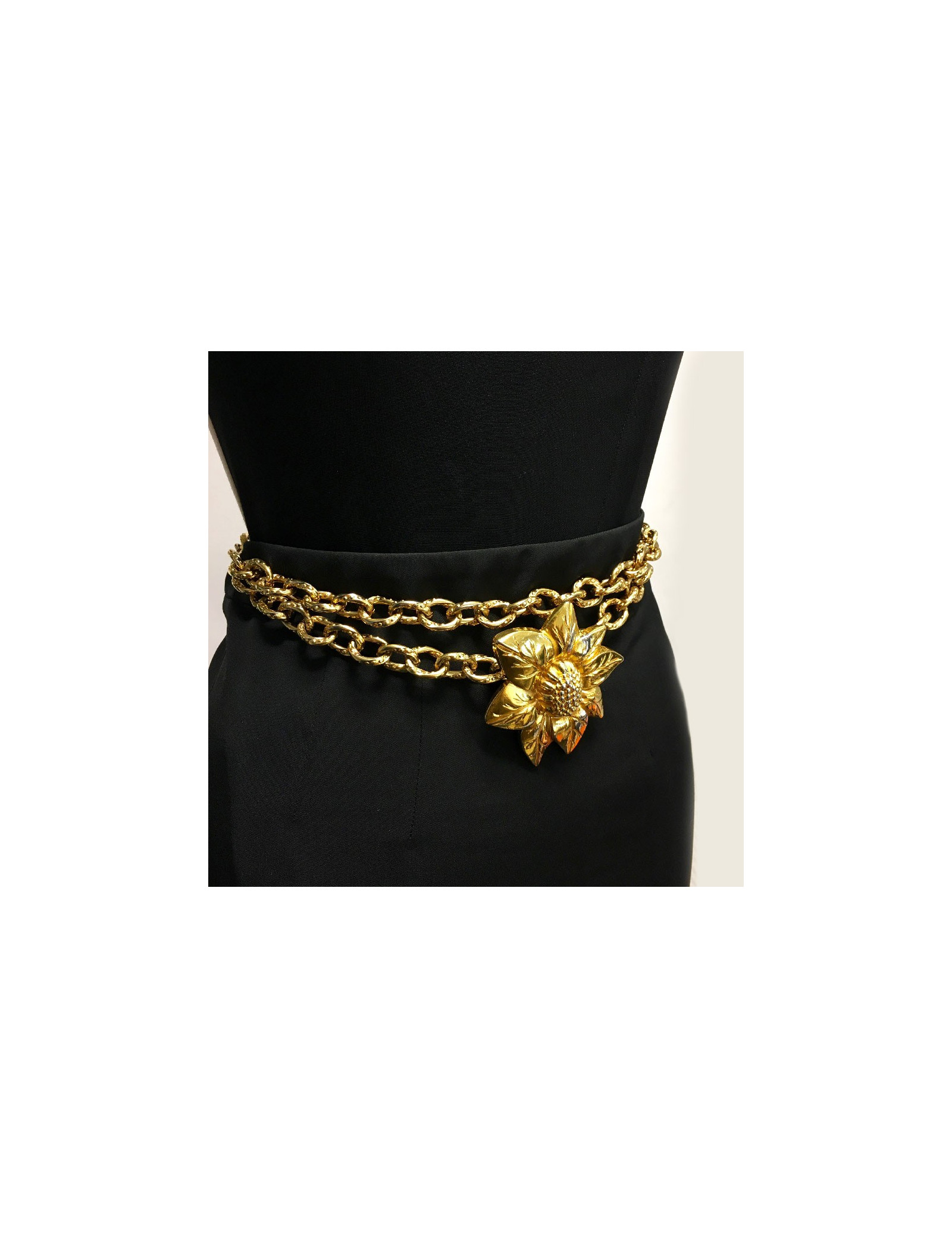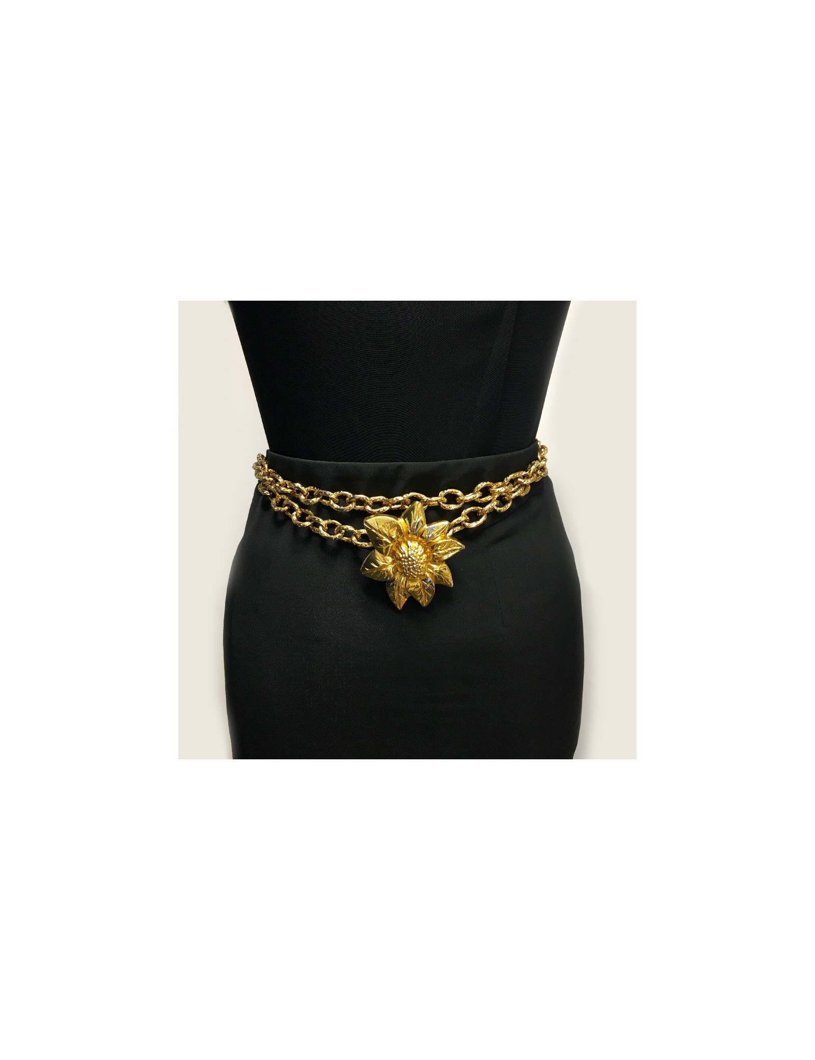 Ceinture vintage Lanvin fleur et chaîne en métal doré. Fermoir crochet.