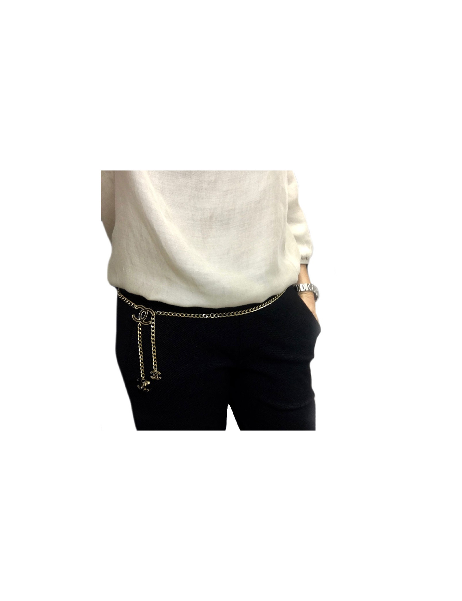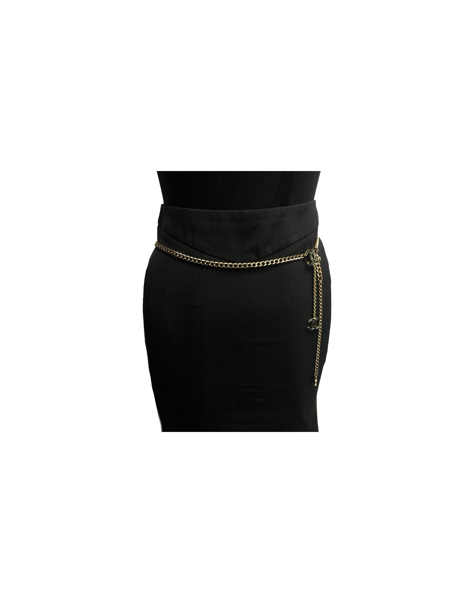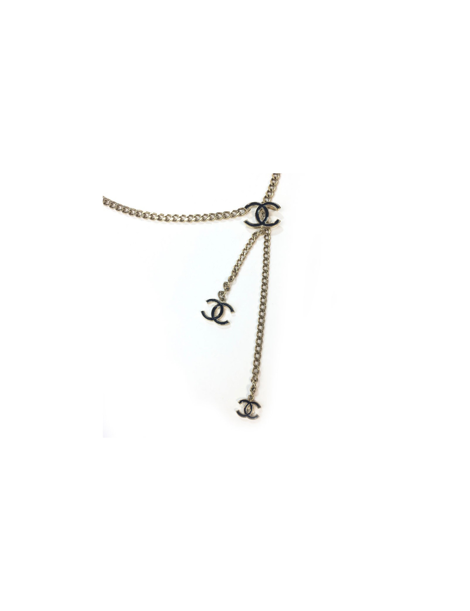 Ceinture Chanel chaine en métal doré, 3 CC en résine noire et métal doré.