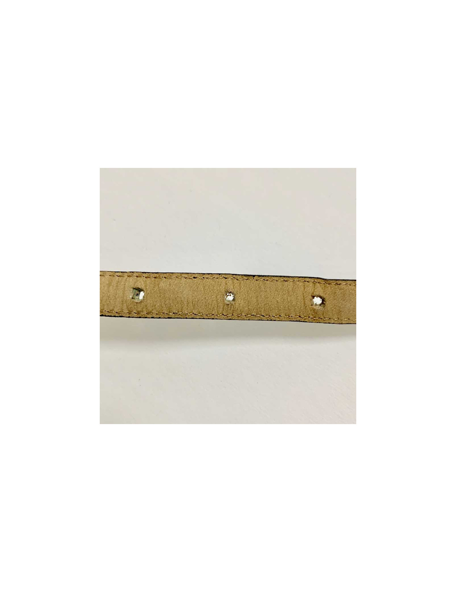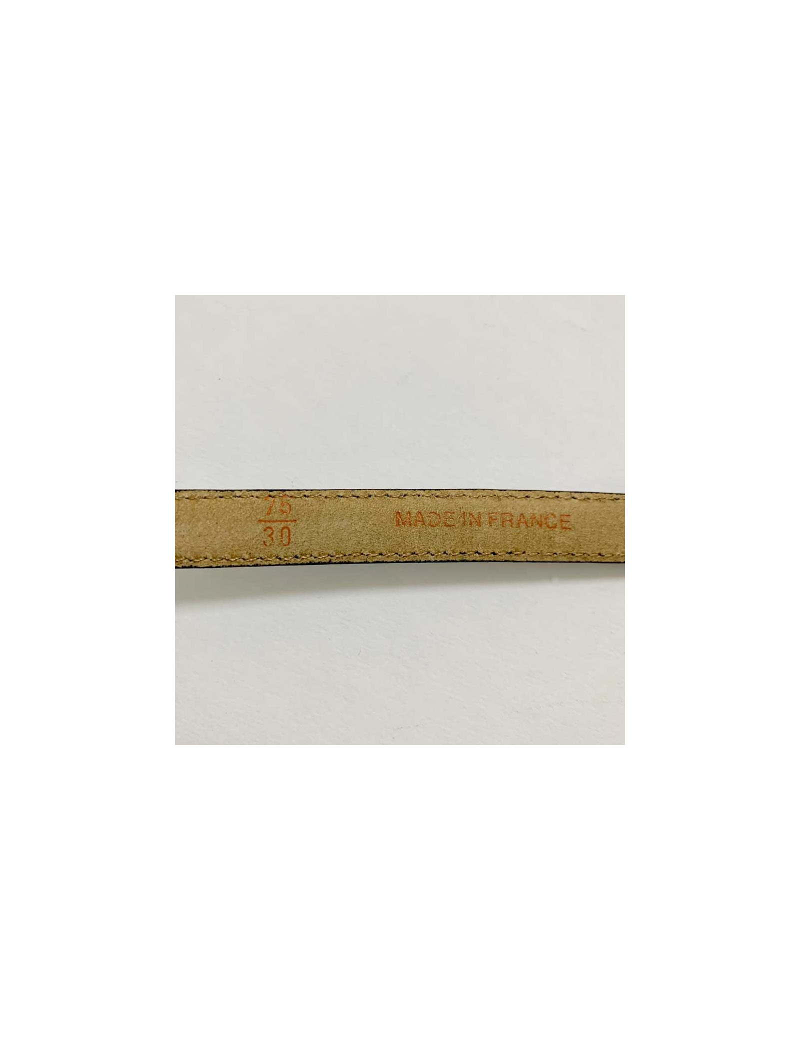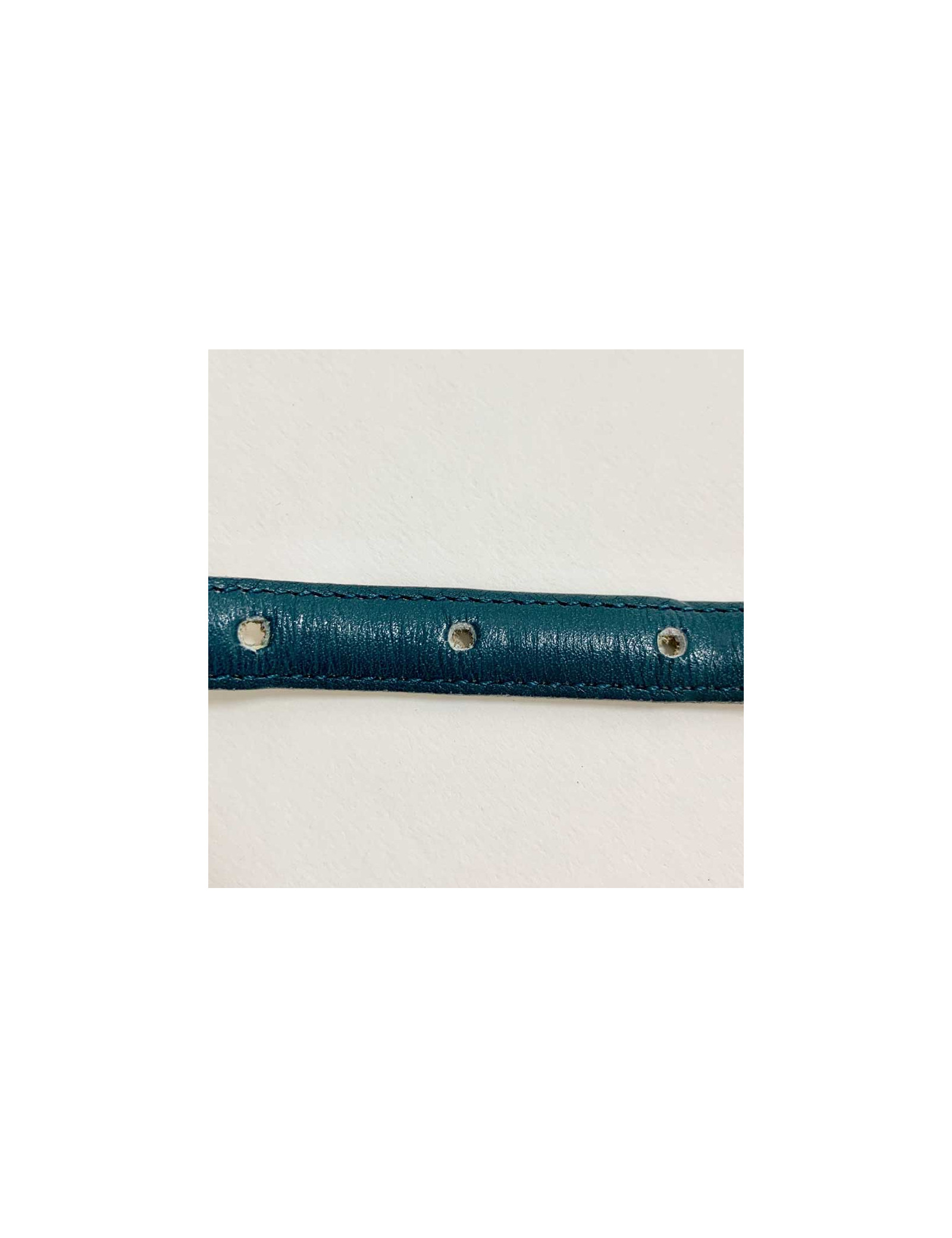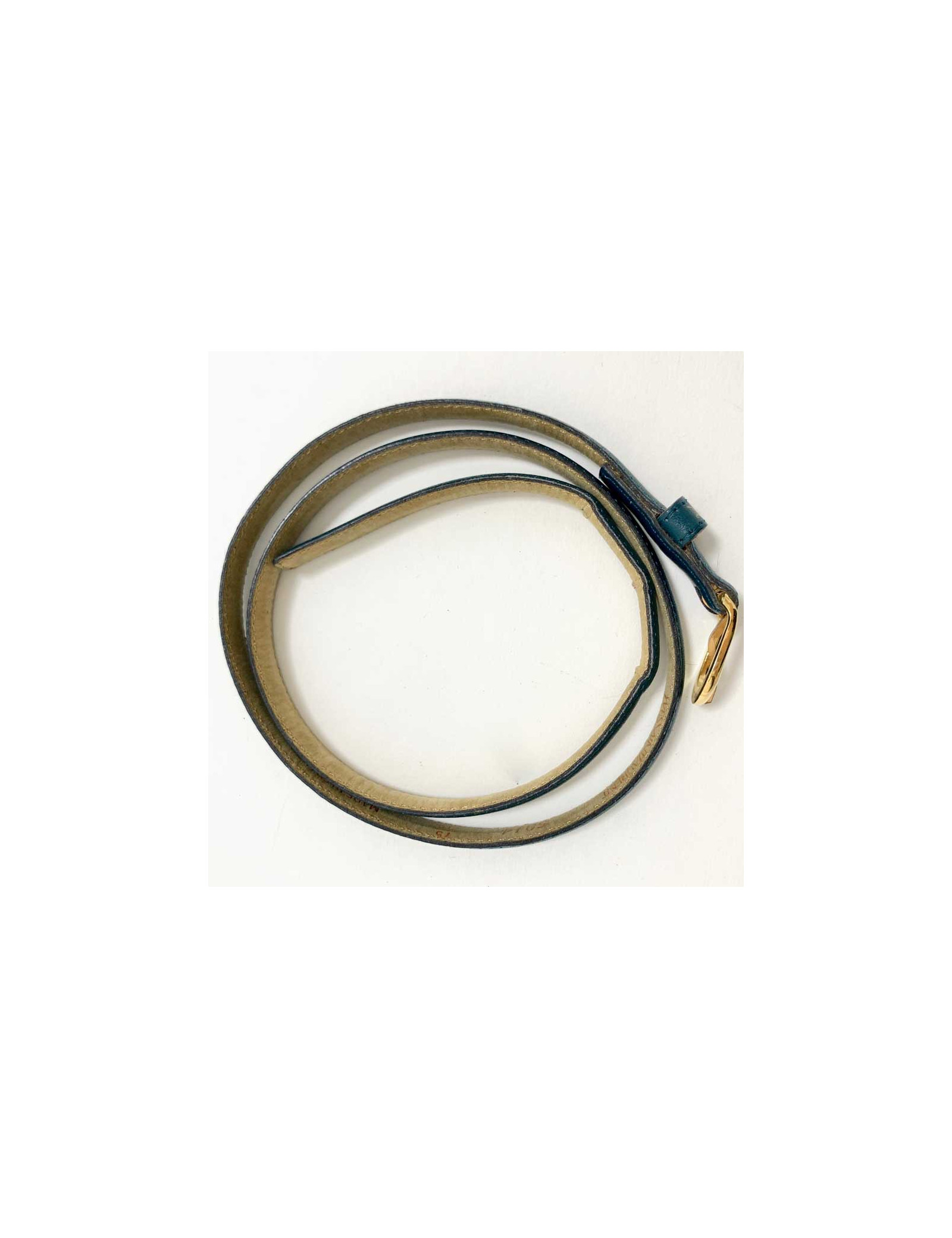 Superbe accessoire de la Maison Yves Saint Laurent. Ceinture fine en cuir bleu canard et cuir beige à l'intérieur. La bijouterie est en métal doré. Les initiales YSL sont en lettres dorées sur le passant.