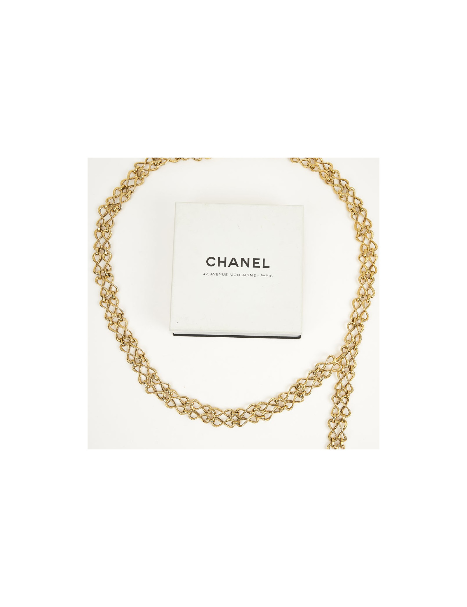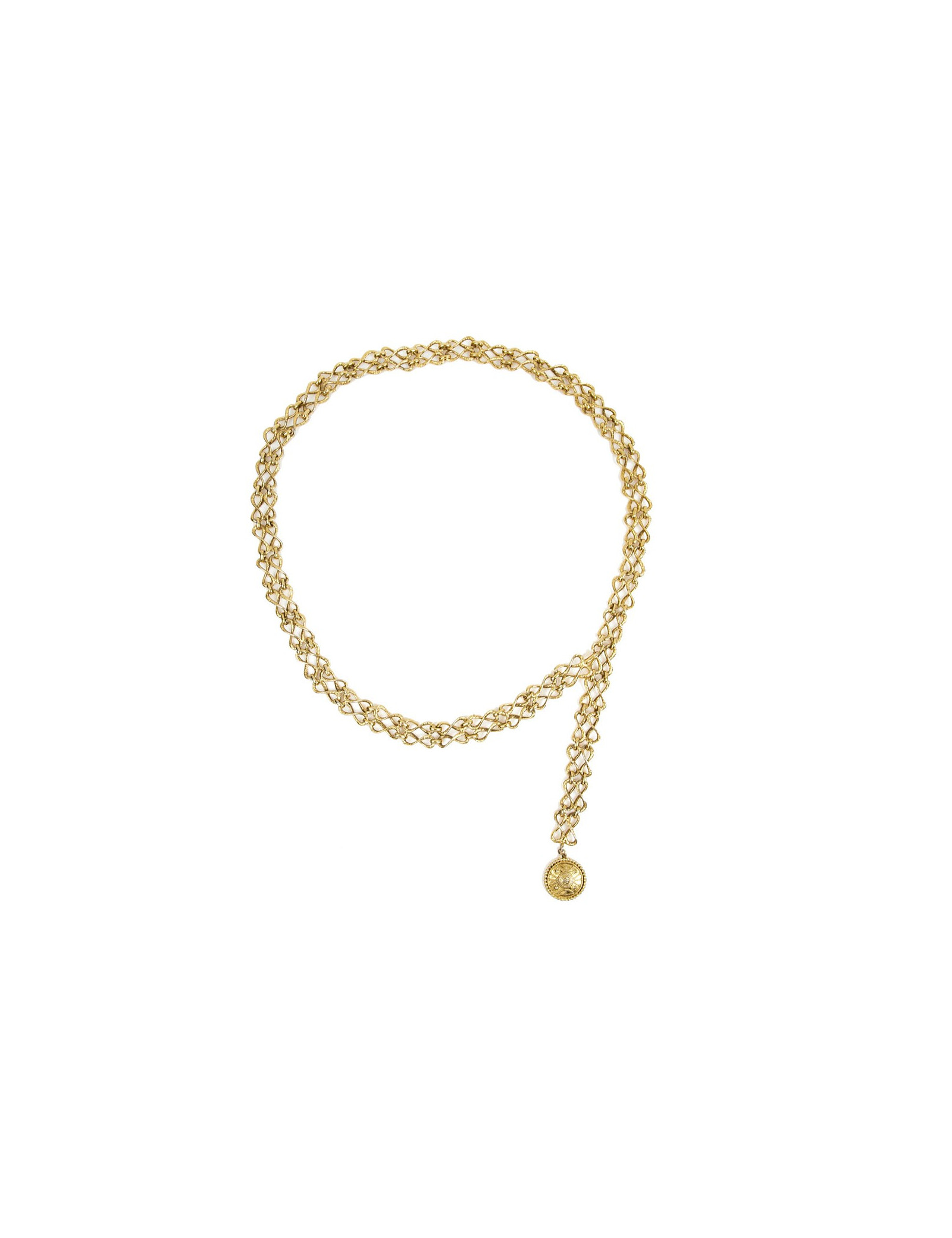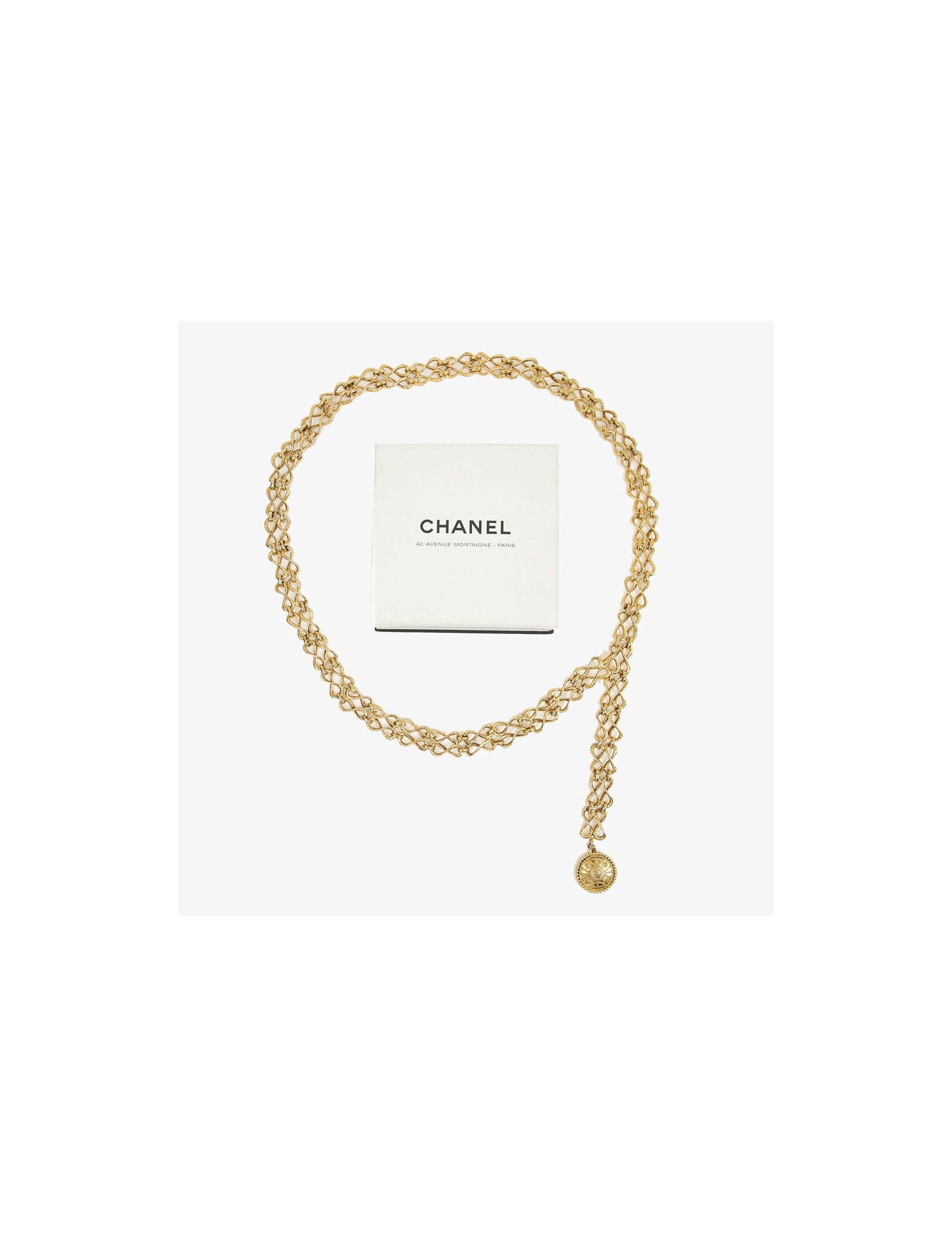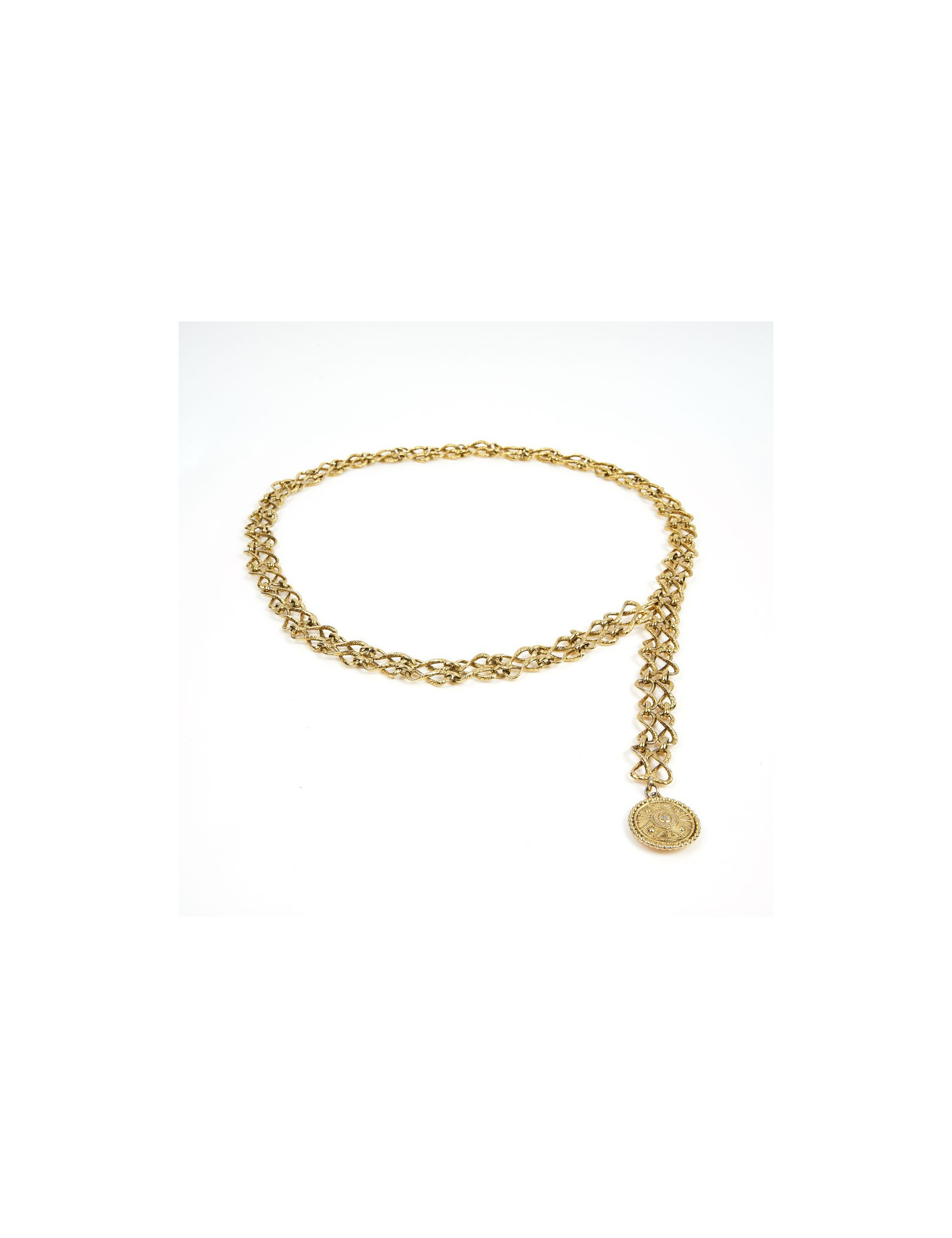 A porter sur un jean’s ou une robe l’effet sera immédiat : magique. La ceinture est guillochée en métal doré. Elle se termine par un médaillon bombé et au centre l’incontournable « cc’.