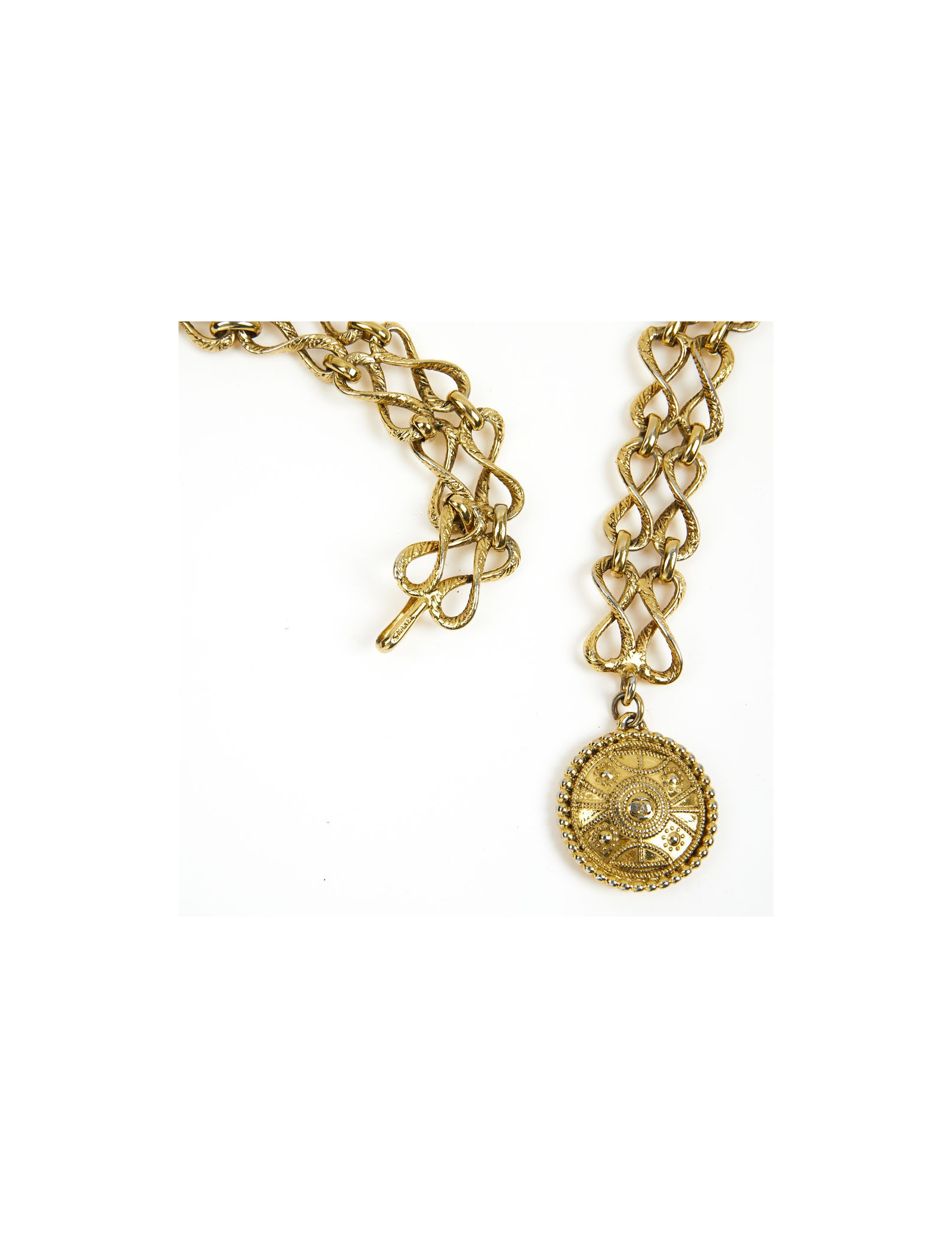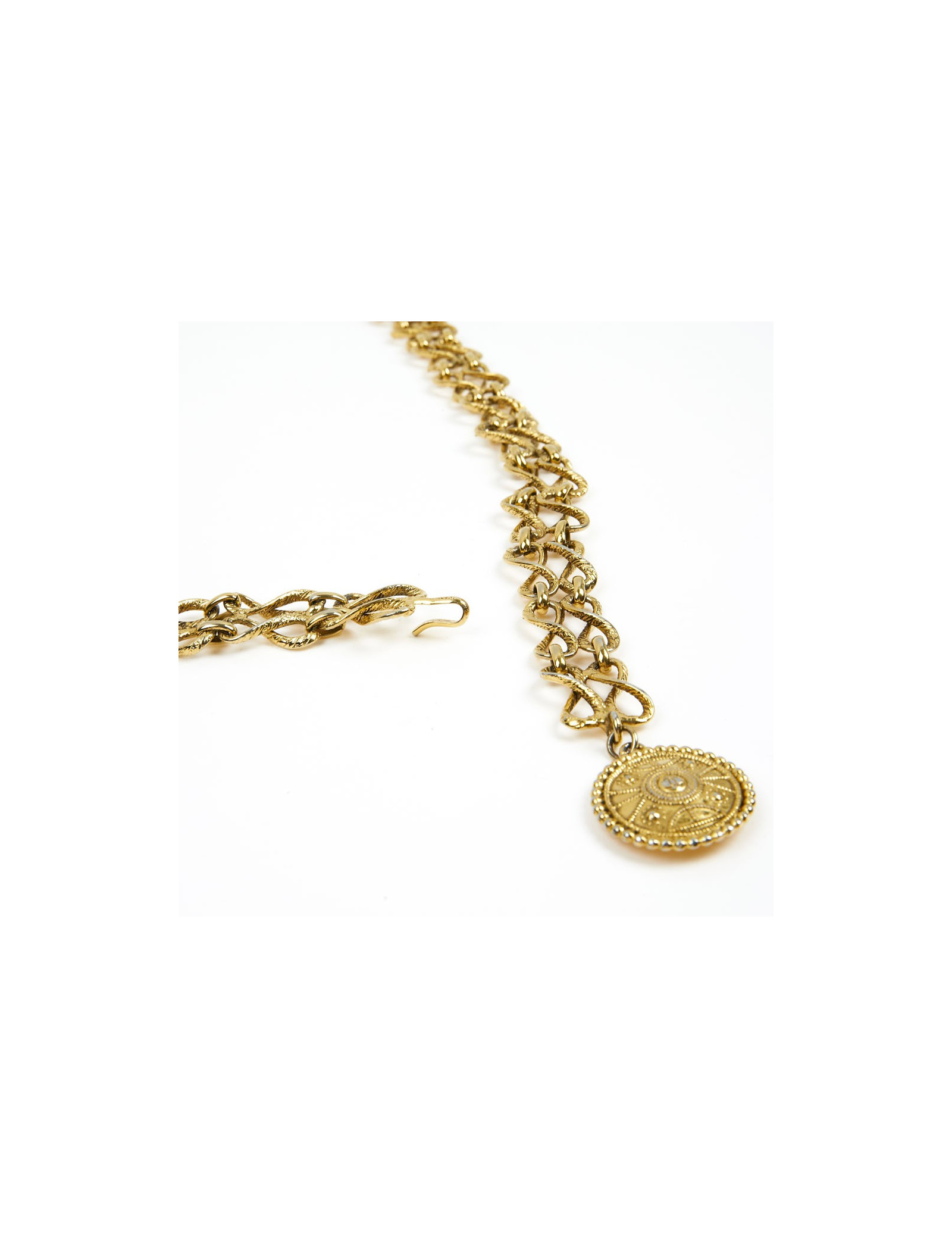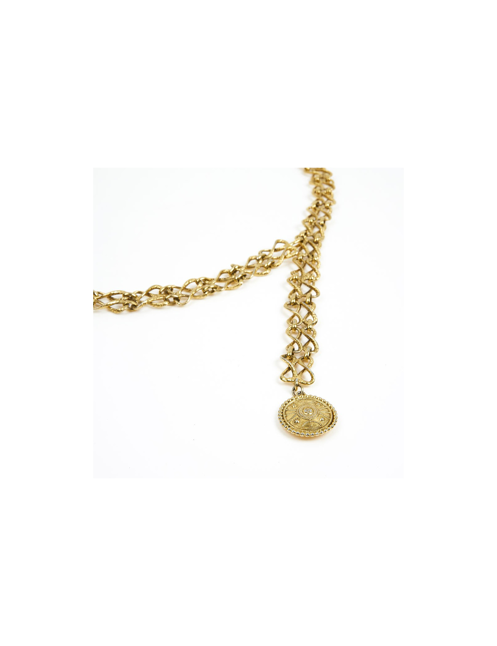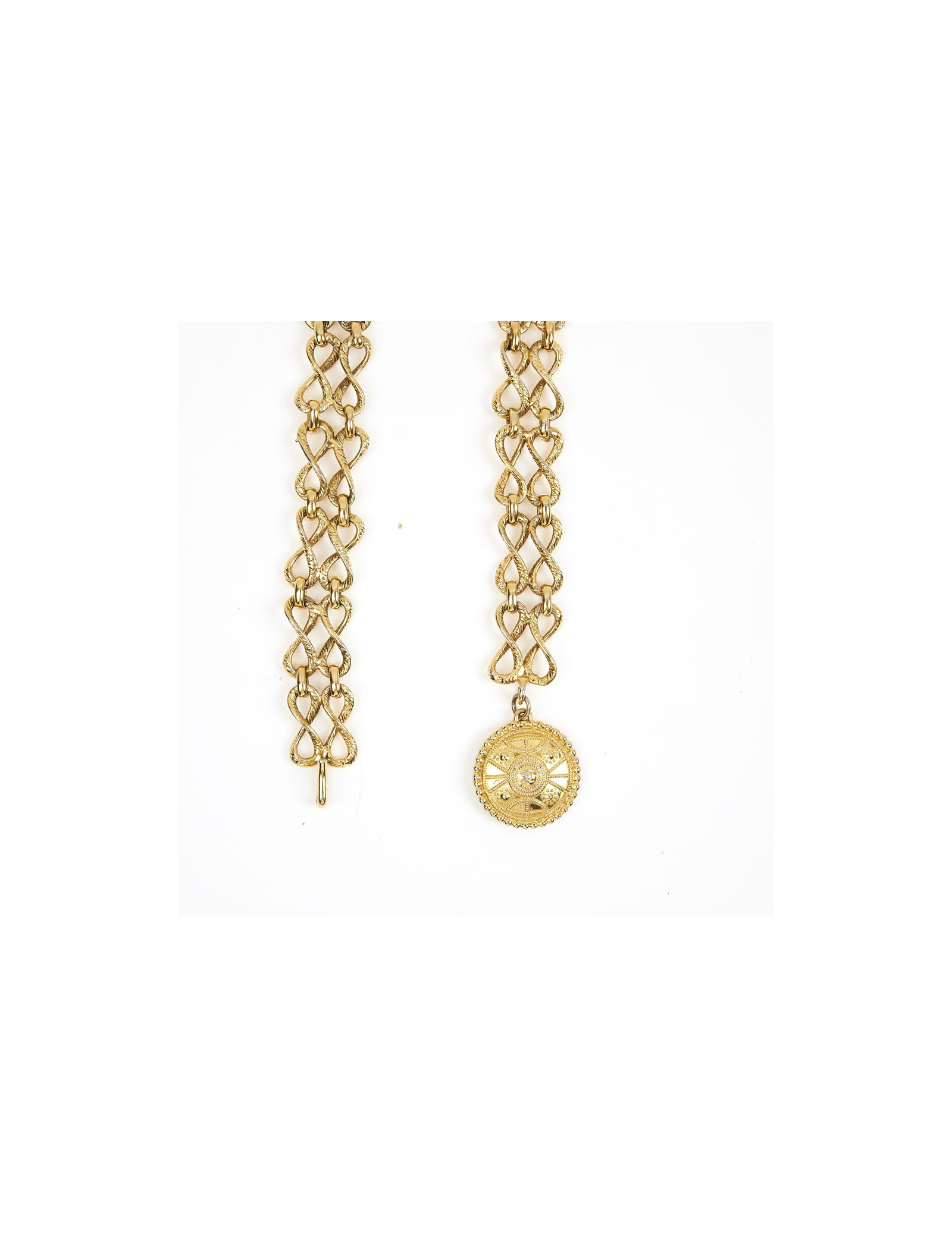 A porter sur un jean’s ou une robe l’effet sera immédiat : magique. La ceinture est guillochée en métal doré. Elle se termine par un médaillon bombé et au centre l’incontournable « cc’.
