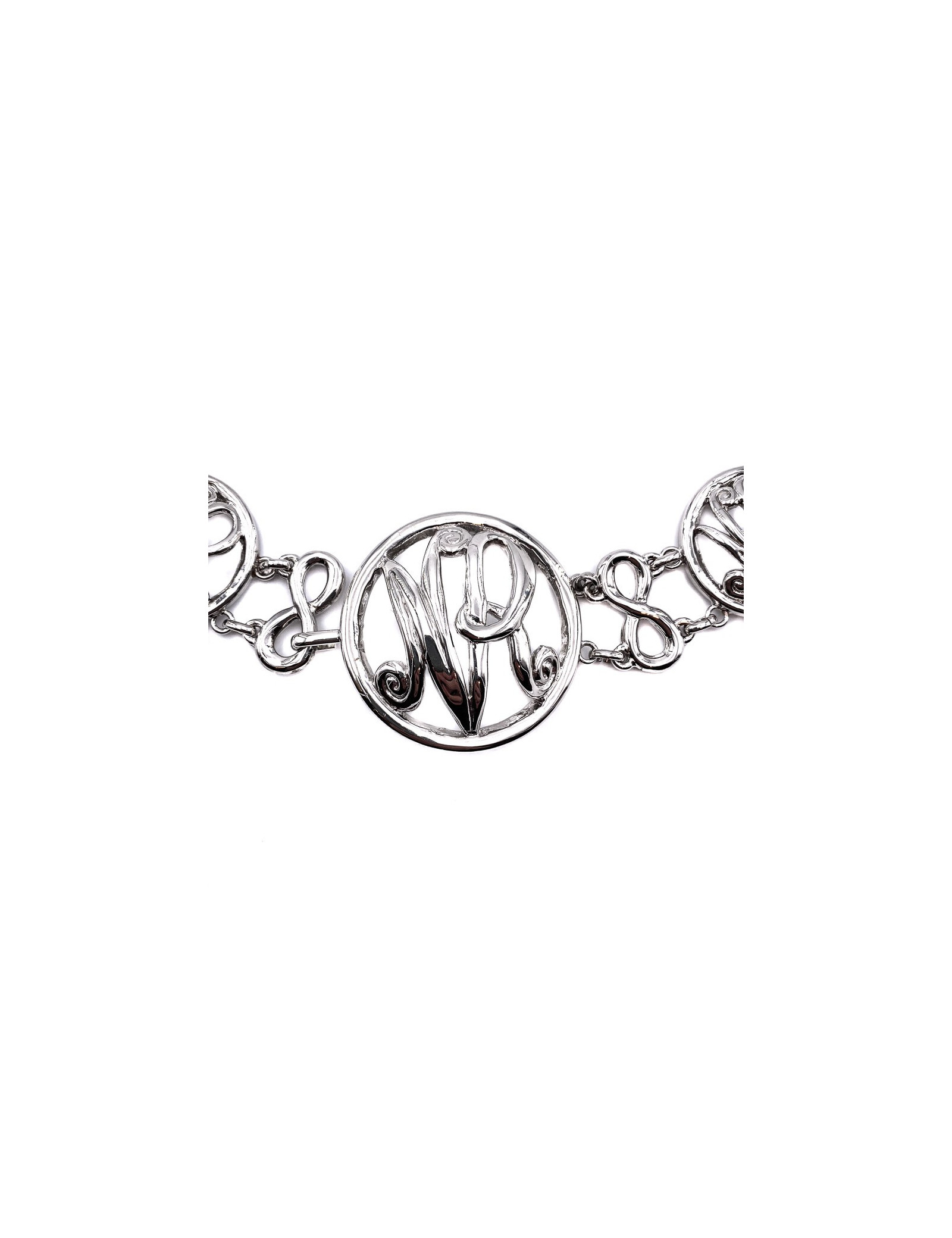 La ceinture est de la Maison NINA RICCI. Elle se compose d'une succession de cercles en métal argenté comportant les initiales de la marque NR. Elle se ferme par un crochet. Elle soulignera votre taille avec élégance.