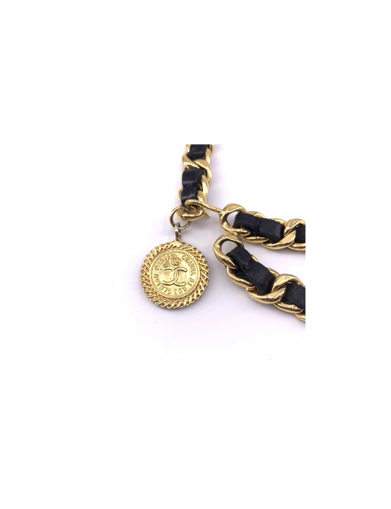 Ceinture CHANEL double rangs métal doré et cuir noir vintage