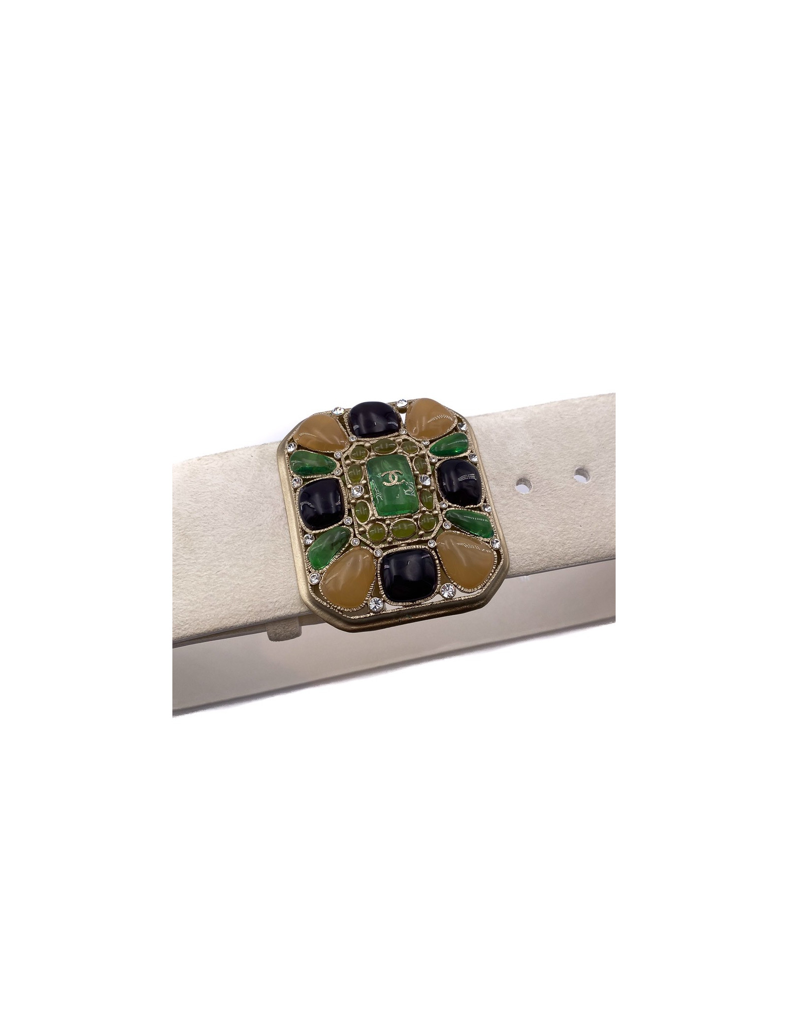 Caractéristiques de la ceinture beige CHANEL pâte de verre