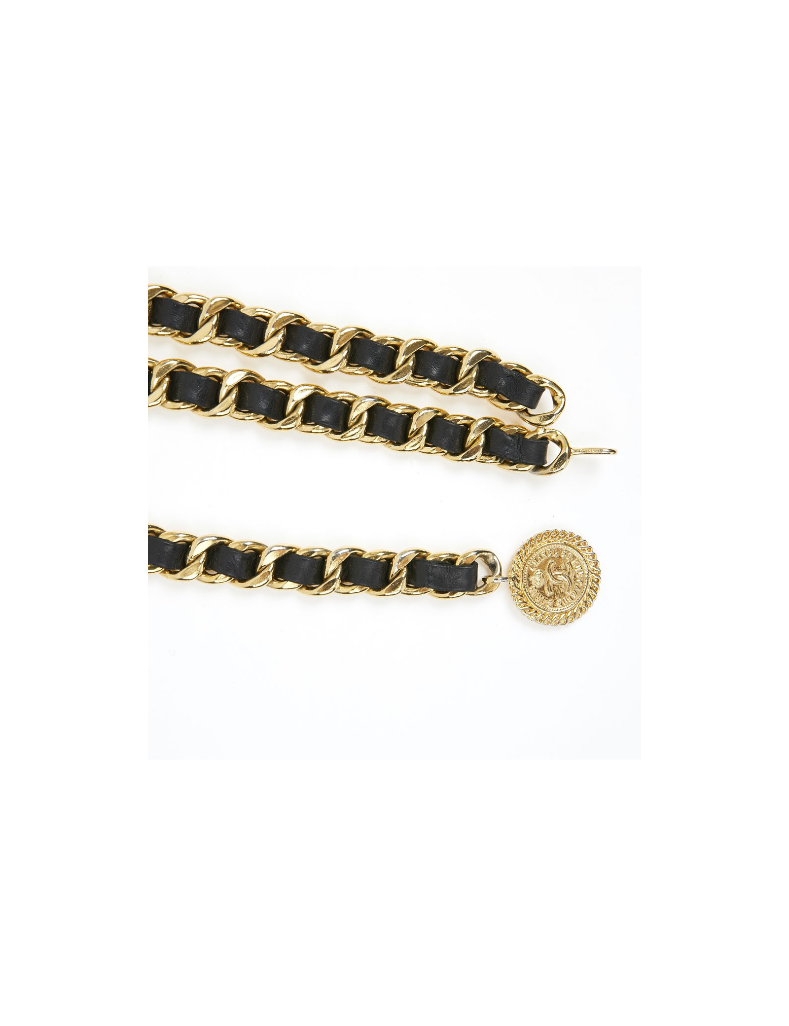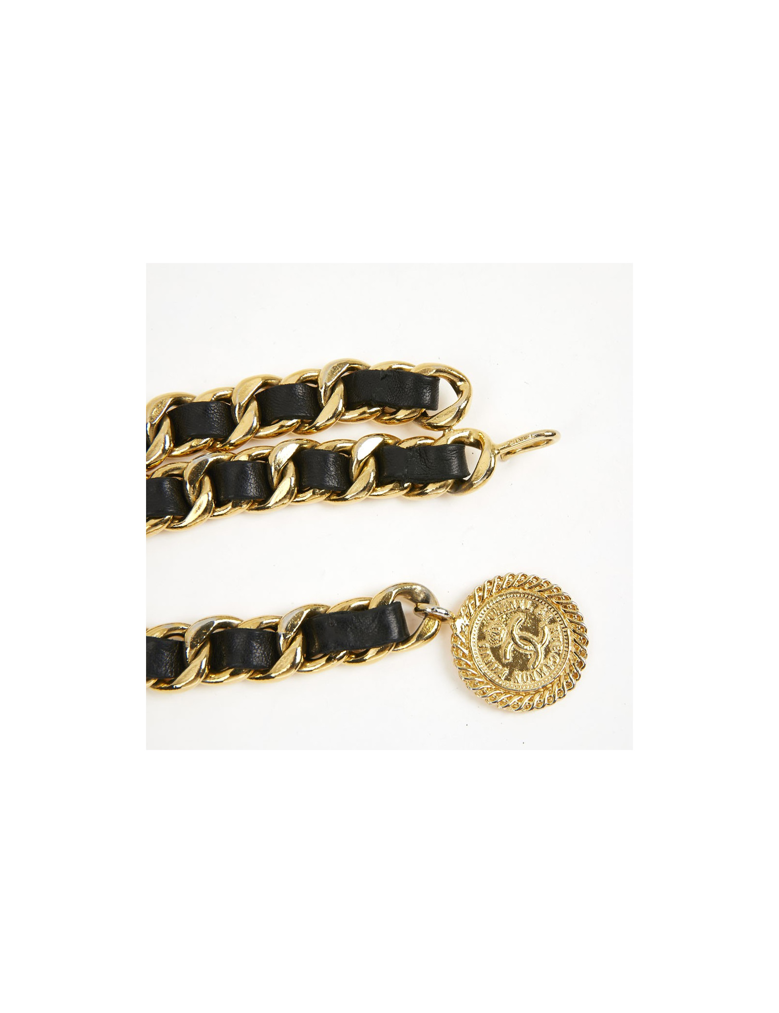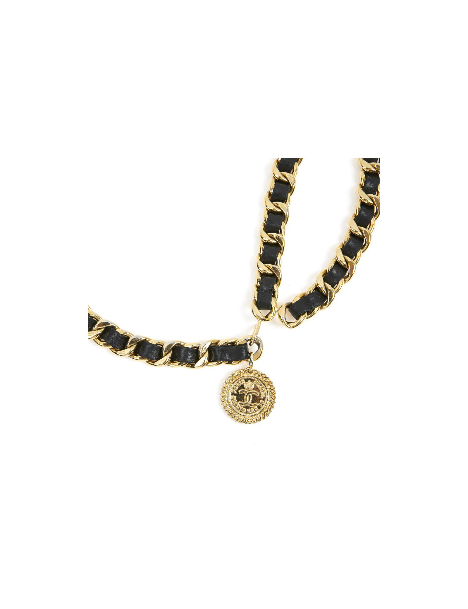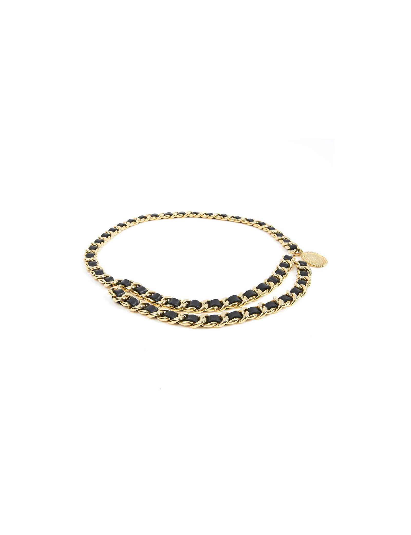 Ceinture CHANEL métal entrelacé de cuir noir