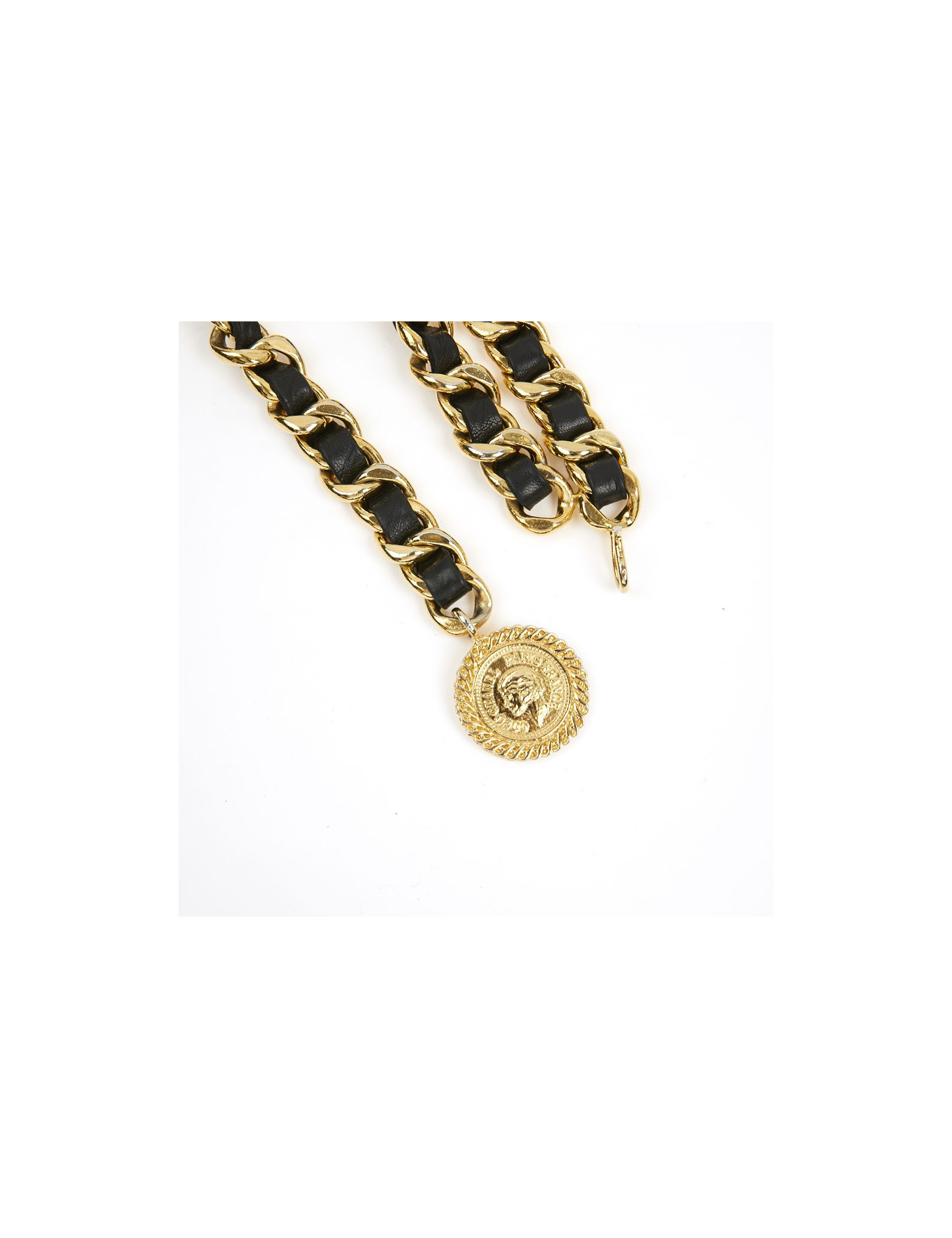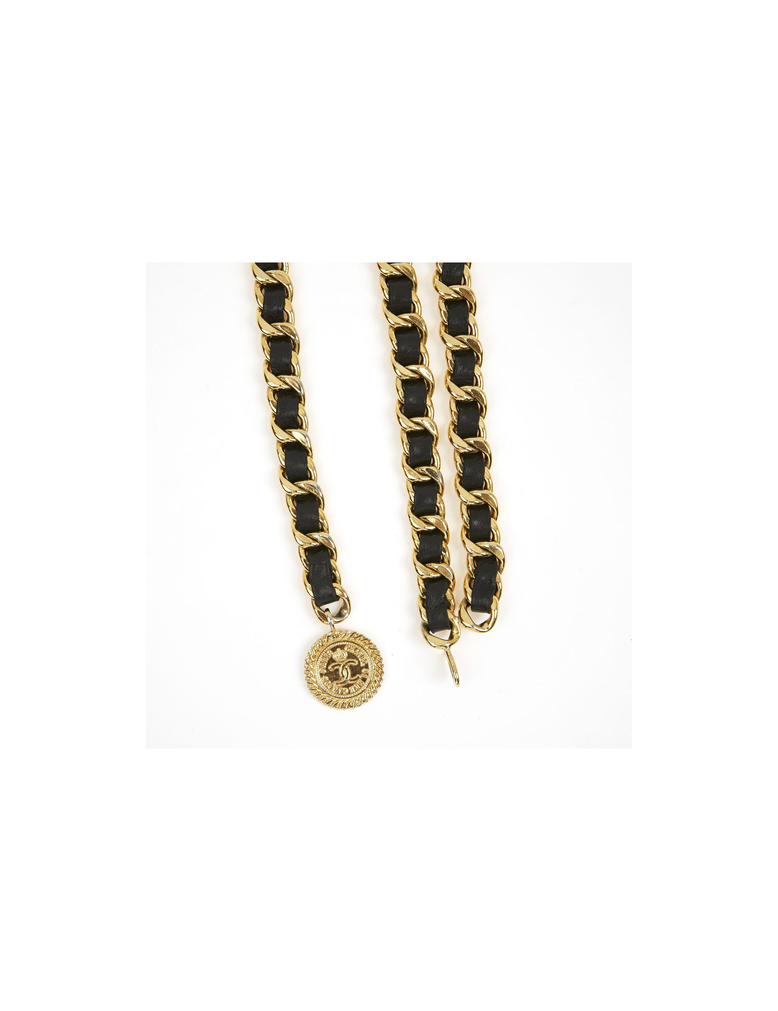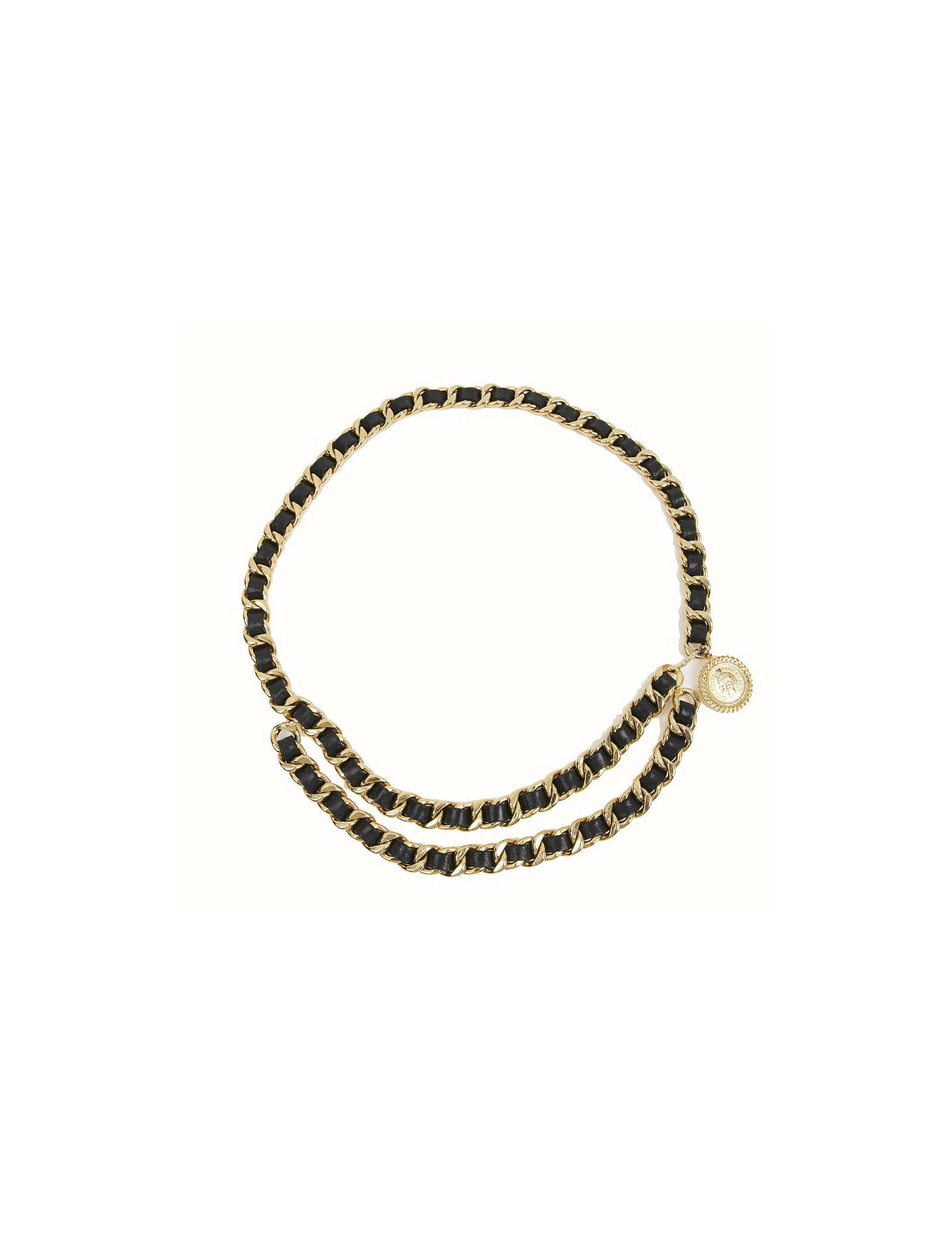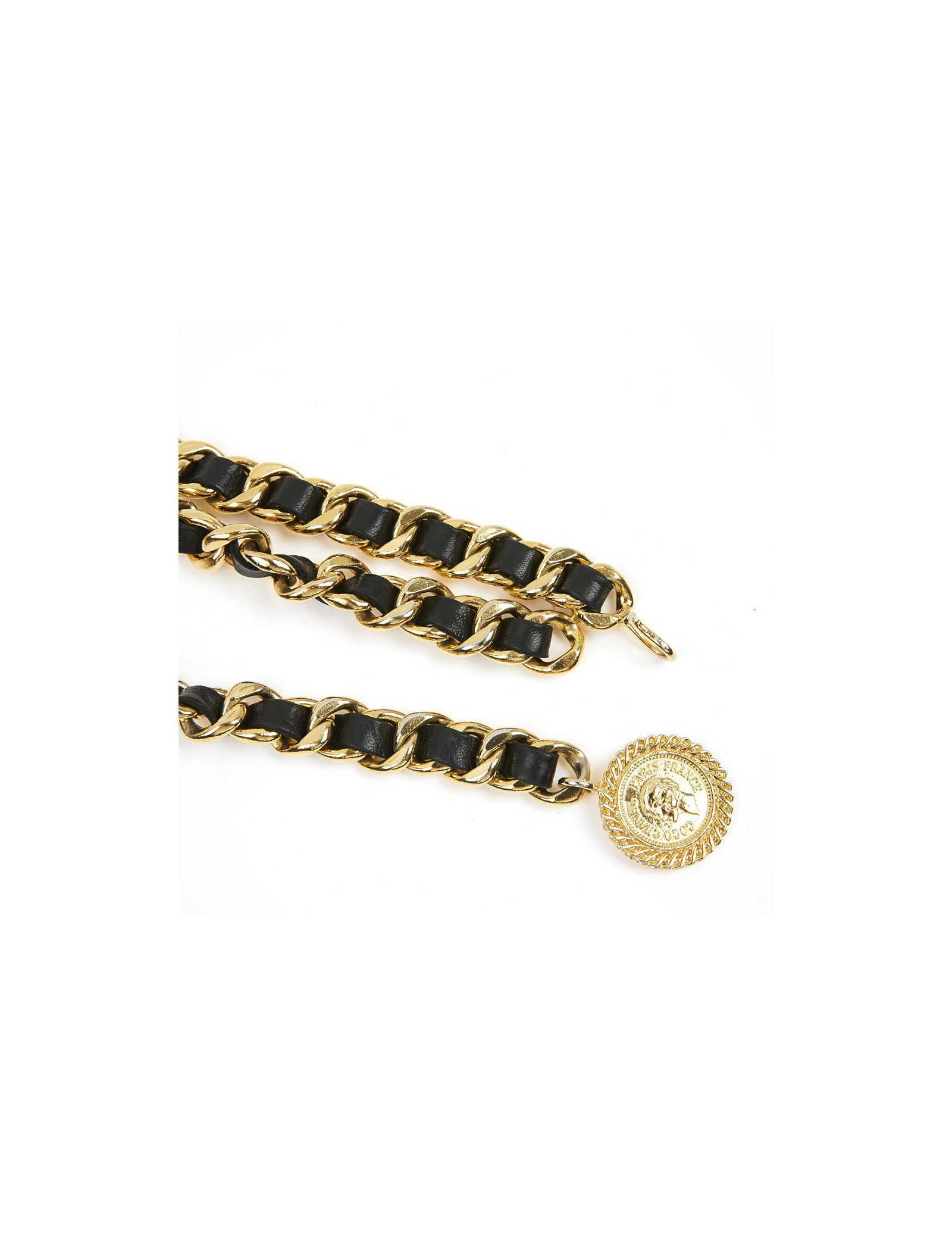 Ceinture CHANEL métal entrelacé de cuir noir