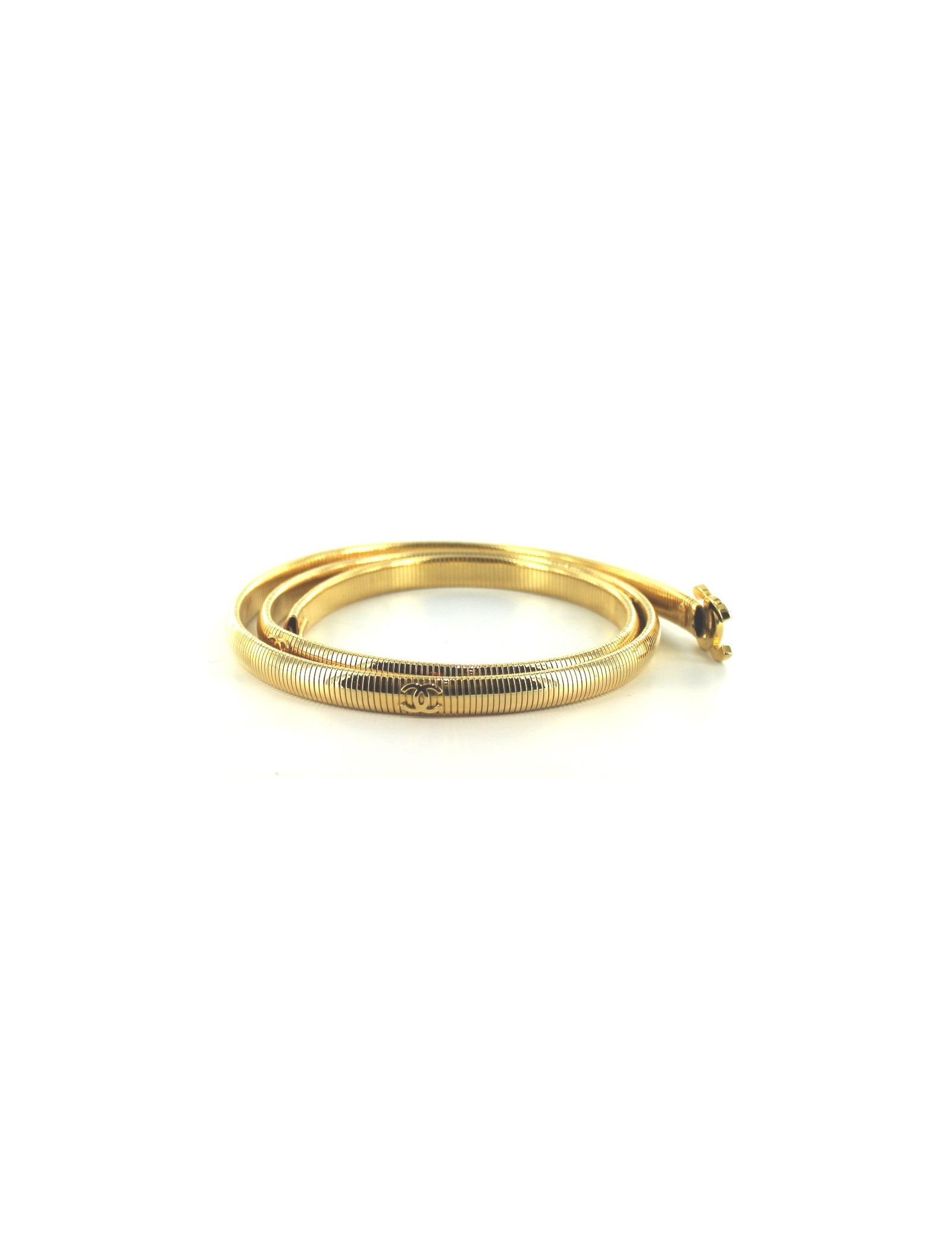 Jolie ceinture CHANEL en maille serpent en métal doré légèrement extensible