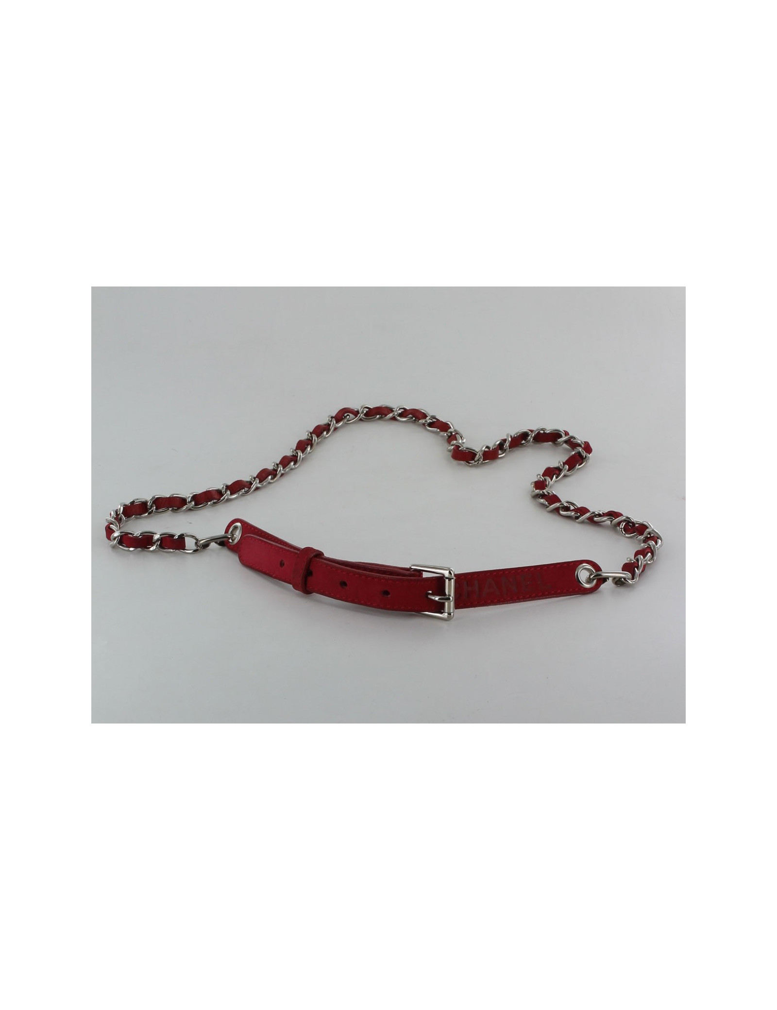Ceinture CHANEL chaîne et cuir rouge