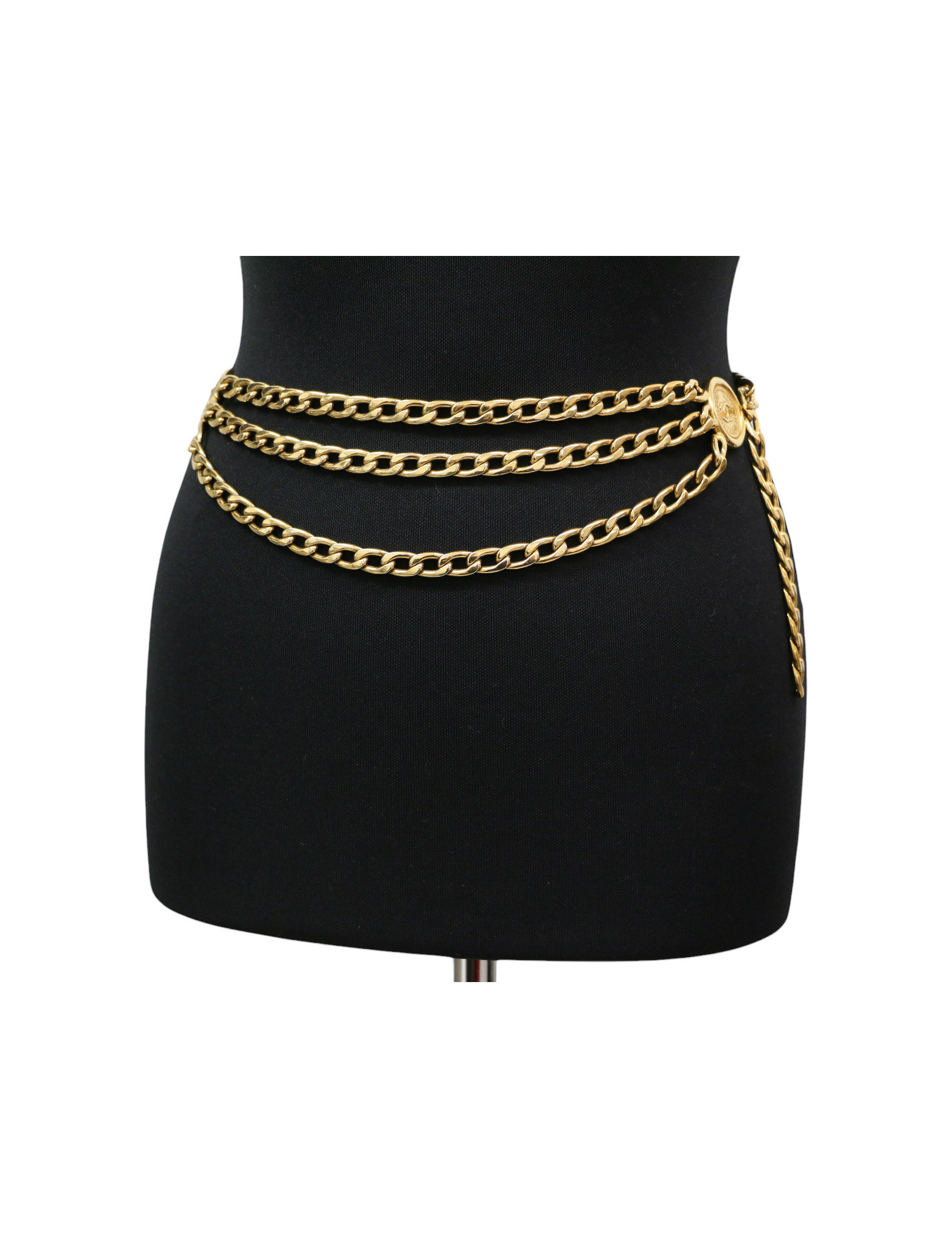 La ceinture est ajustable car le fermoir peut s'accrocher sur n'importe quel maillon de la chaîne.