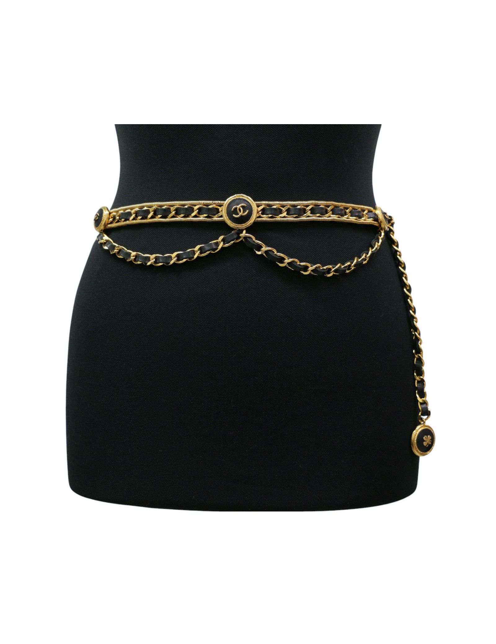 Détails : médaillons pendants avec trèfle, symbole de la Maison Chanel et CC dorés