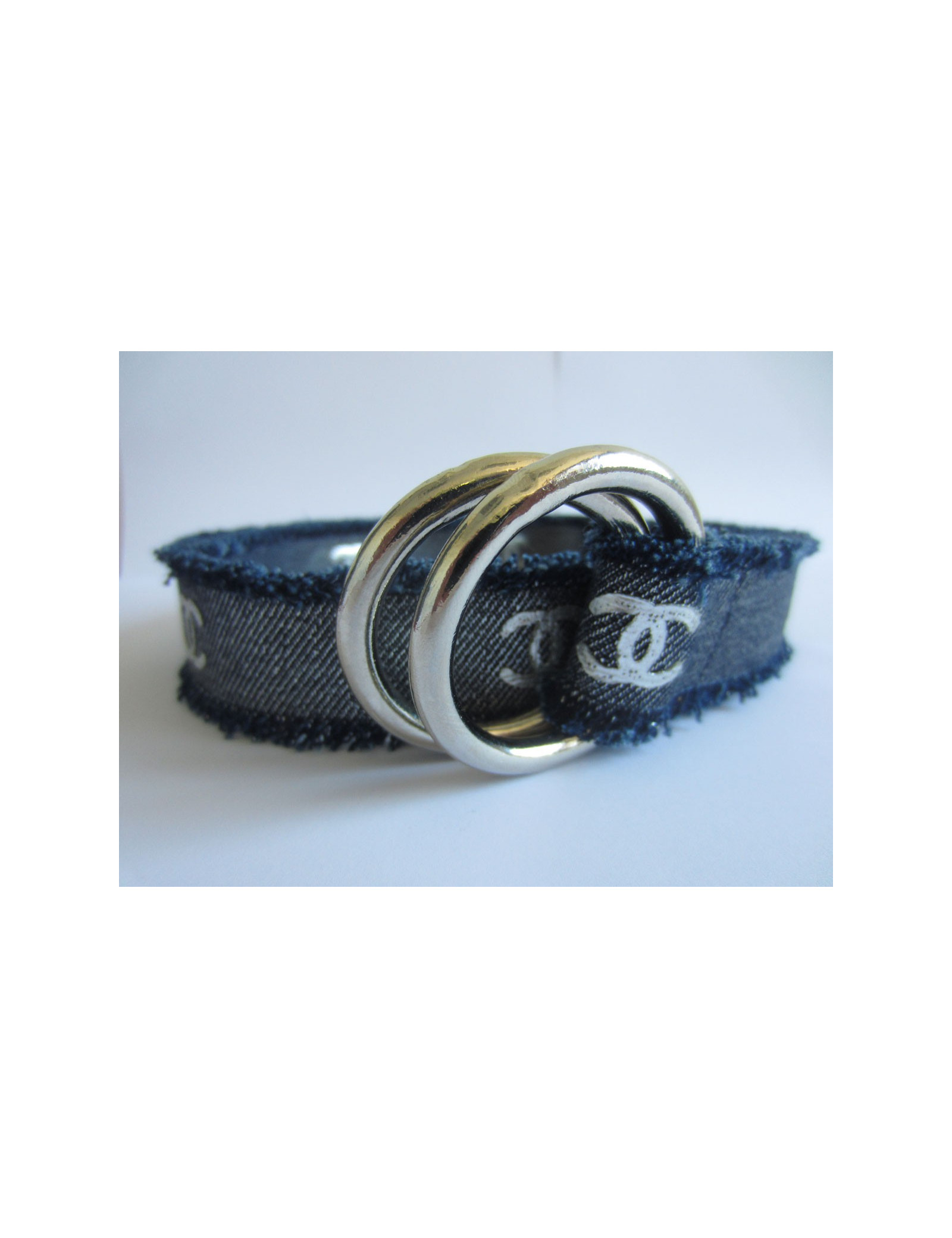 Ceinture CHANEL jeans et lamé argent