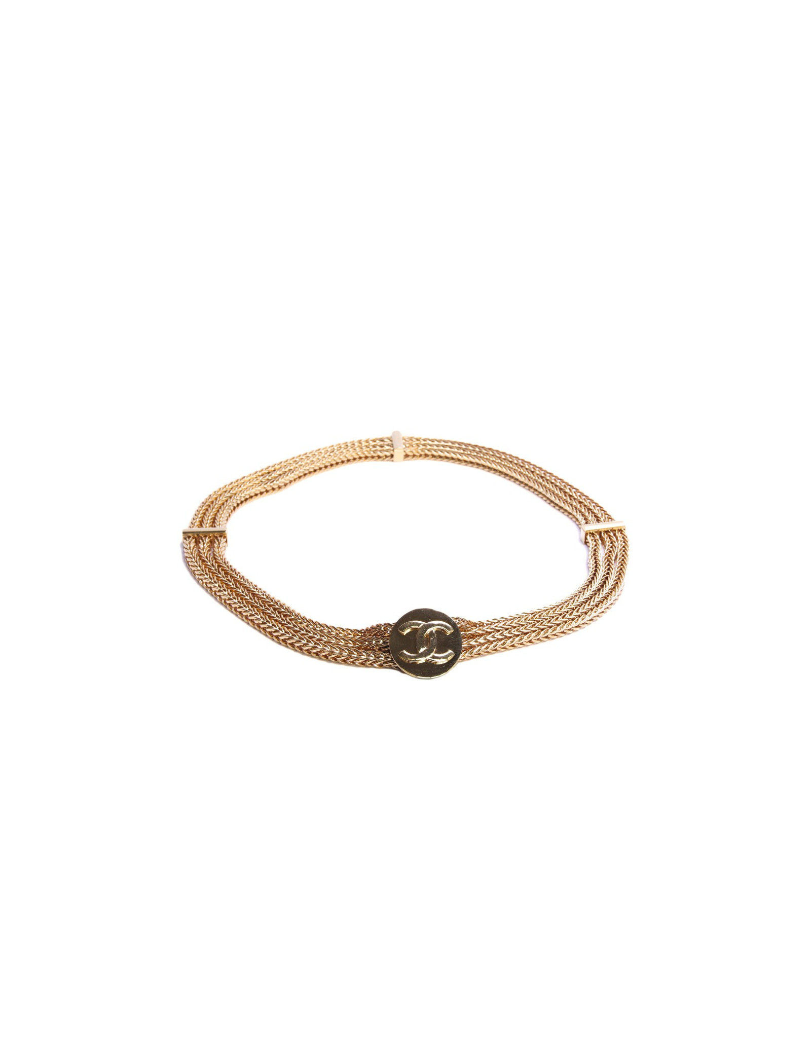 Derniers articles en stock CEINTURE Ceinture Chanel triple rangs Vintage CHANEL 33351 1 900,00 € Belle silhouette avec cette ceinture vintage Chanel à triple rang, un exemple parfait de l’élégance parisienne intemporelle. Conçue en métal doré brillant vintage, elle se compose de trois chaînes gourmette finement entrelacées, réunies par deux médaillons ornés du célèbre logo double C entrelacé.Polyvalente, elle peut se porter à la taille ou sur les... Ajouter au panier