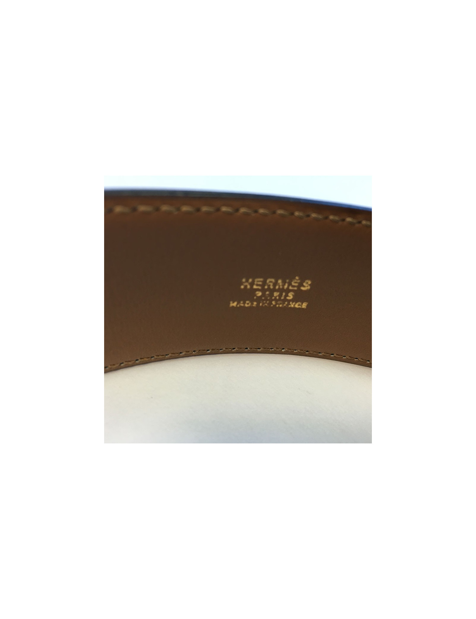 Nouveau Derniers articles en stock CEINTURES Ceinture H Hermès réversible bicolore HERMES 40009 490,00 € Ceinture Hermès réversible à boucle H, datant de 2011, au style intemporel et élégant. Confectionnée en cuir Epsom blanc et Cuir Swift bleu, elle offre deux looks différents : un côté blanc pour une allure classique et lumineuse, et un côté bleu Izmir pour apporter une touche plus moderne et colorée. La célèbre boucle "H" dorée signe immédiatement la... Ajouter au panier