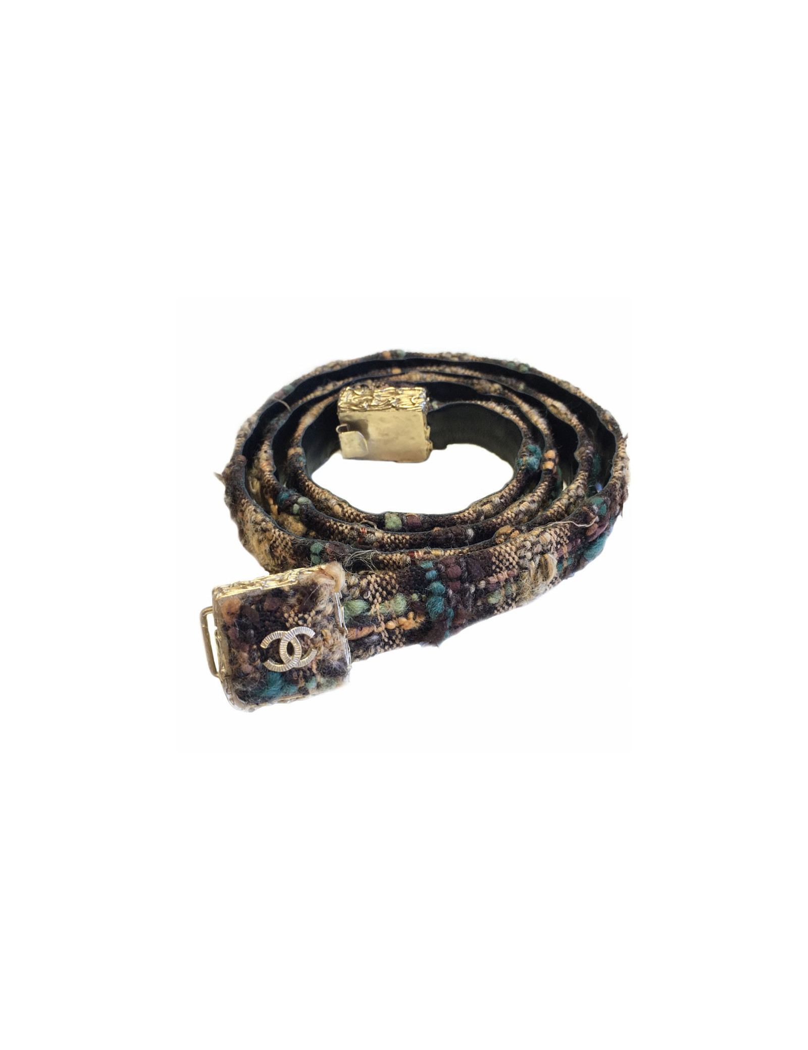 Ceinture "Paris-Edimbourg" CHANEL en tissu écossais marron