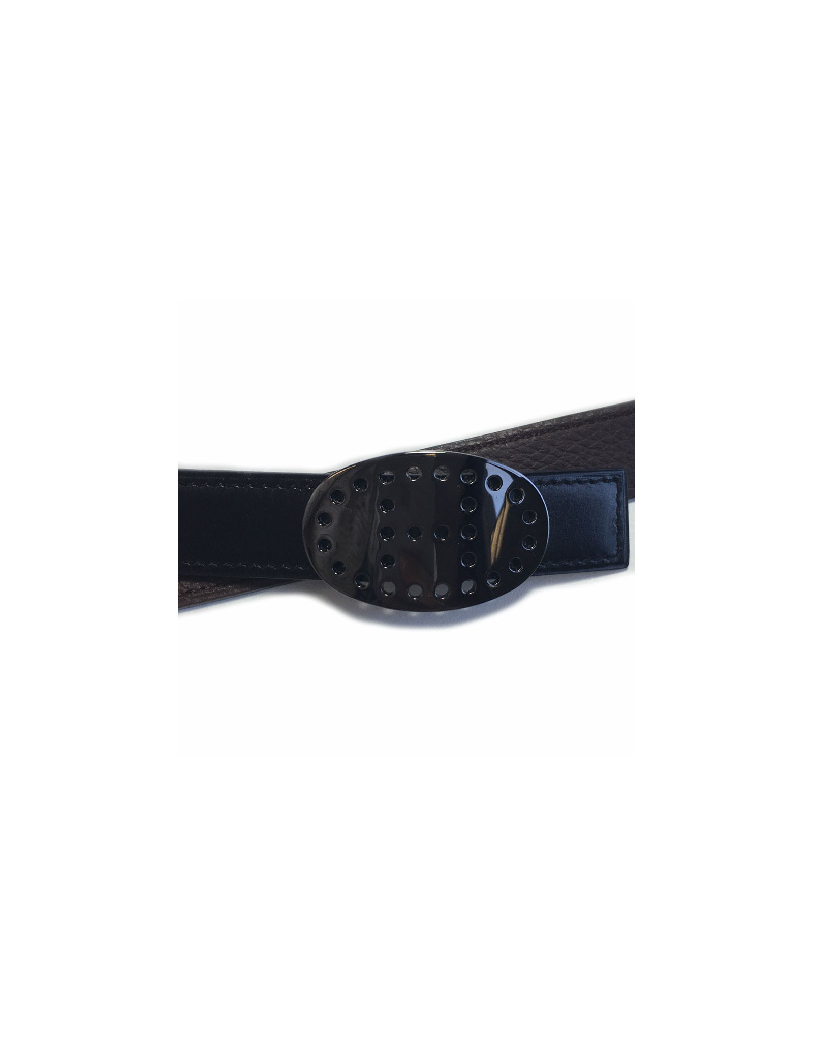Ceinture HERMES réversible en cuir box noir et cuir veau grainé marron