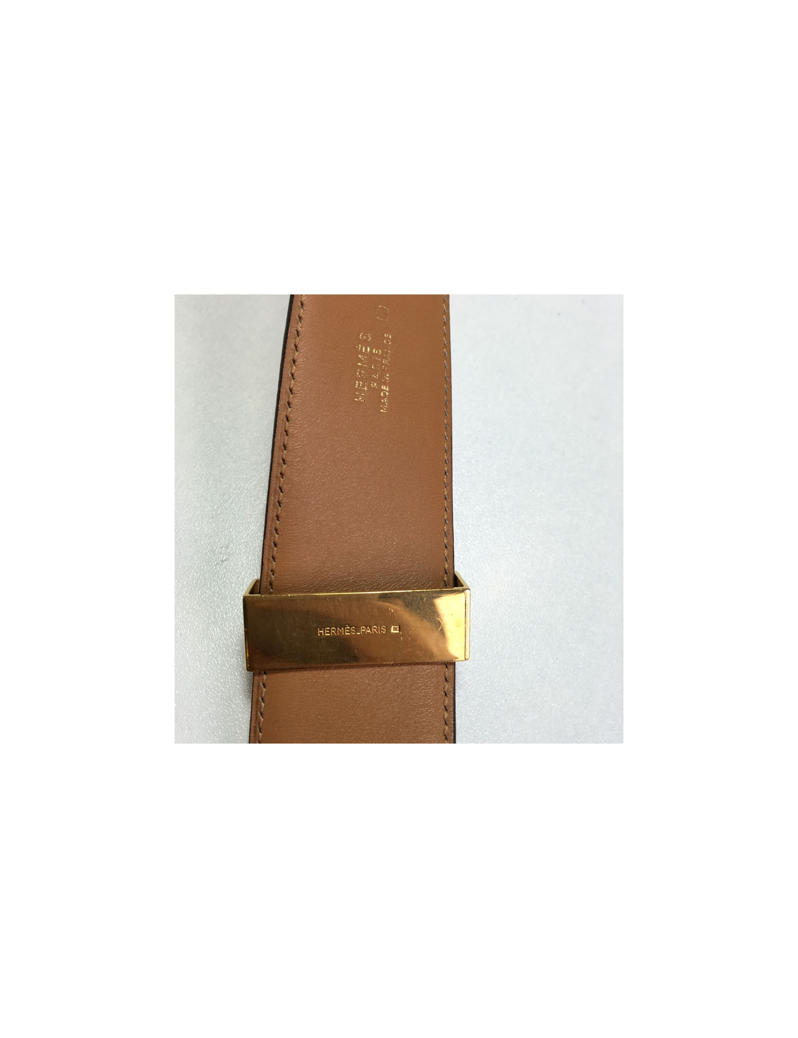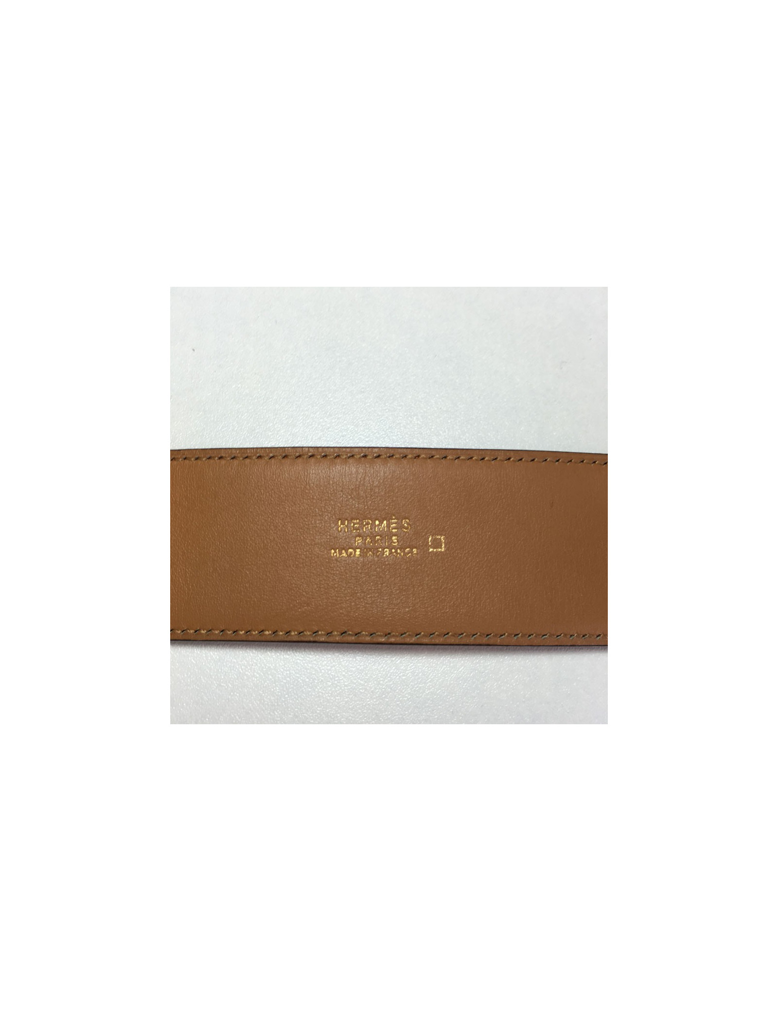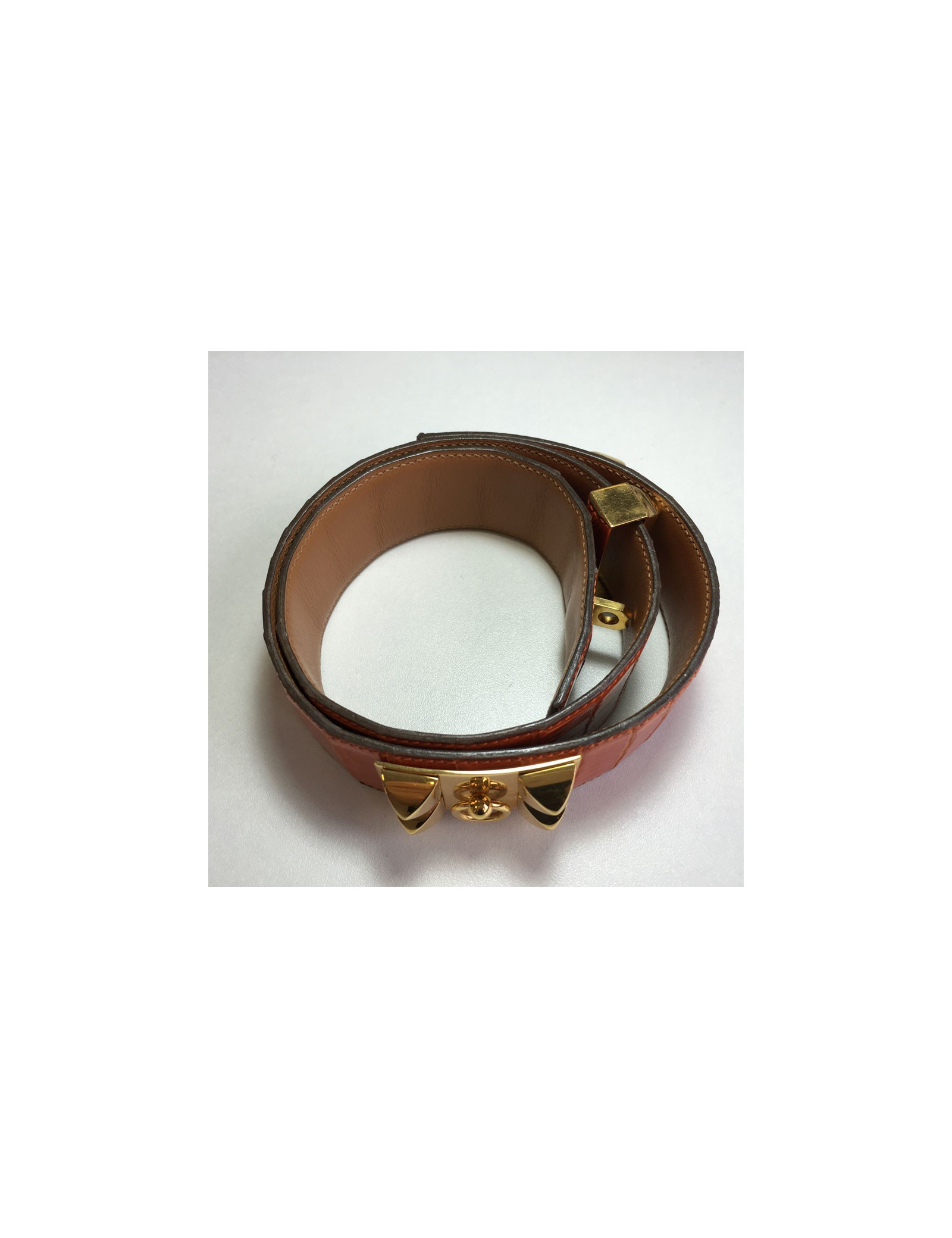 Ceinture HERMES CDC en crocodile orange. Taille 76. En très bon état. Quelques micros rayures sur la bijouterie dorée, infimes traces sur le cuir marron à l'intérieur. Lettre X dans un rond.