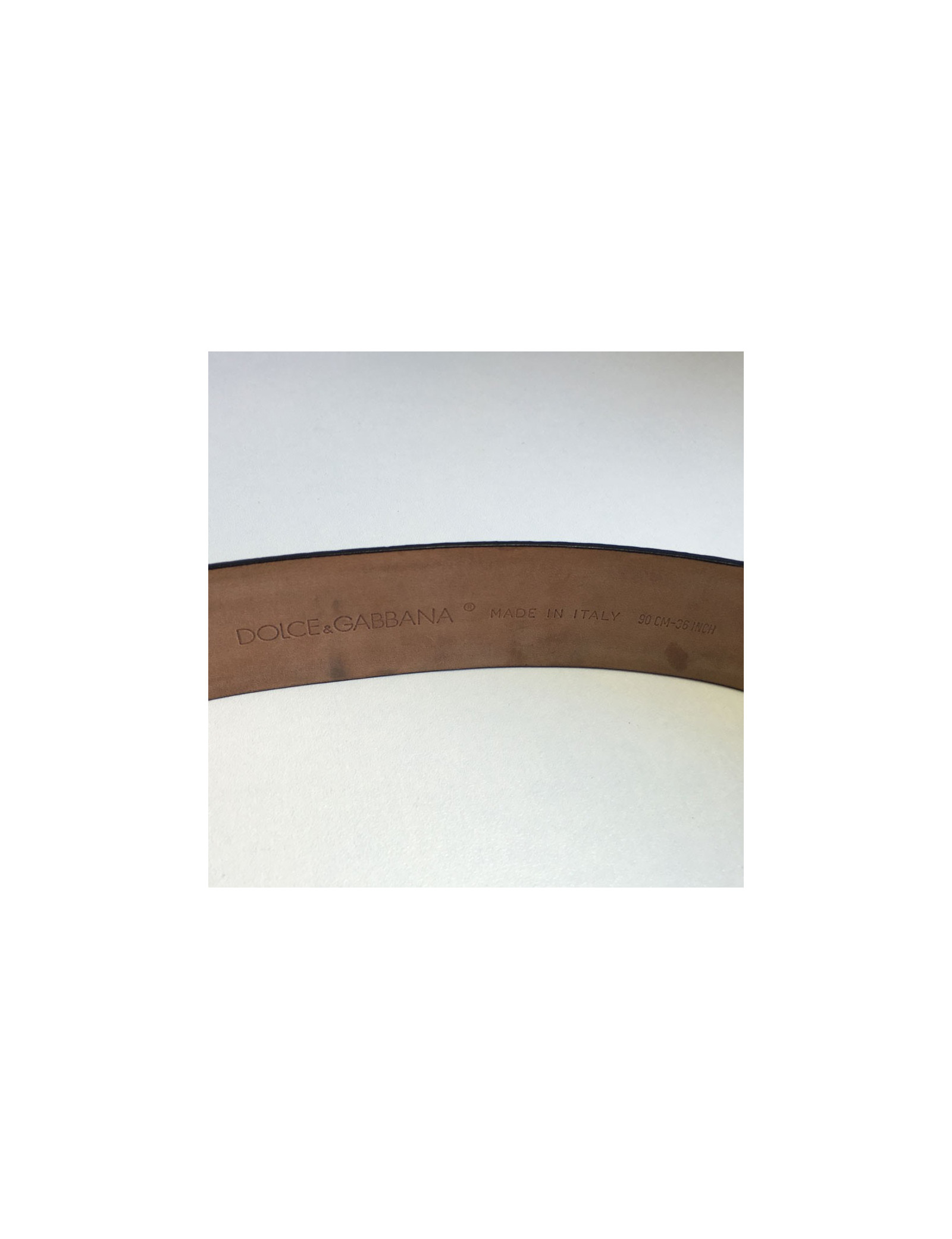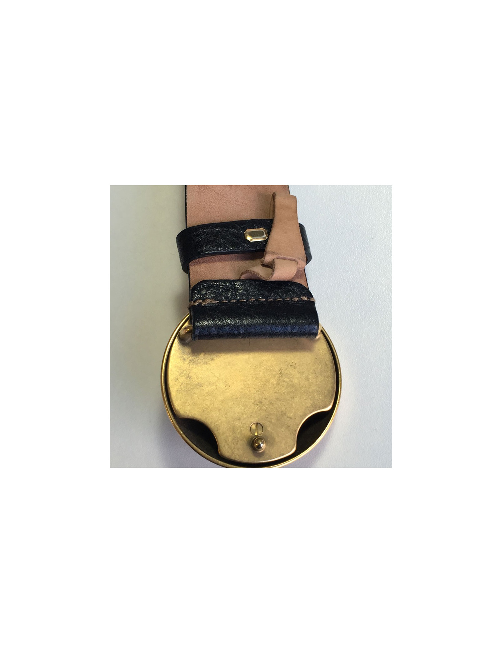 Ceinture en bon état extérieur. Des tâches sur le cuir marron clair à l'intérieur (voir photos).