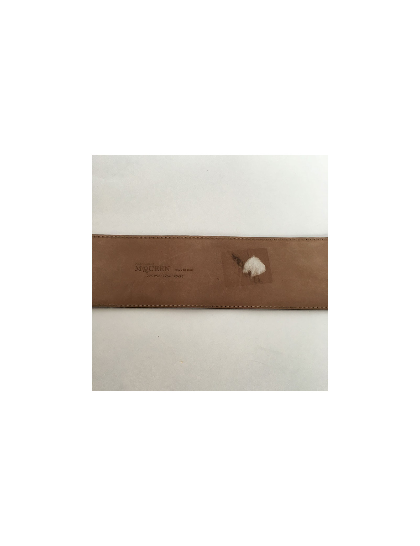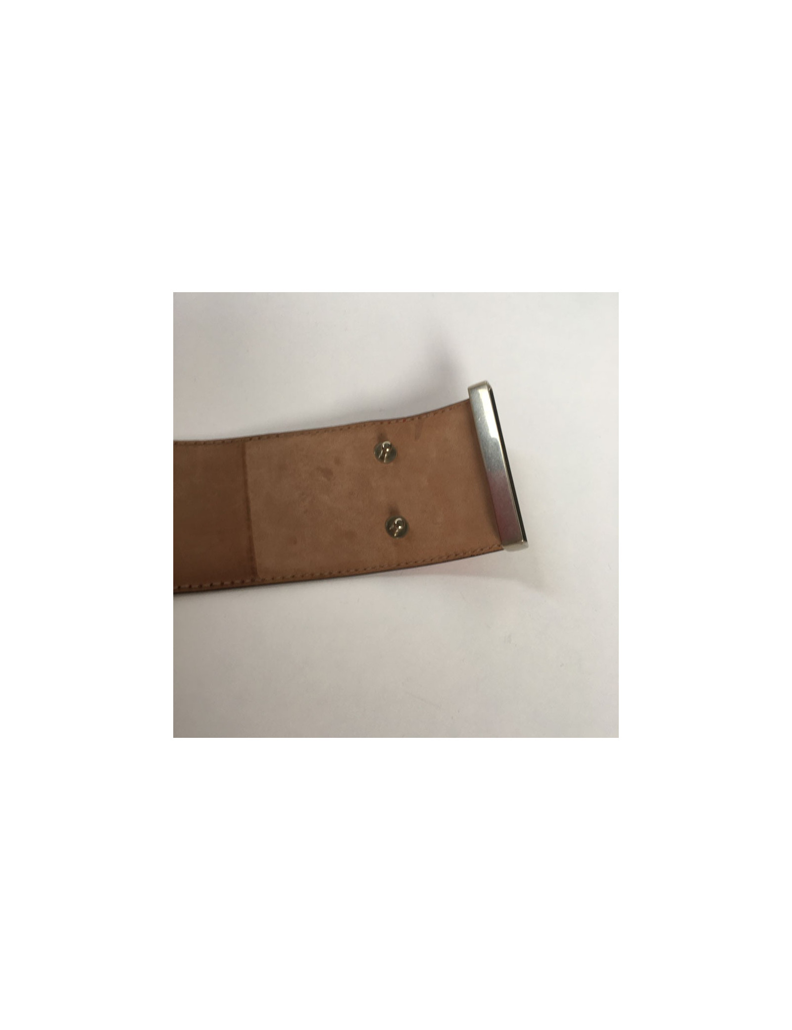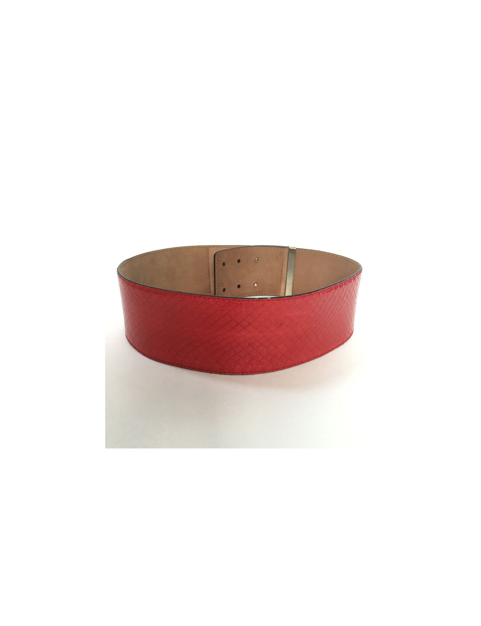 Très belle ceinture ALEXANDER McQUEEN en cuir façon serpent de couleur framboise. Bijouterie argentée. En très bon état. Marque de l'étiquette sur l'intérieur en suède beige.