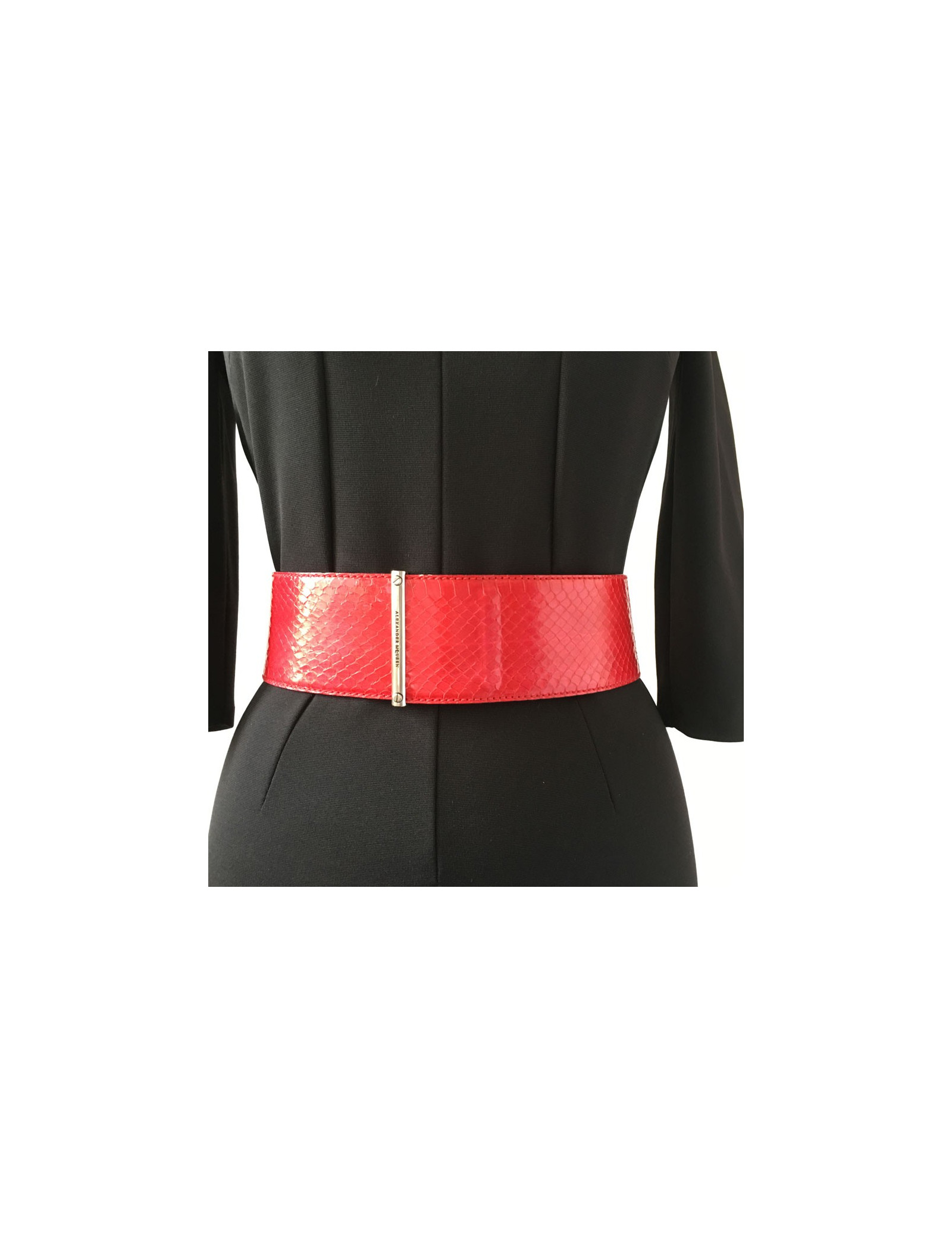 Ceinture Alexander MCQUEEN en cuir façon serpent couleur framboise