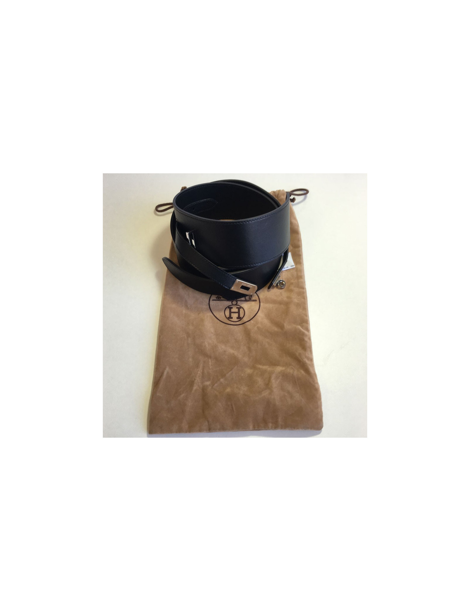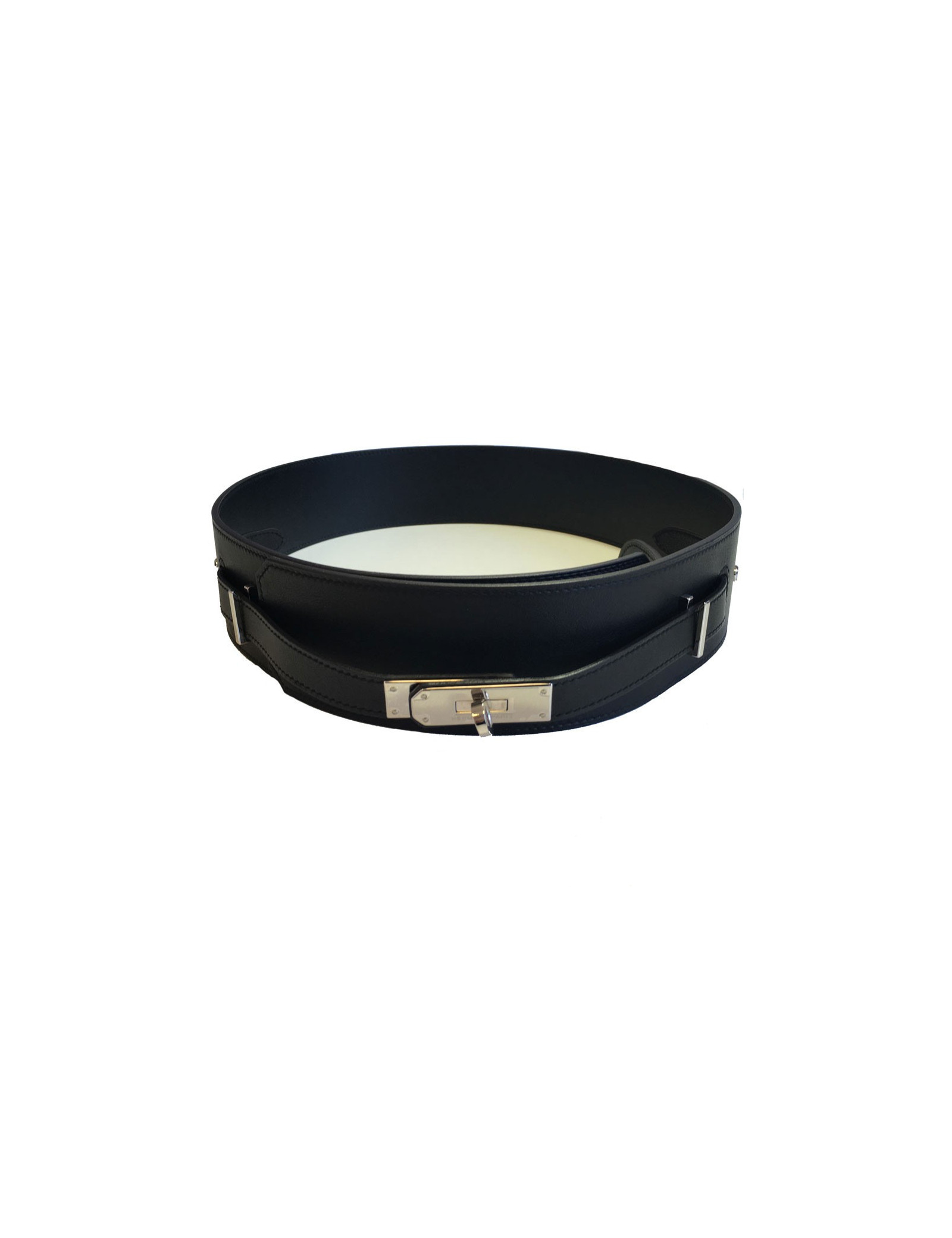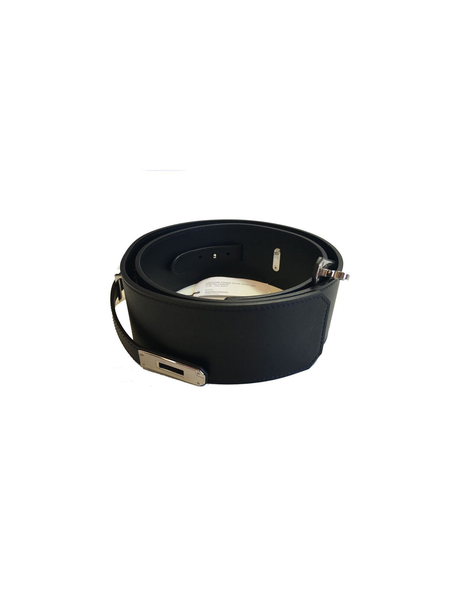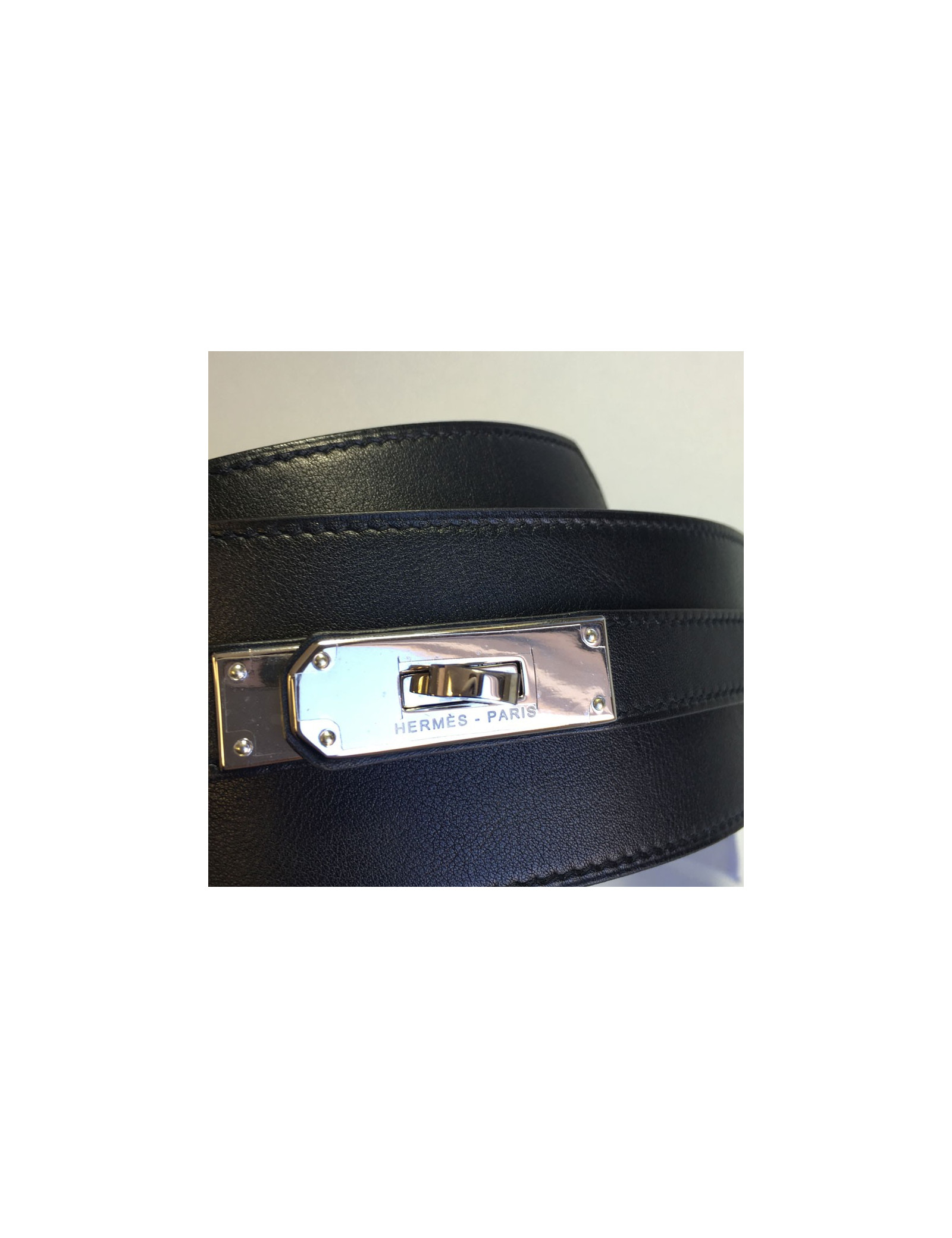 Superbe ceinture HERMES Diane en cuir veau swift noir, fermoir Kelly accastillage palladium