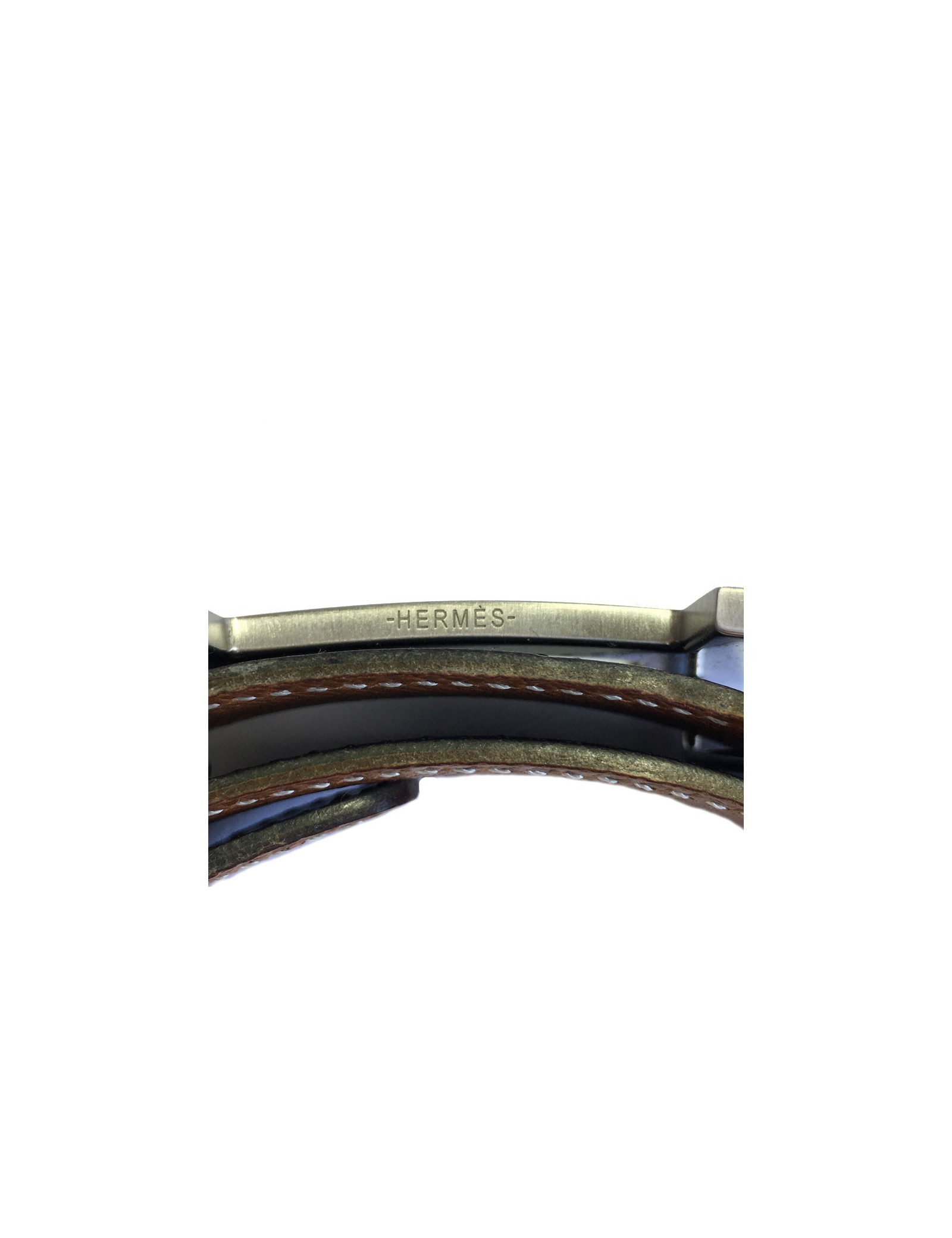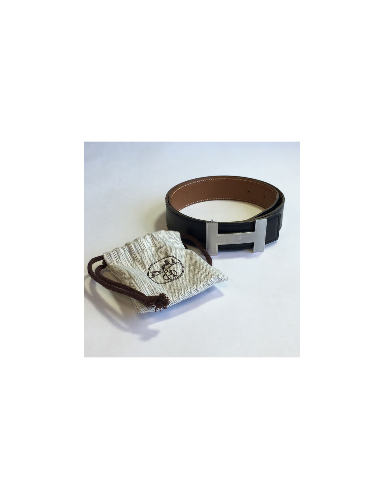Ceinture H HERMES T70 réversible en cuir box noir et cuir courchevel gold
