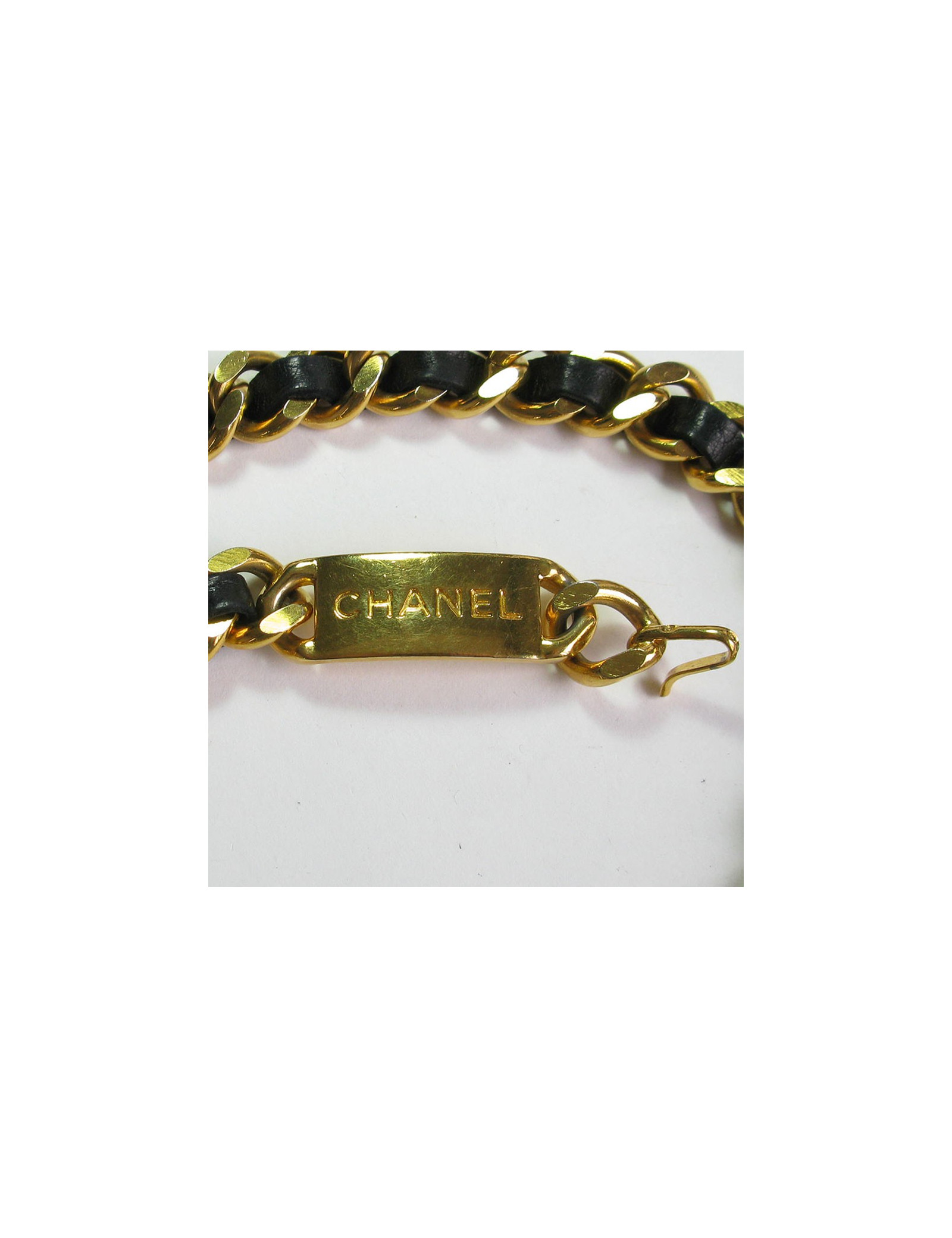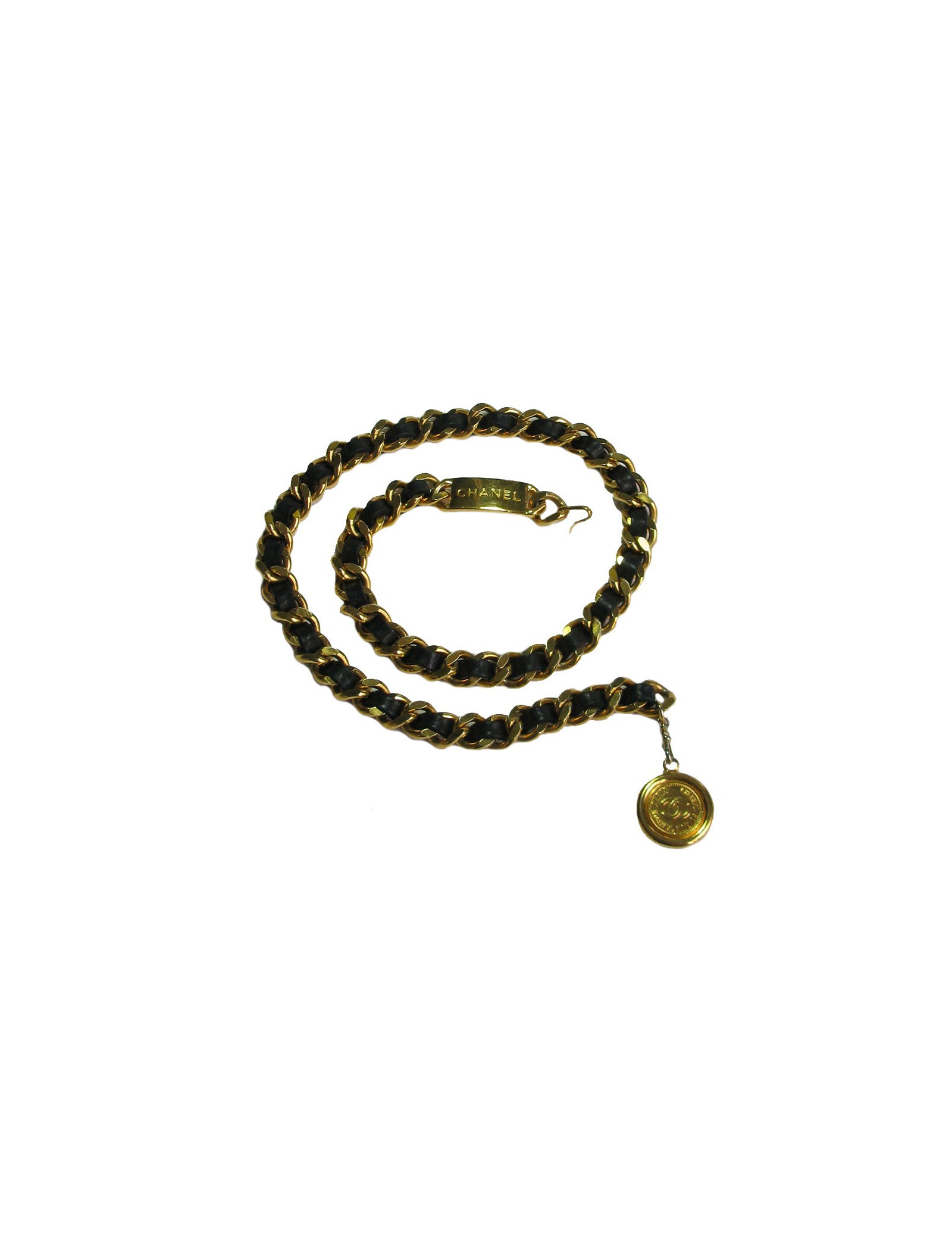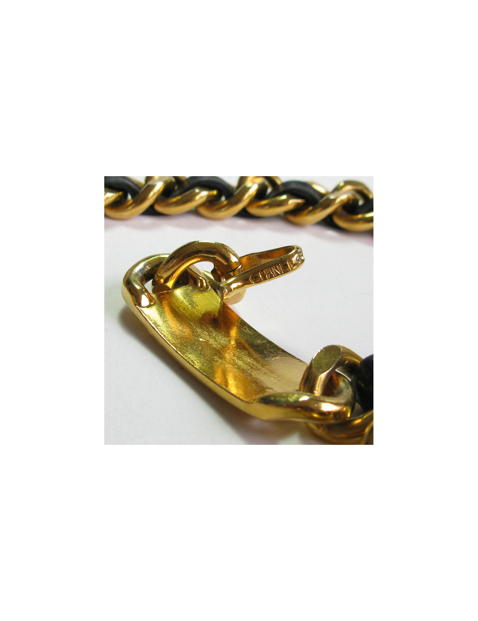 Ceinture CHANEL en chaine dorée et cuir noir vintage