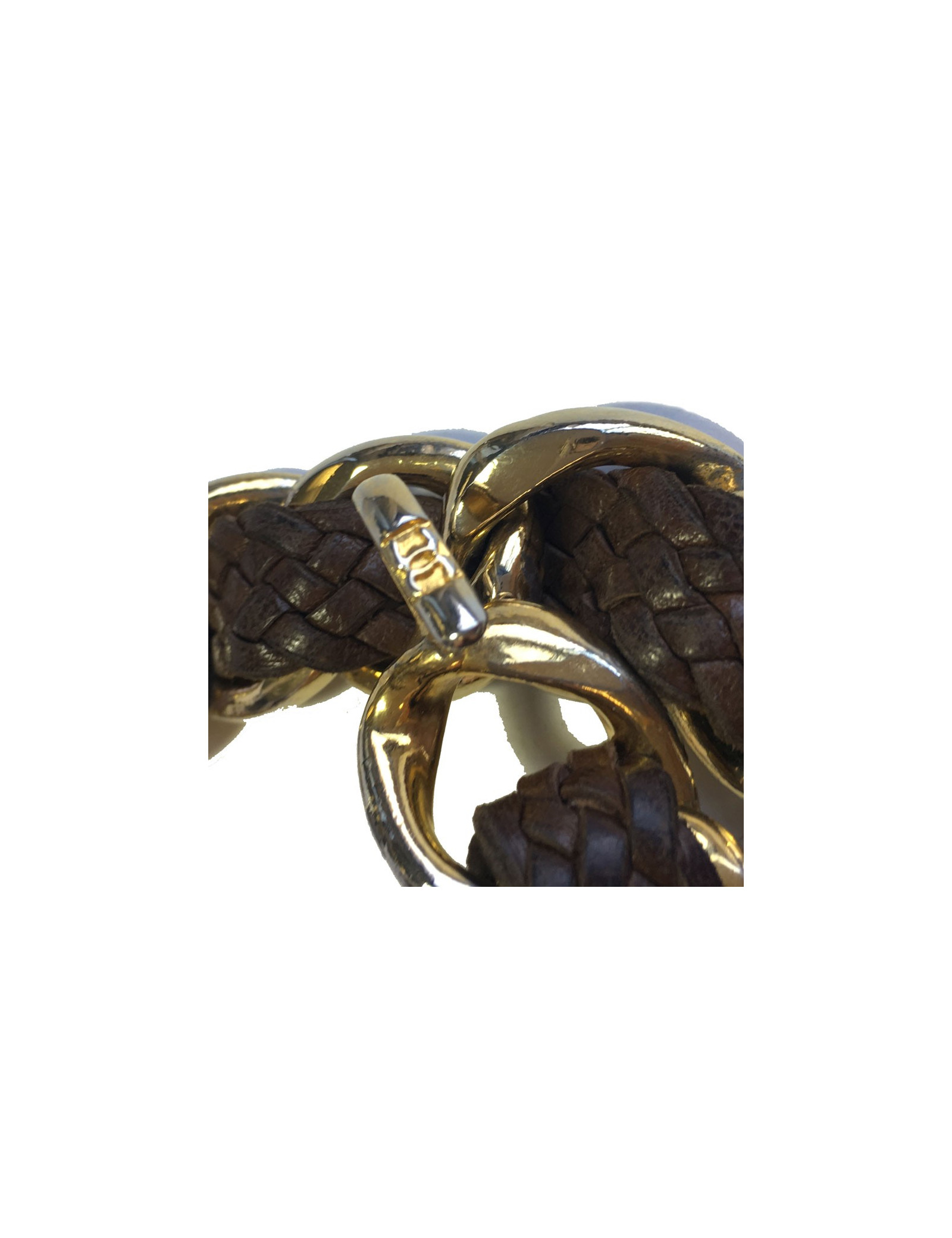 Ceinture CHANEL vintage en métal doré et cuir tressé marron