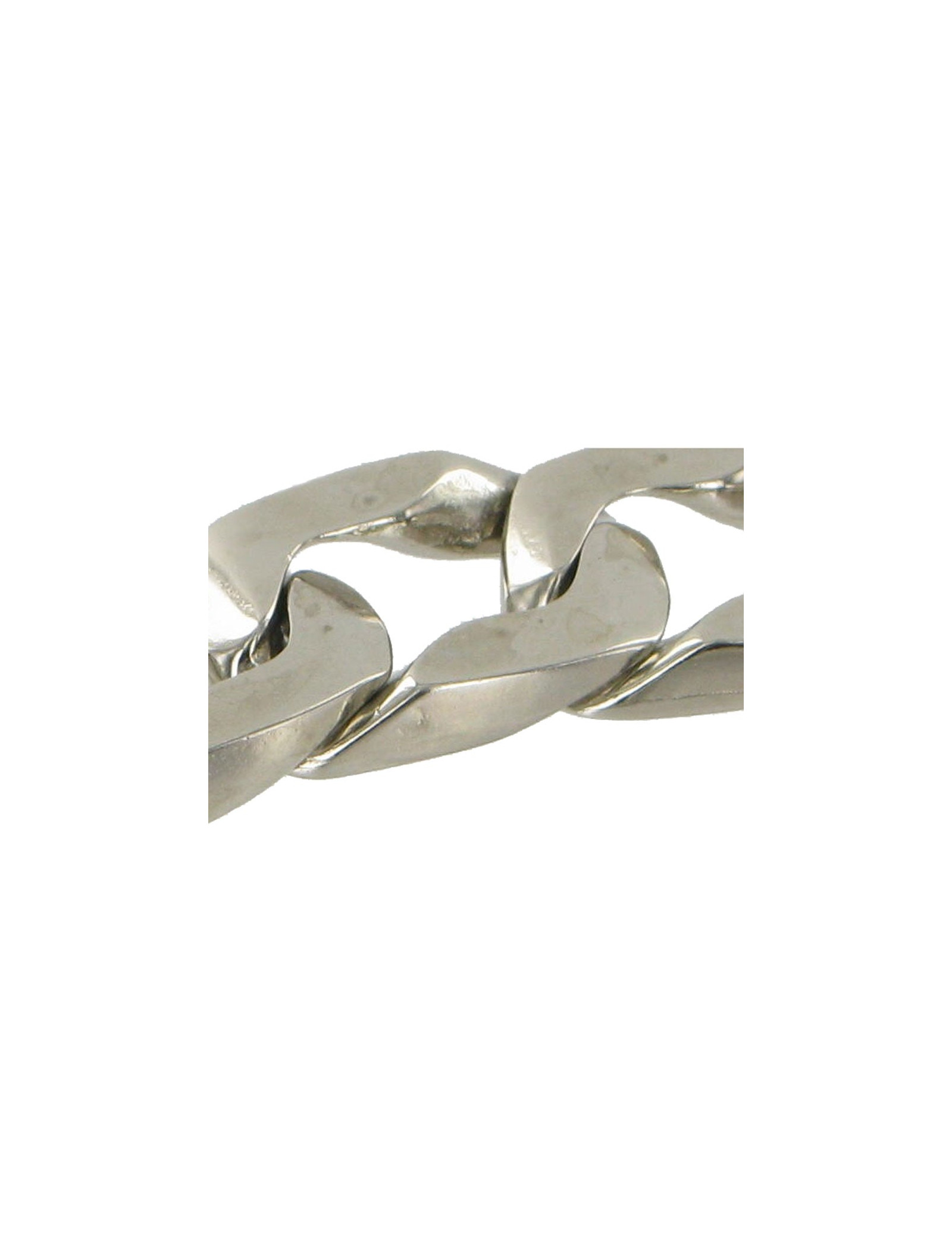 Métal plaqué argent, chaîne gourmette, motif d'attache puzzle, sertie de strass.