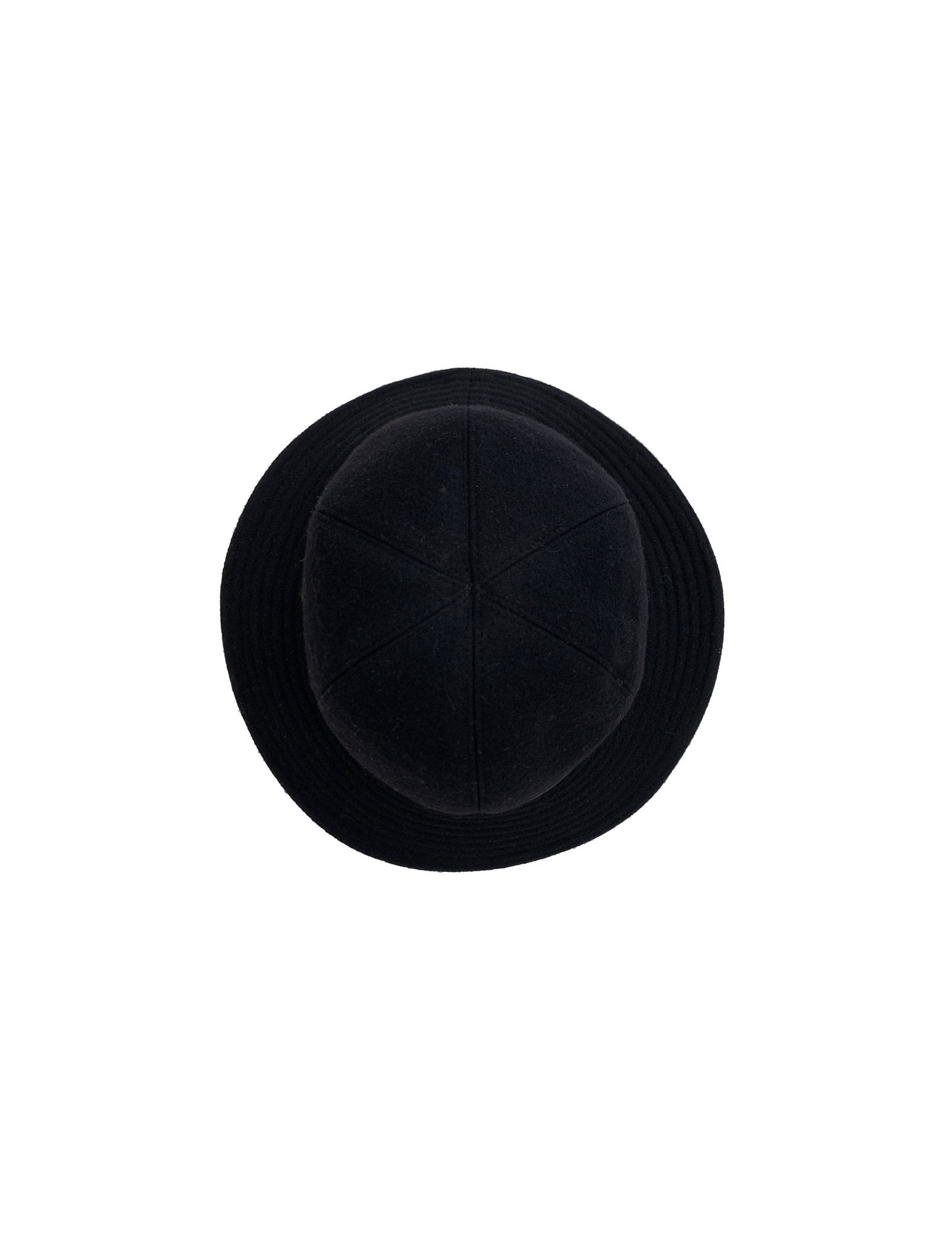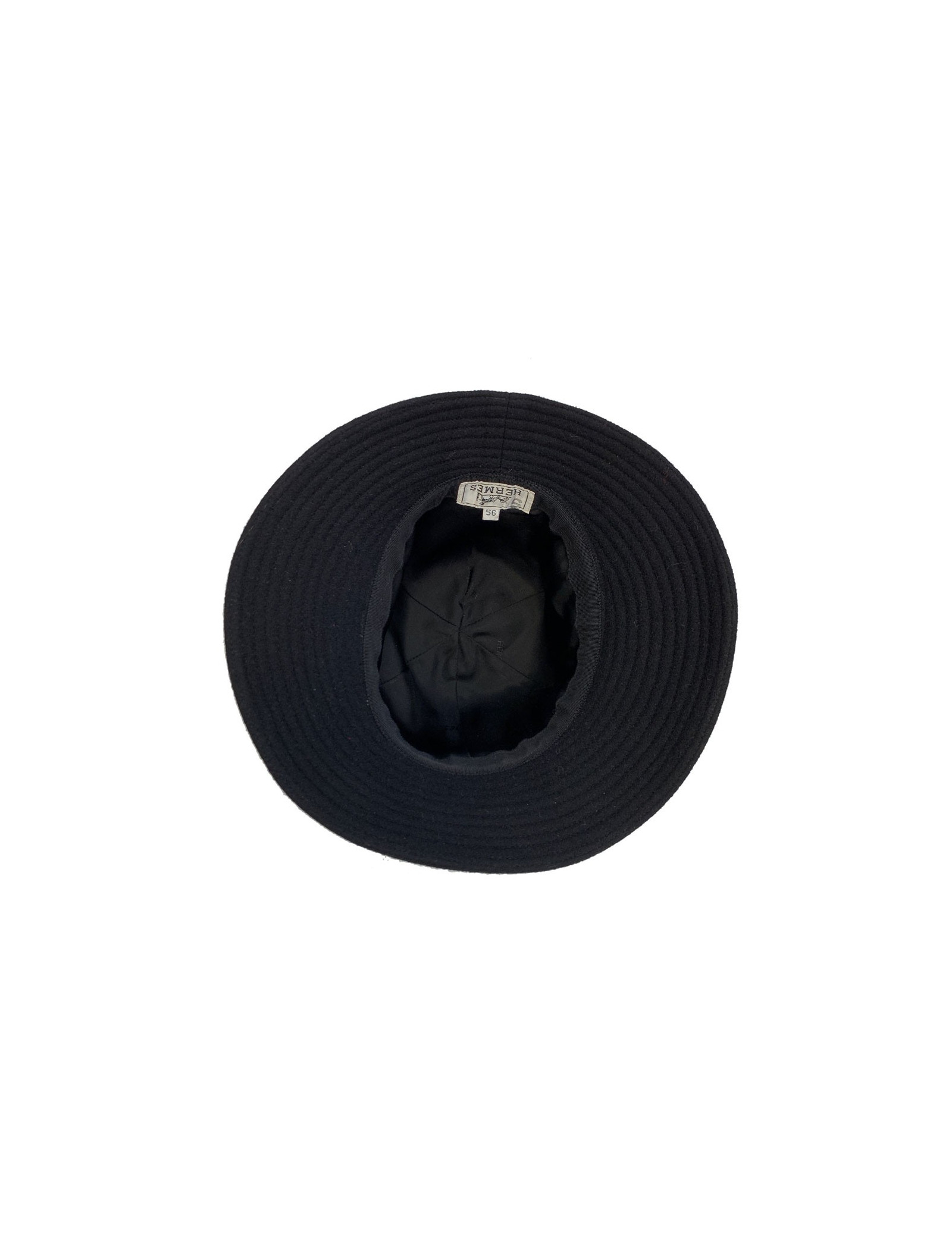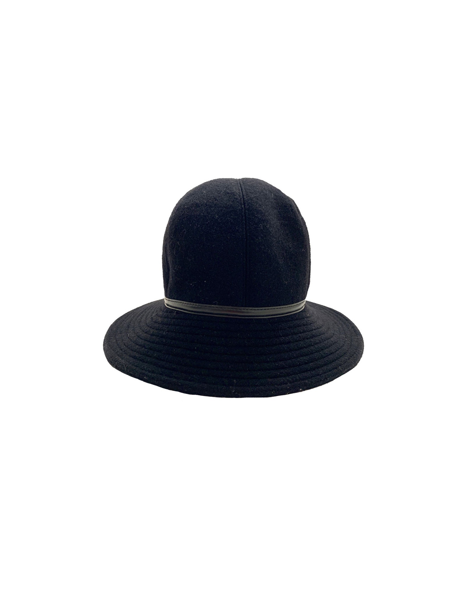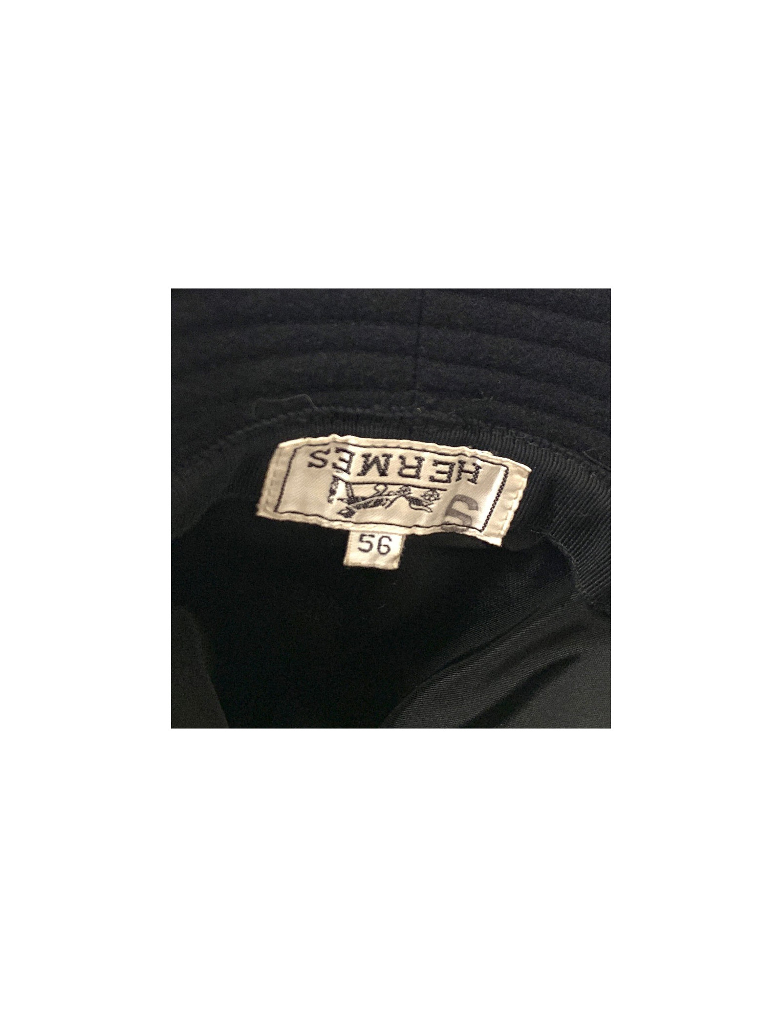 Tendance! Chapeau HERMES en cachemire noir. Il a un liseré en cuir noir sur tout le contour. Intérieur en acétate monogrammé noir. Il est issu des ventes privées (lettre S des soldes tamponnée sur l'étiquette à l'intérieur).