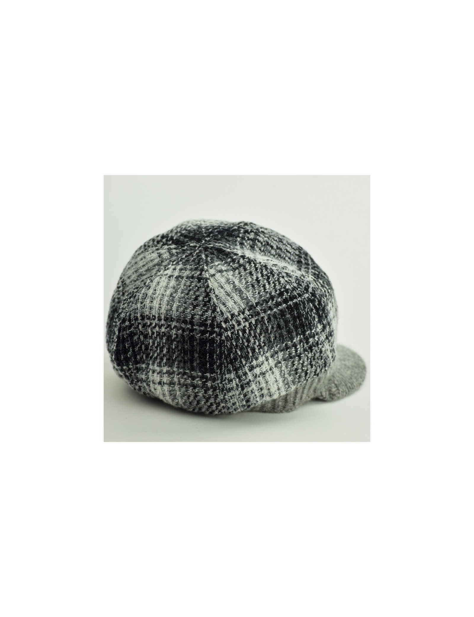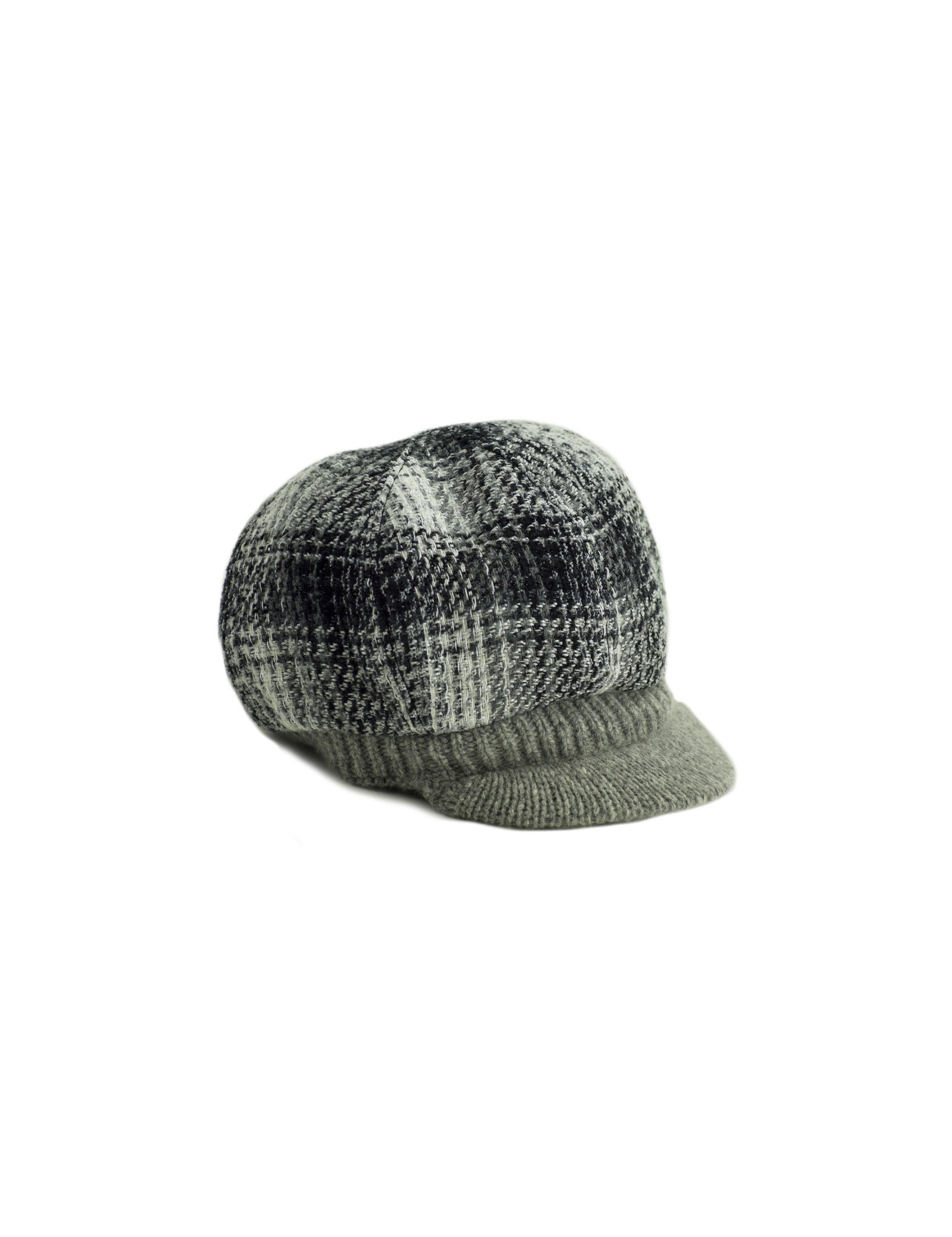 La casquette provient de la Maison CHANEL. Elle a une forme de casquette gavroche. Elle est en cachemire et laine blanche, noire et grise. Sur l’avant gauche, le logo CC en métal est présent, il apporte une touche fashion supplémentaire.