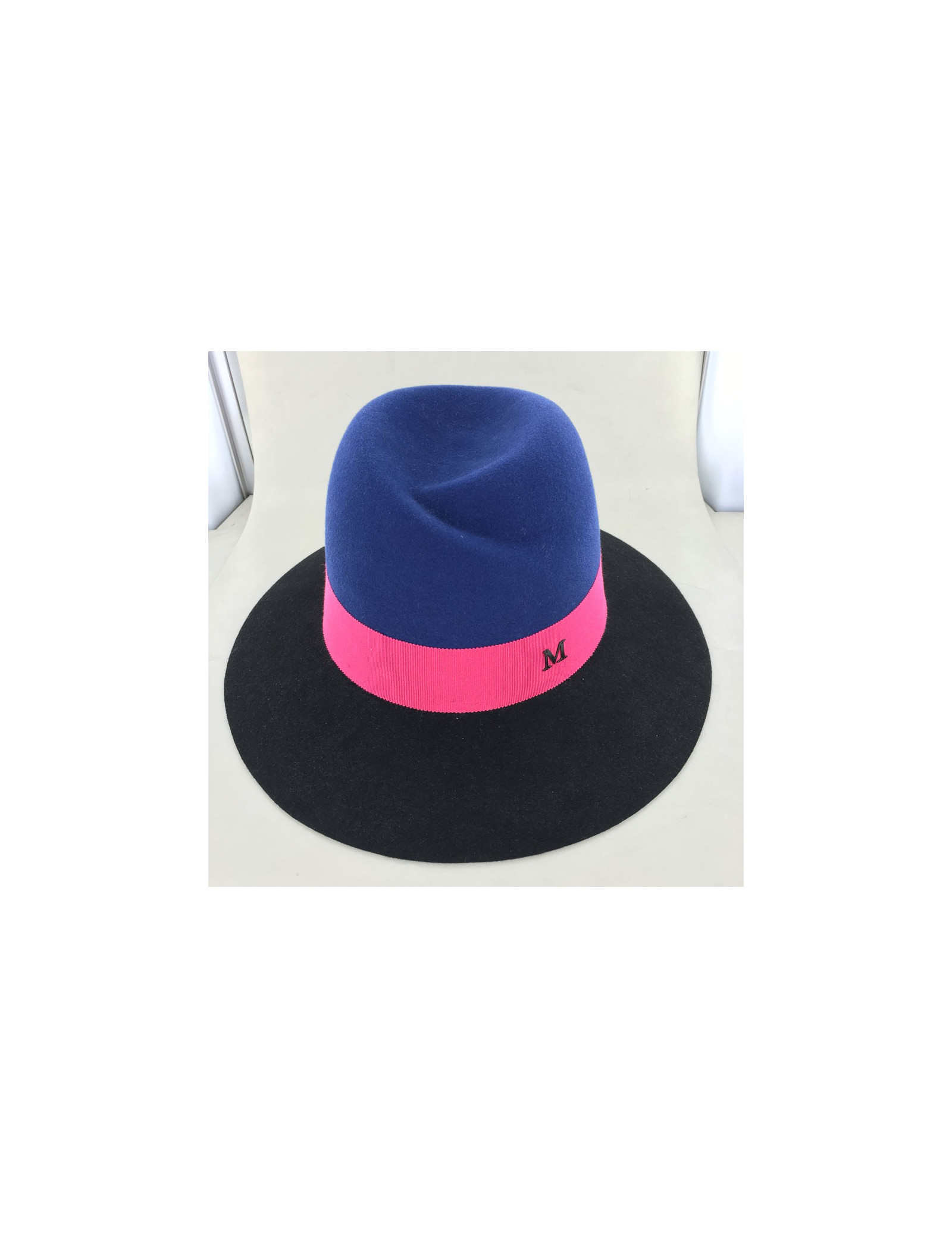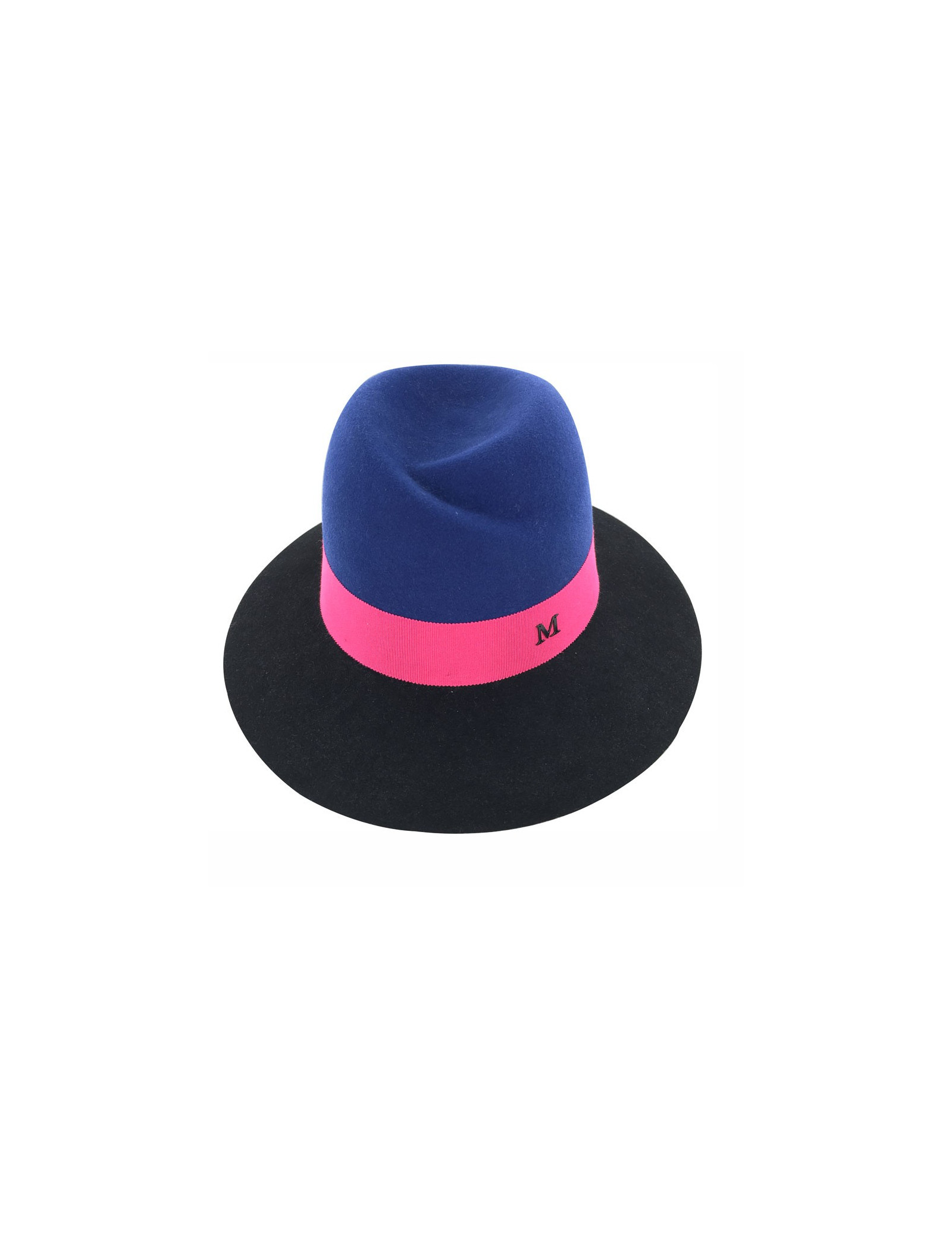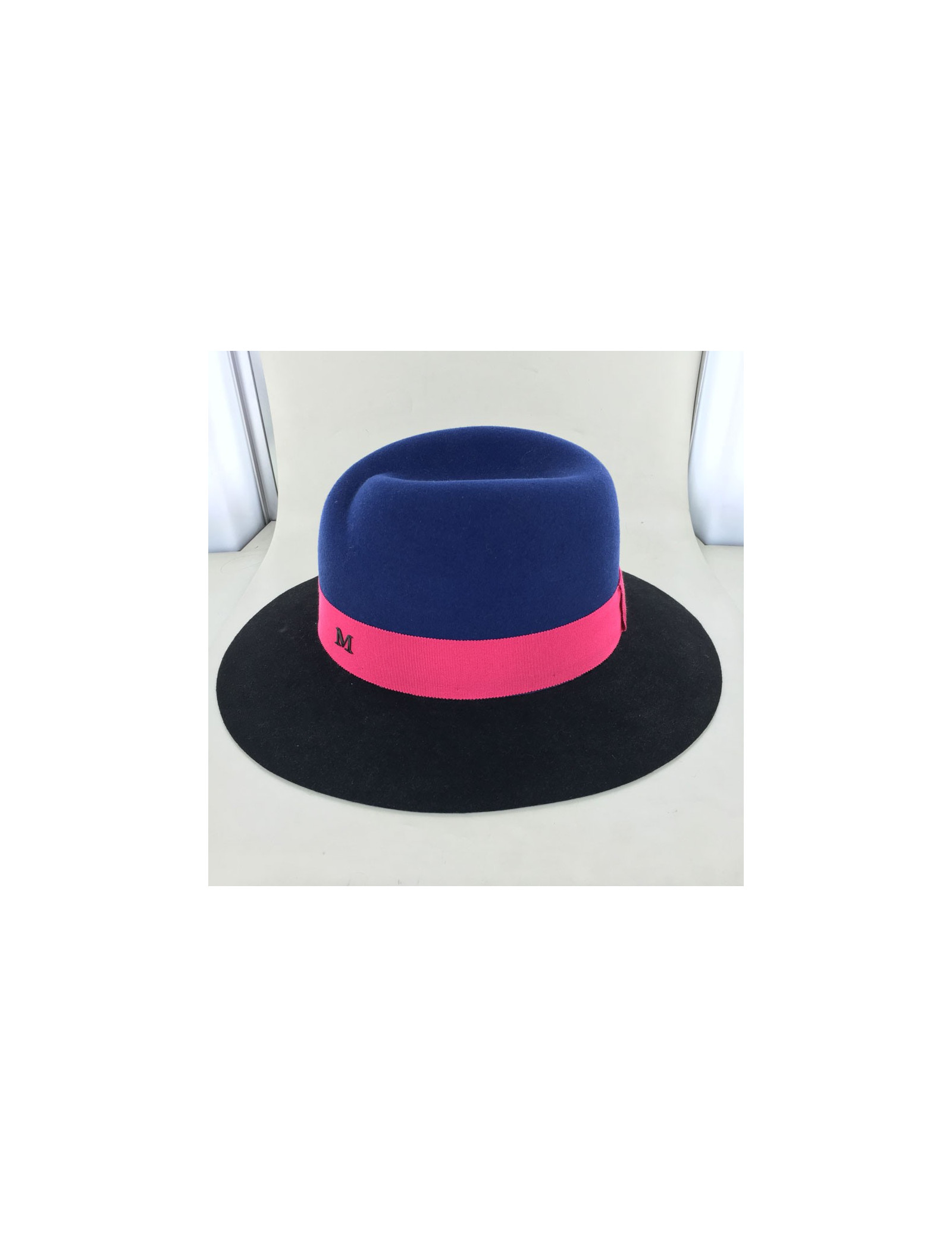 Feutre Virginie MAISON MICHEL bicolore bleu et noir et gros grain bordeaux