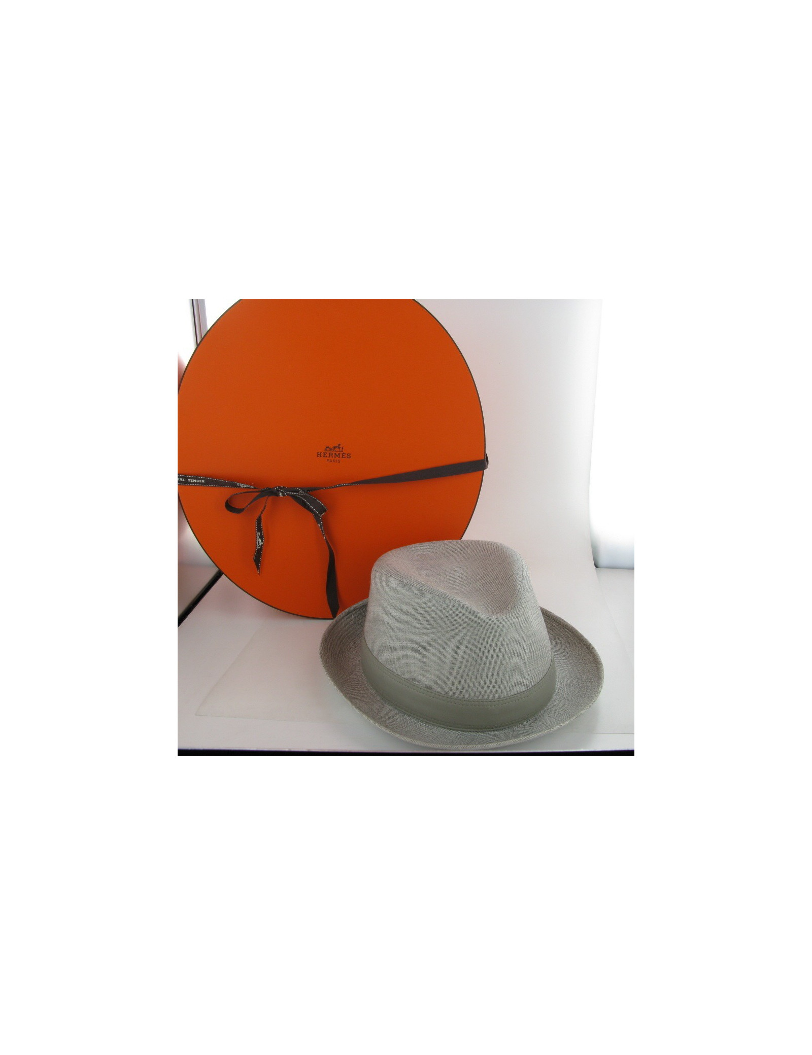 Magnifique chapeau de feutre ou feutre en laine et soie gris clair HERMES (forme Borsalino)