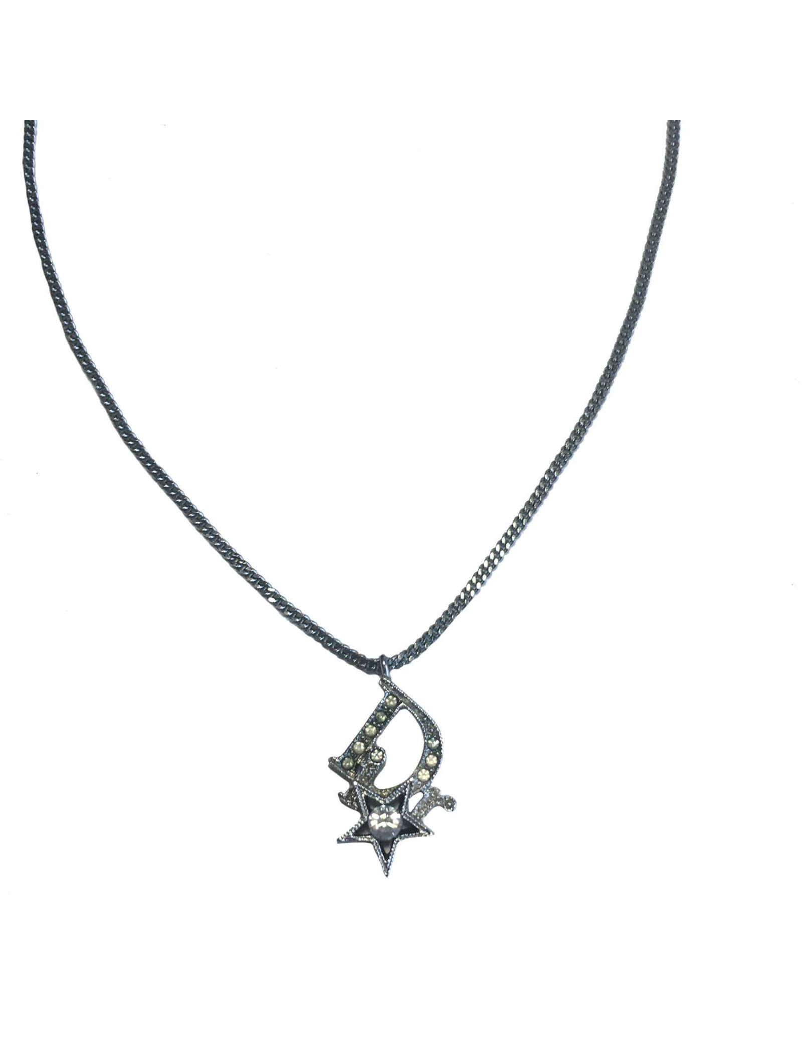 Collier DIOR étoile strass et métal argenté