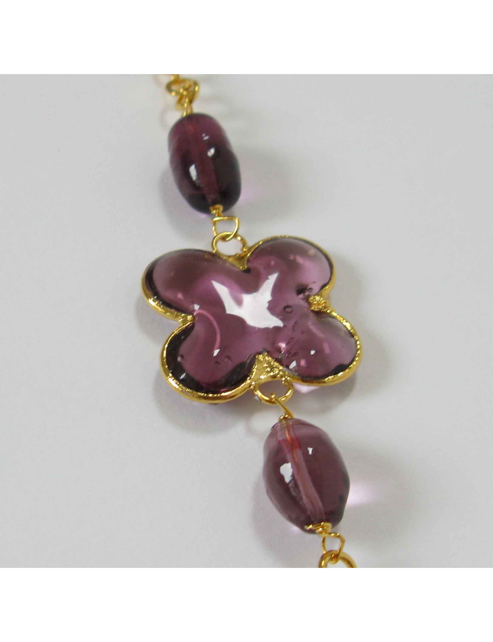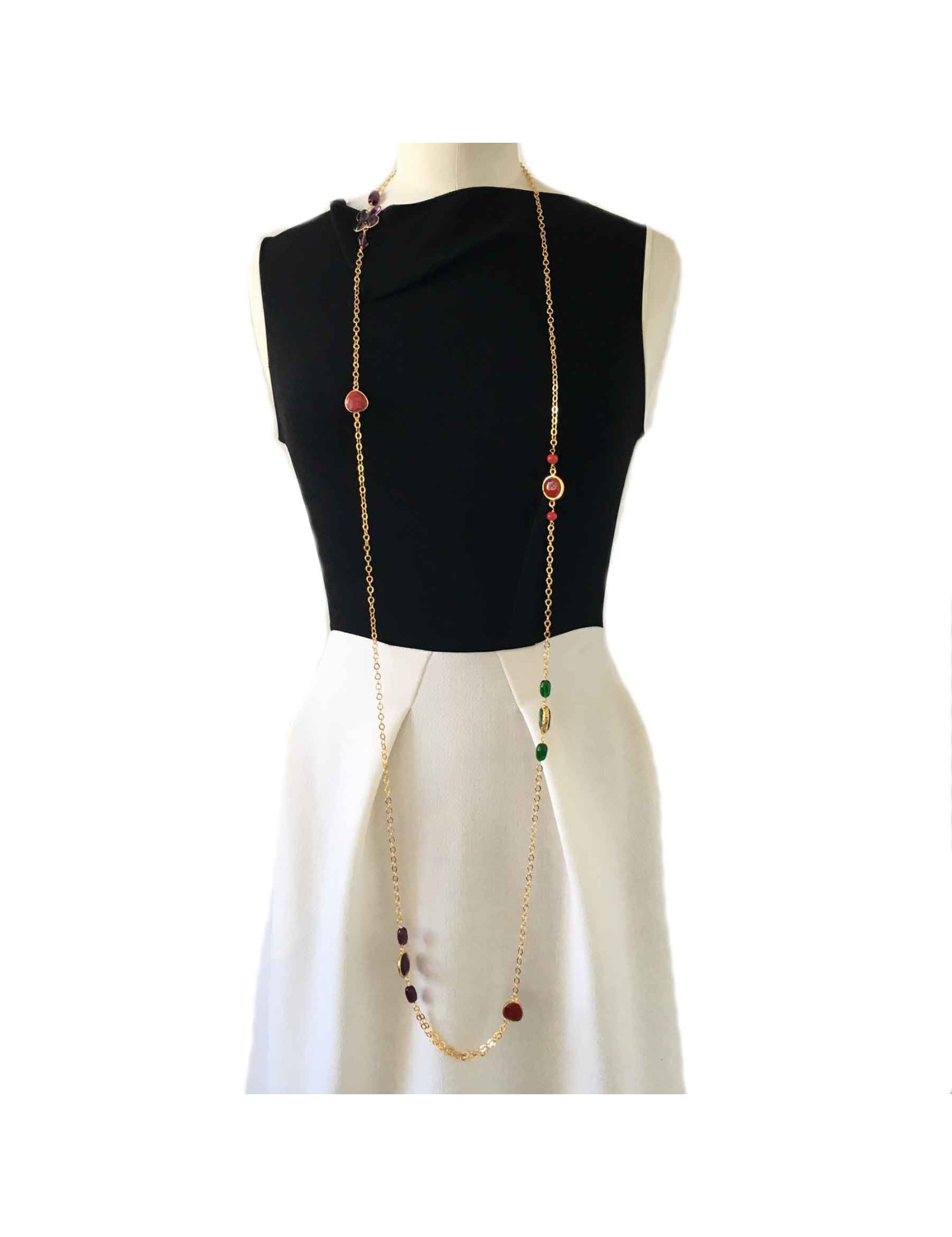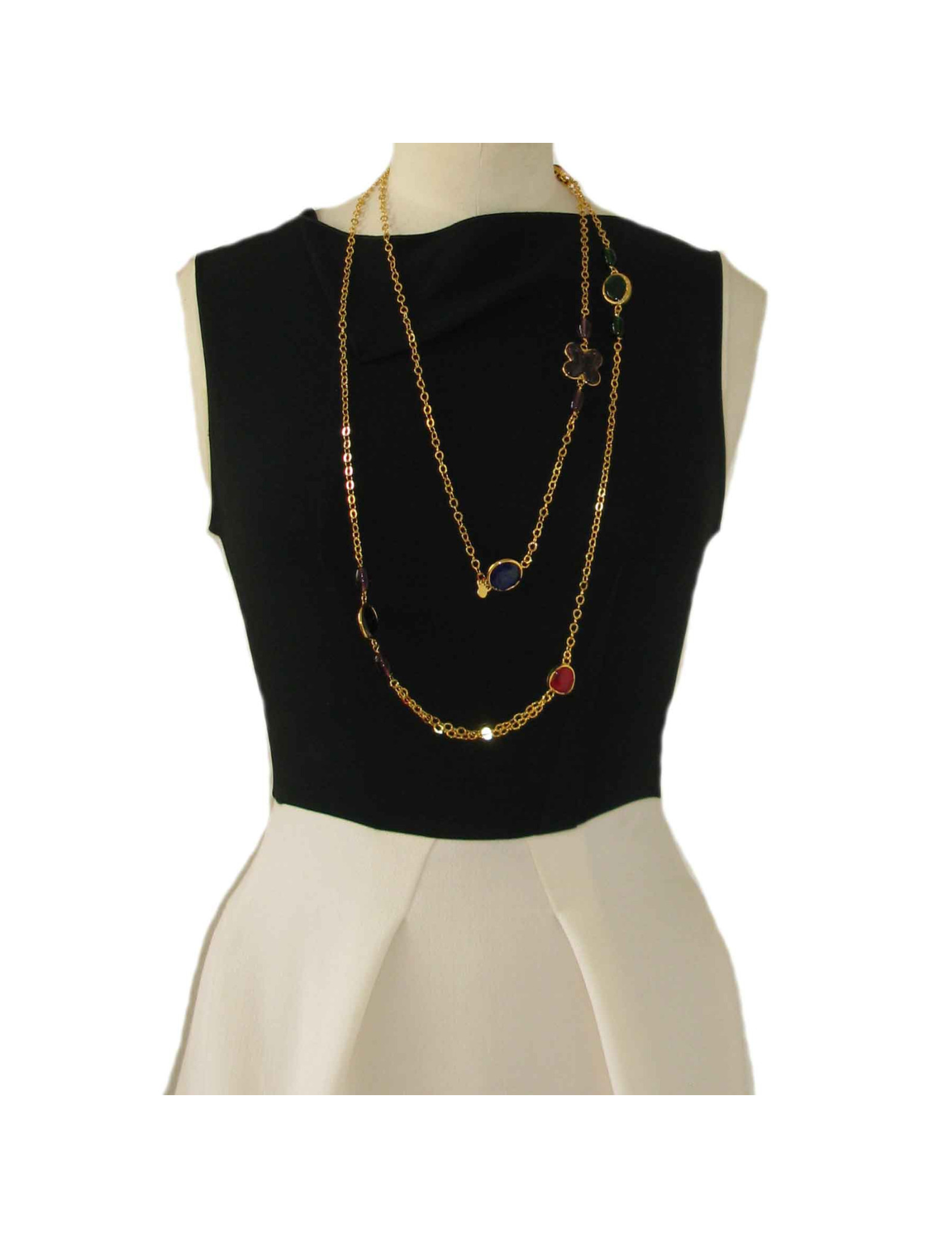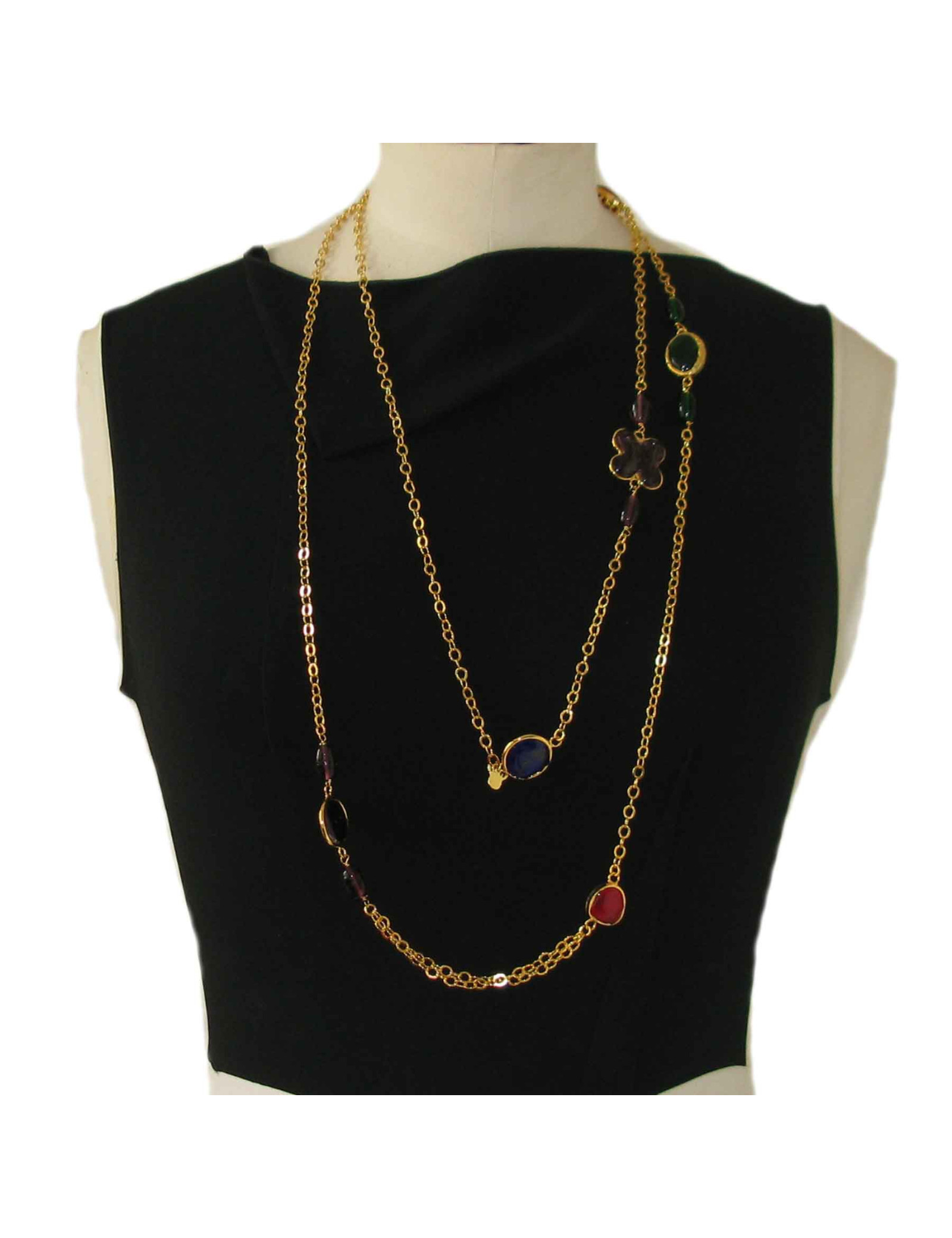 chaîne dorée à l'or fin et pâte de verre multicolore.