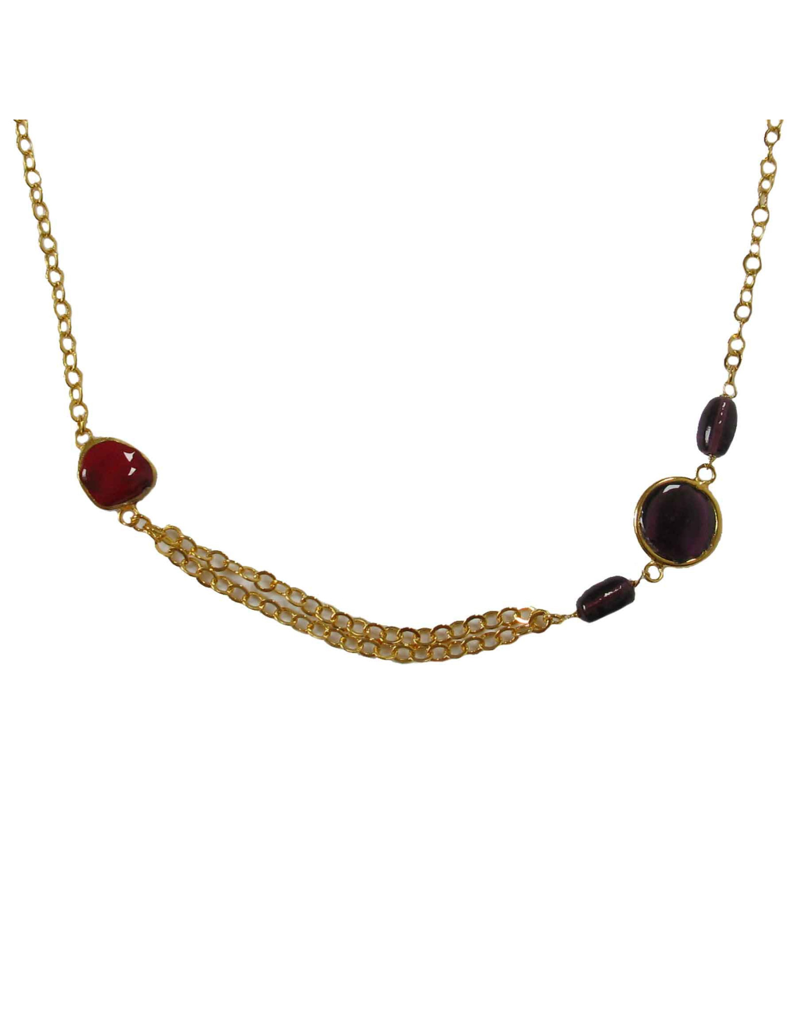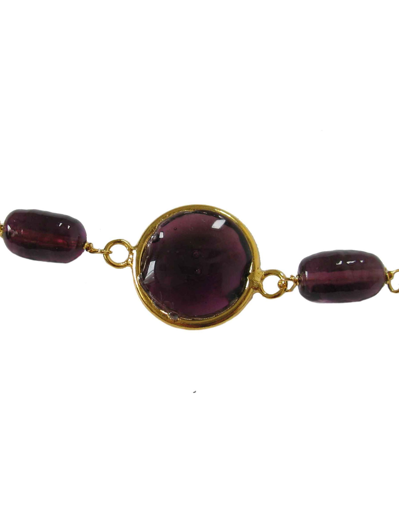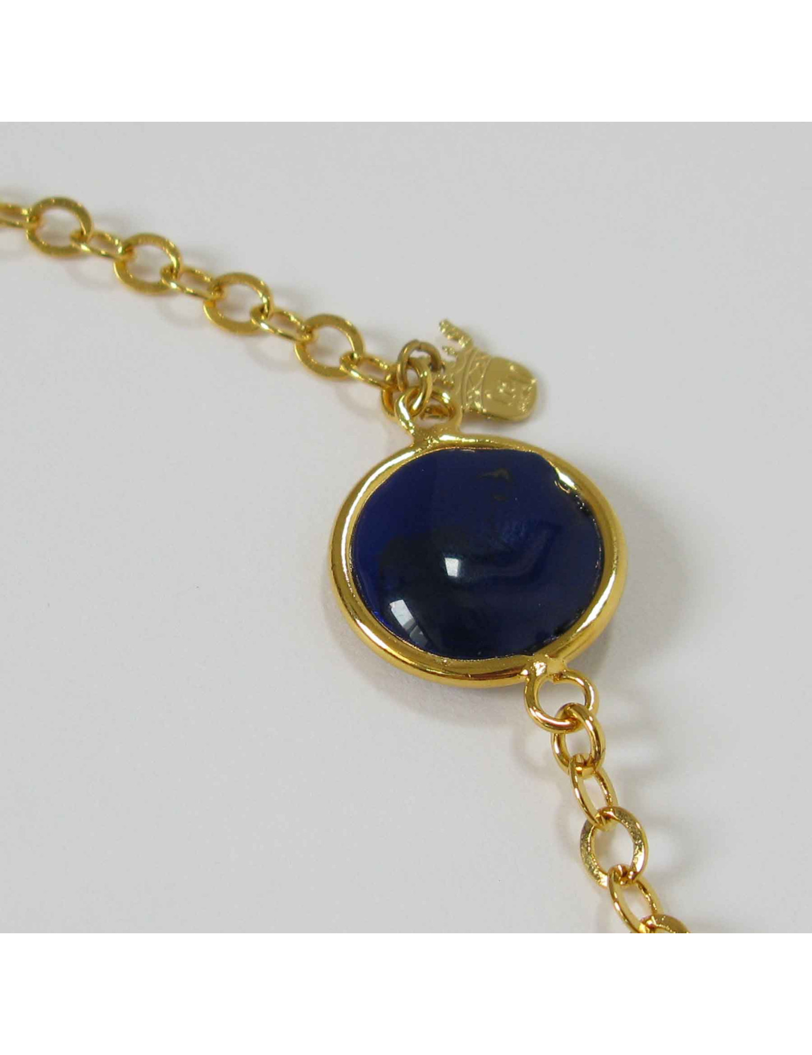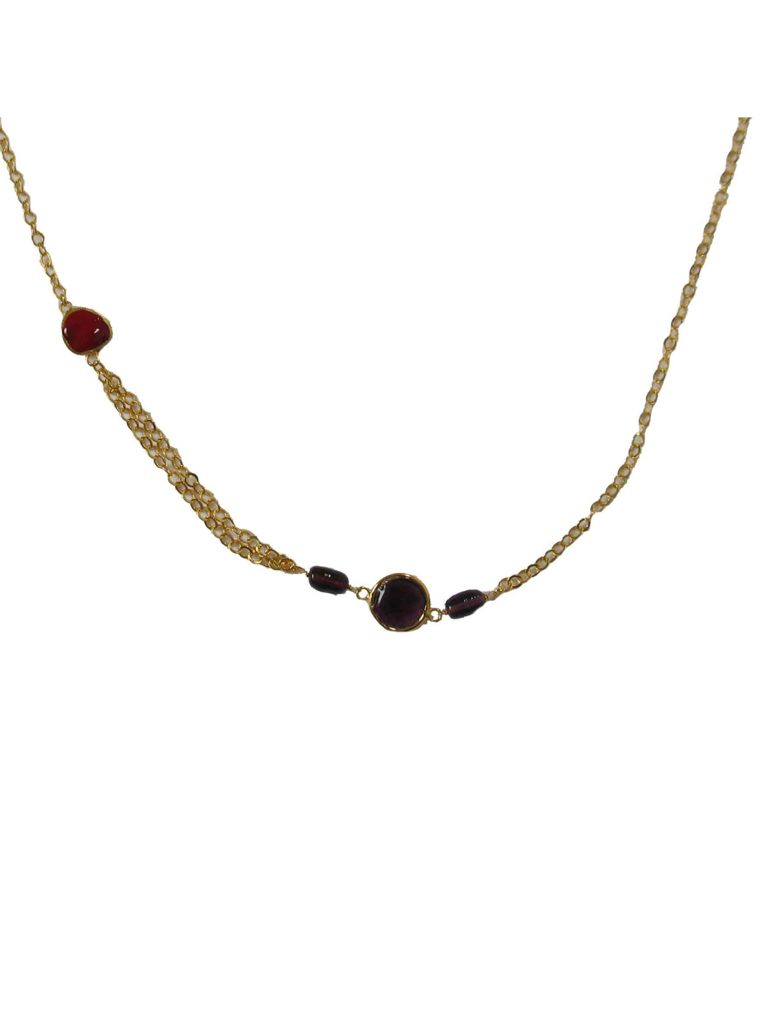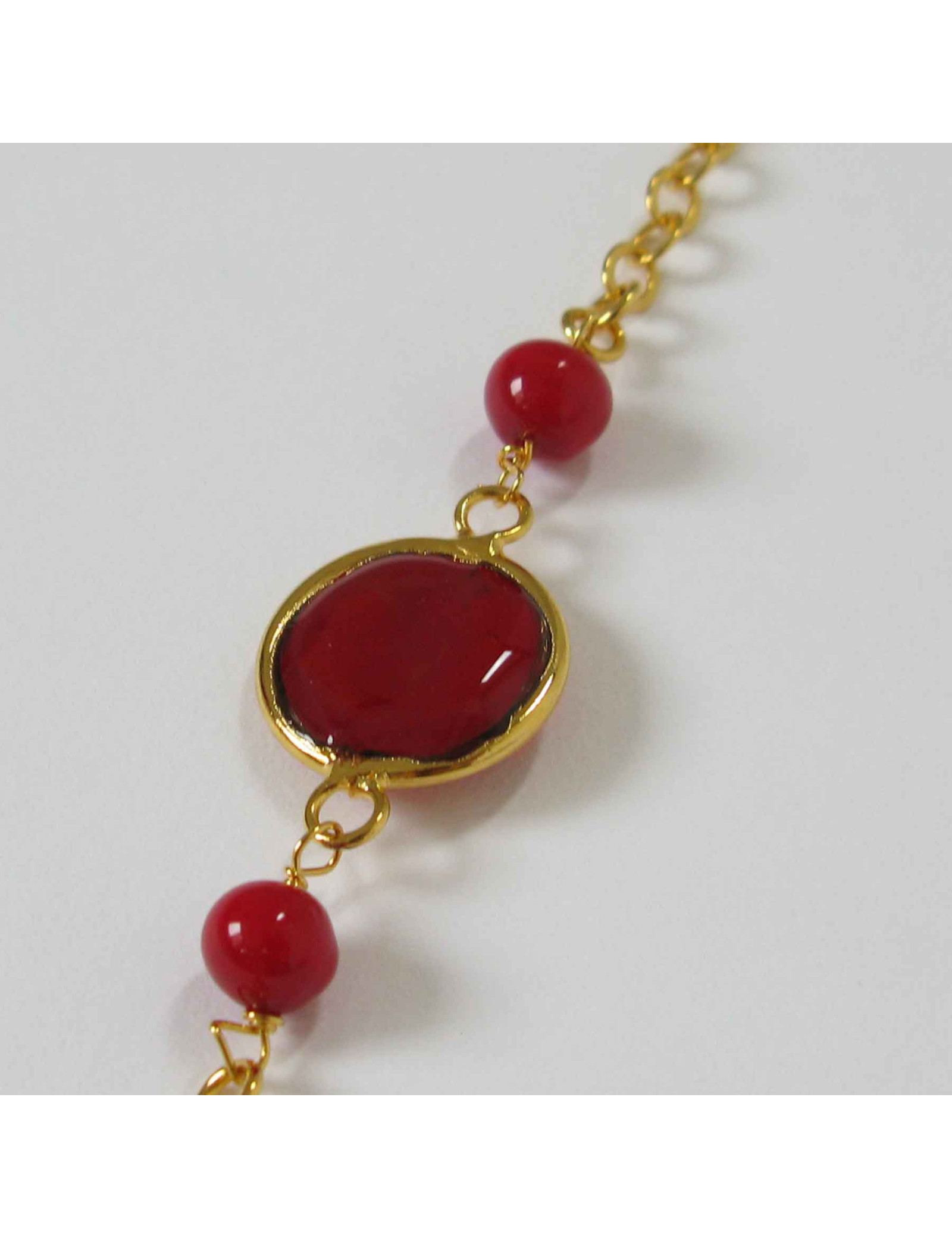 chaîne dorée à l'or fin et pâte de verre multicolore.
