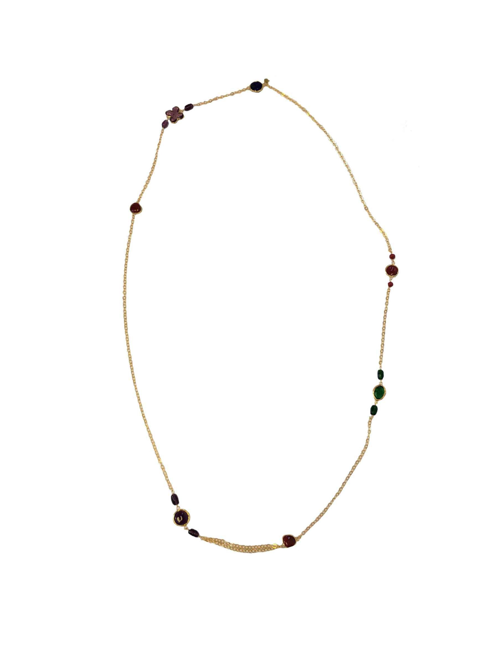 Sautoir MARGUERITE DE VALOIS en plaqué or et en pâte de verre