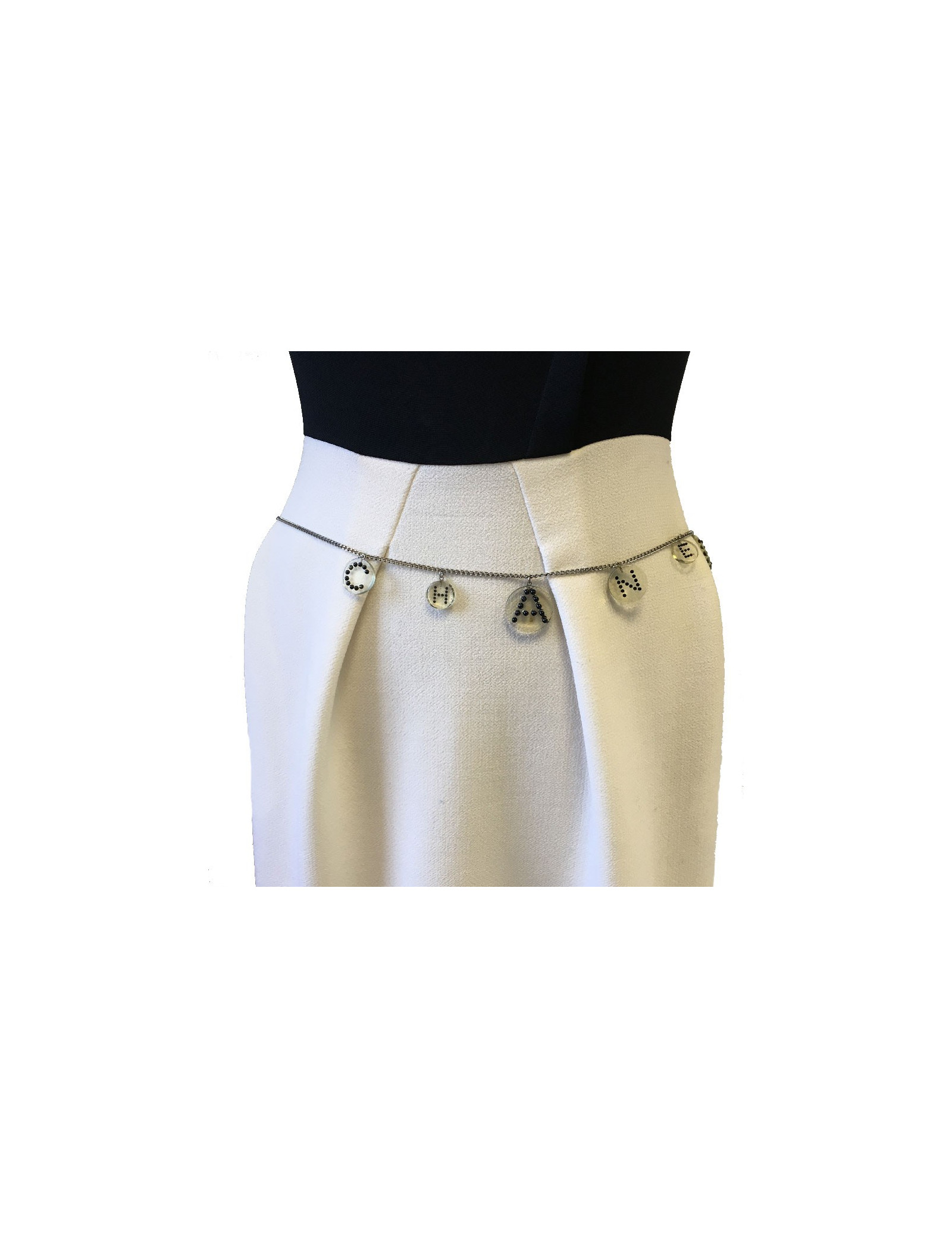 Ceinture sautoir CHANEL en plexi transparent et perles noires