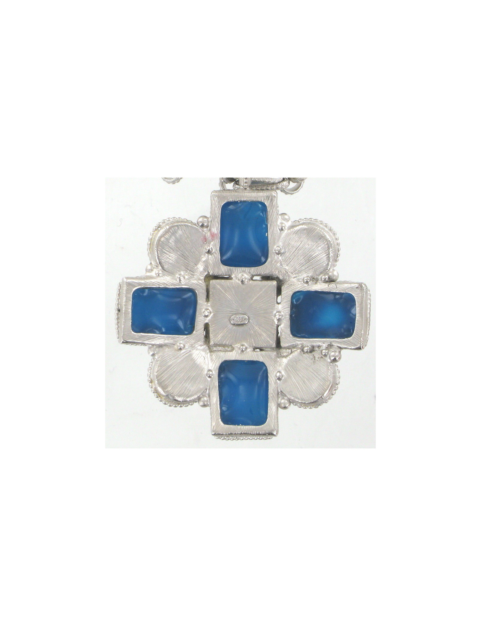 Pâte de verre MARGUERITE DE VALOIS sautoir croix