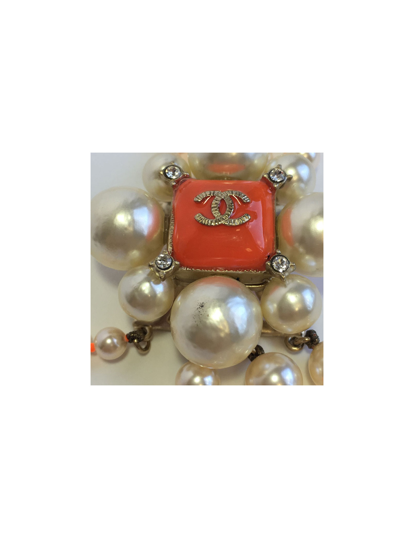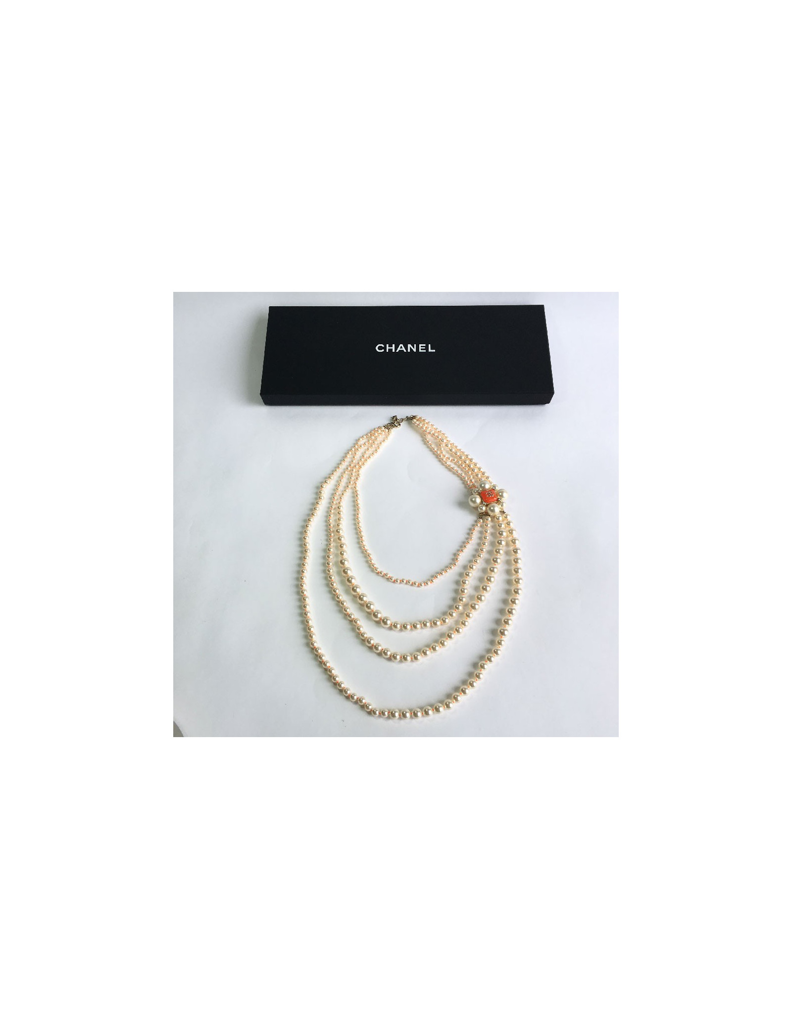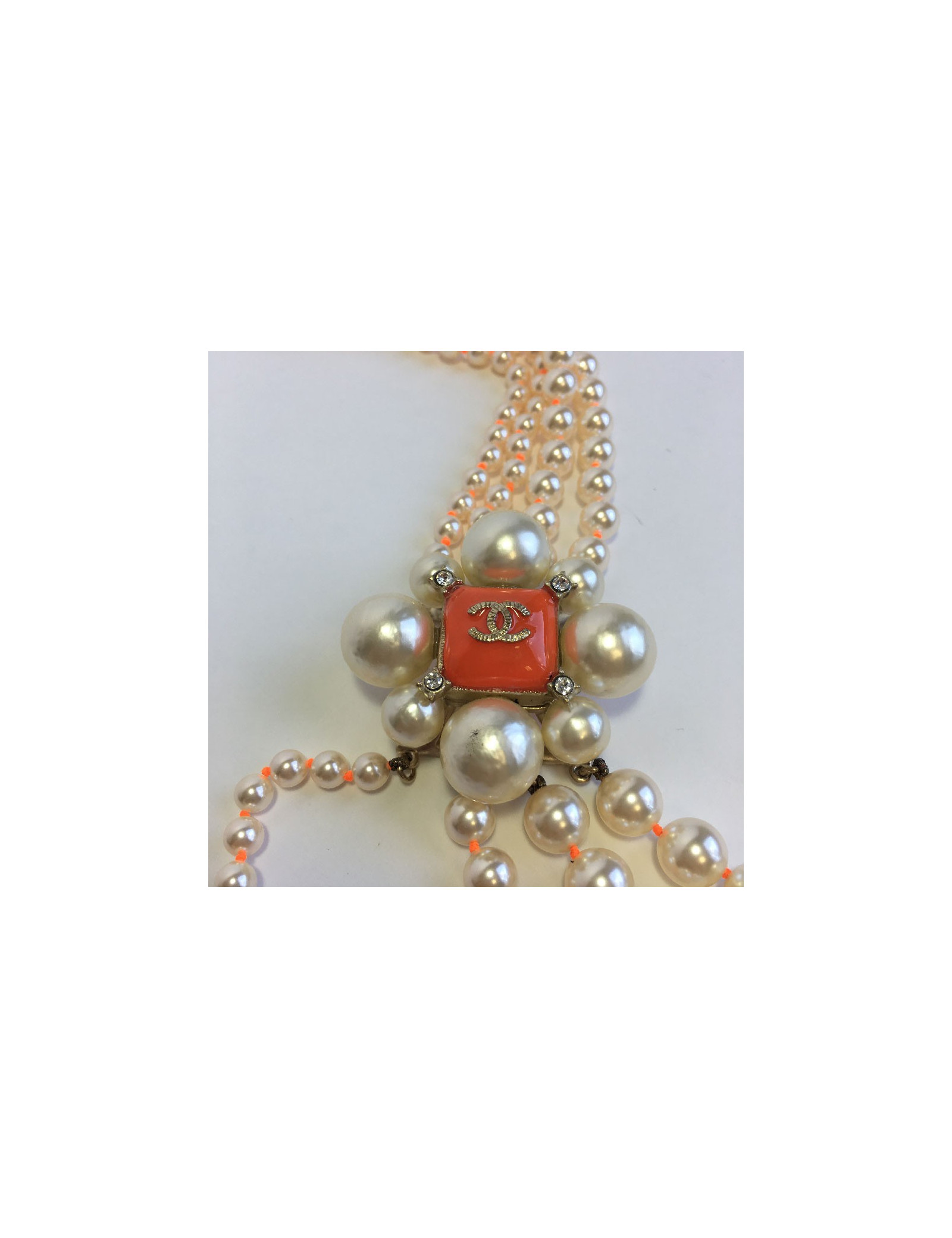 Sautoir CHANEL 4 rangs perles nacrées et orange