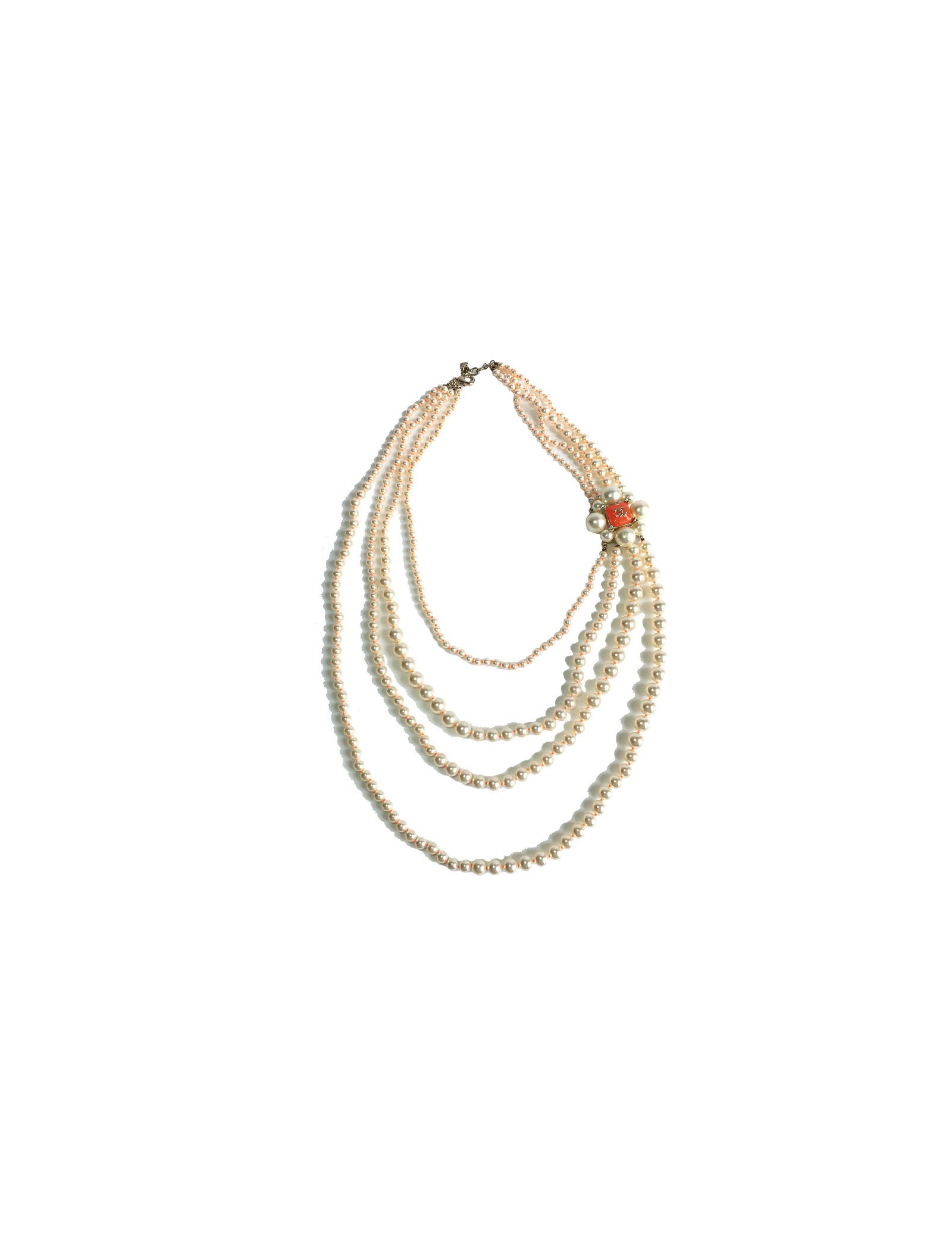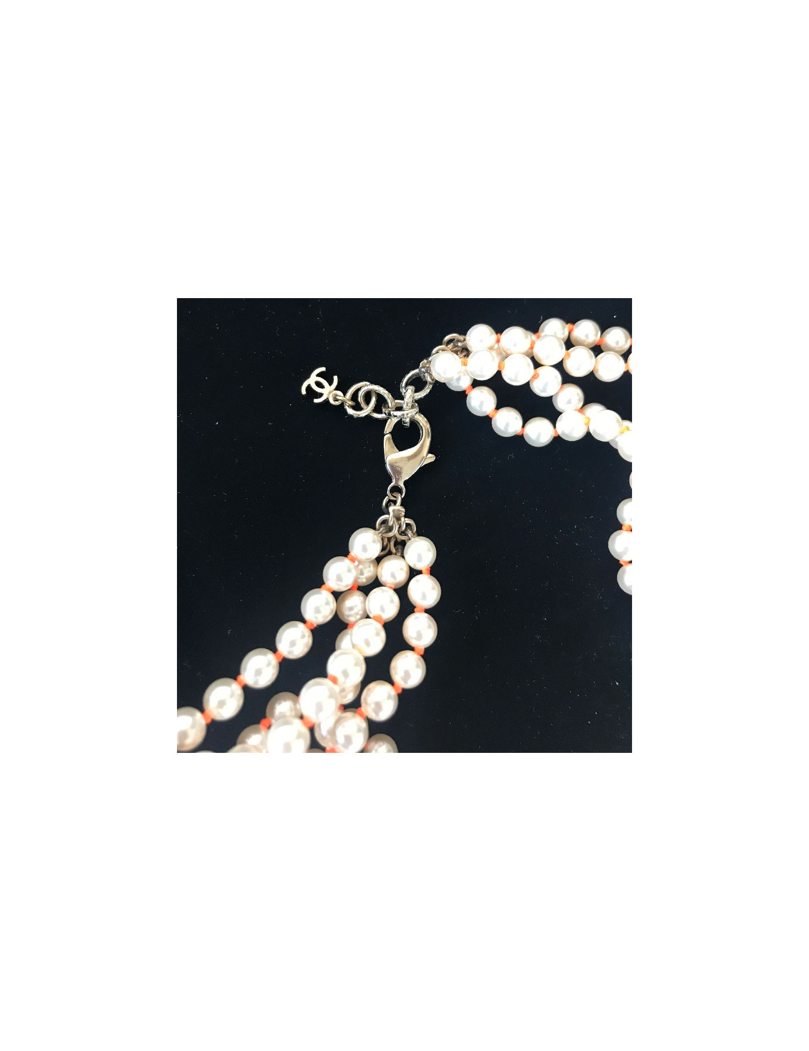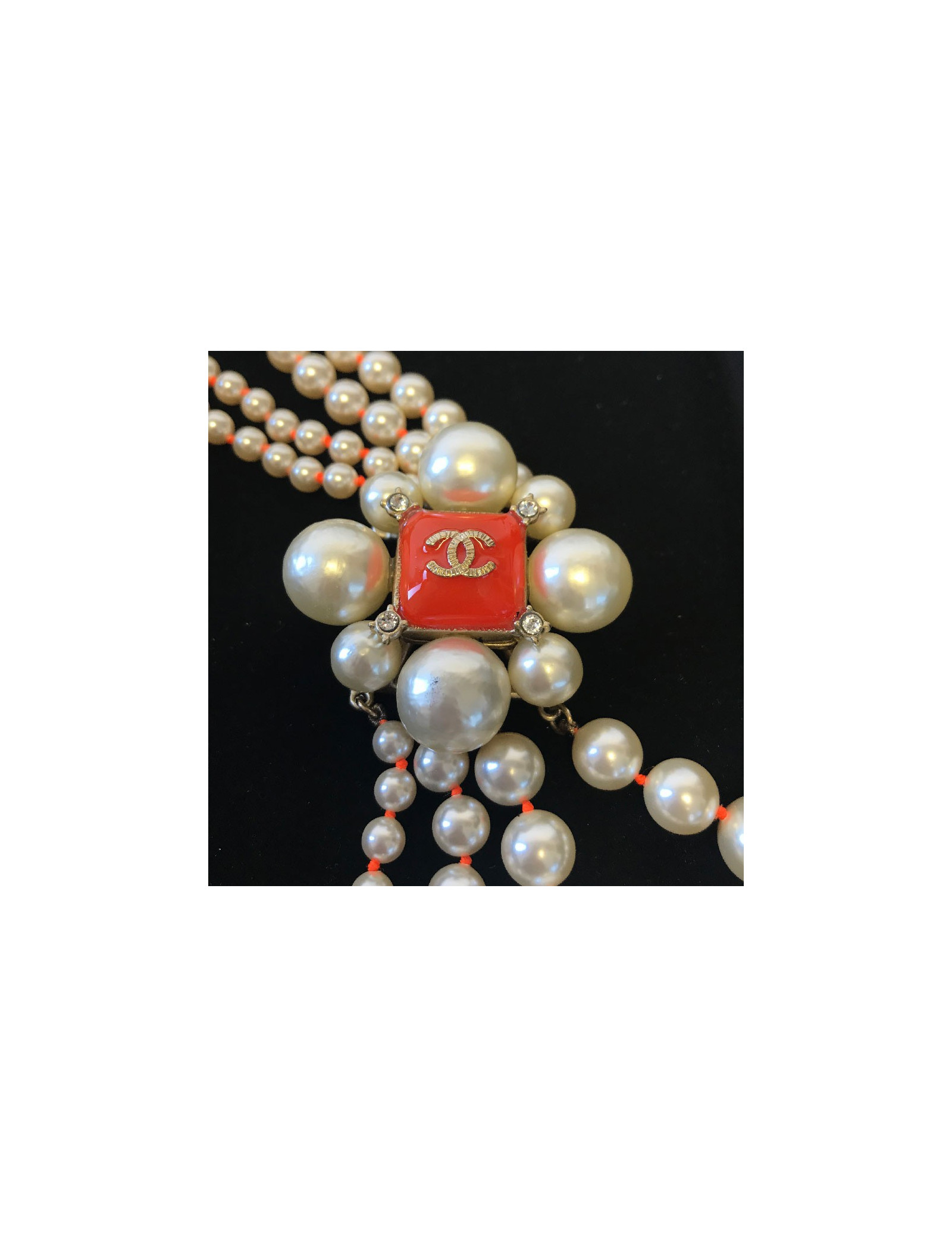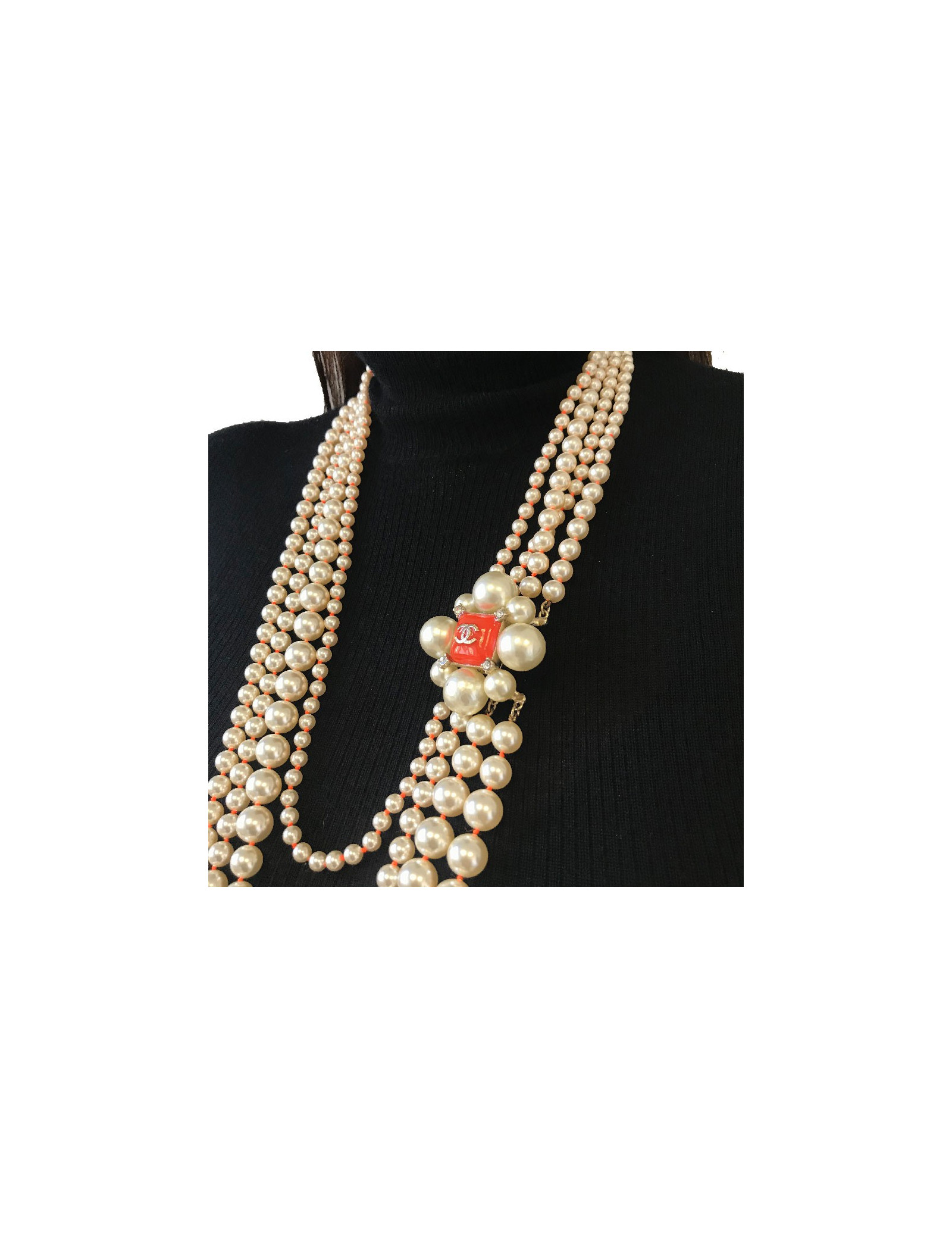 Sautoir CHANEL 4 rangs perles nacrées et orange