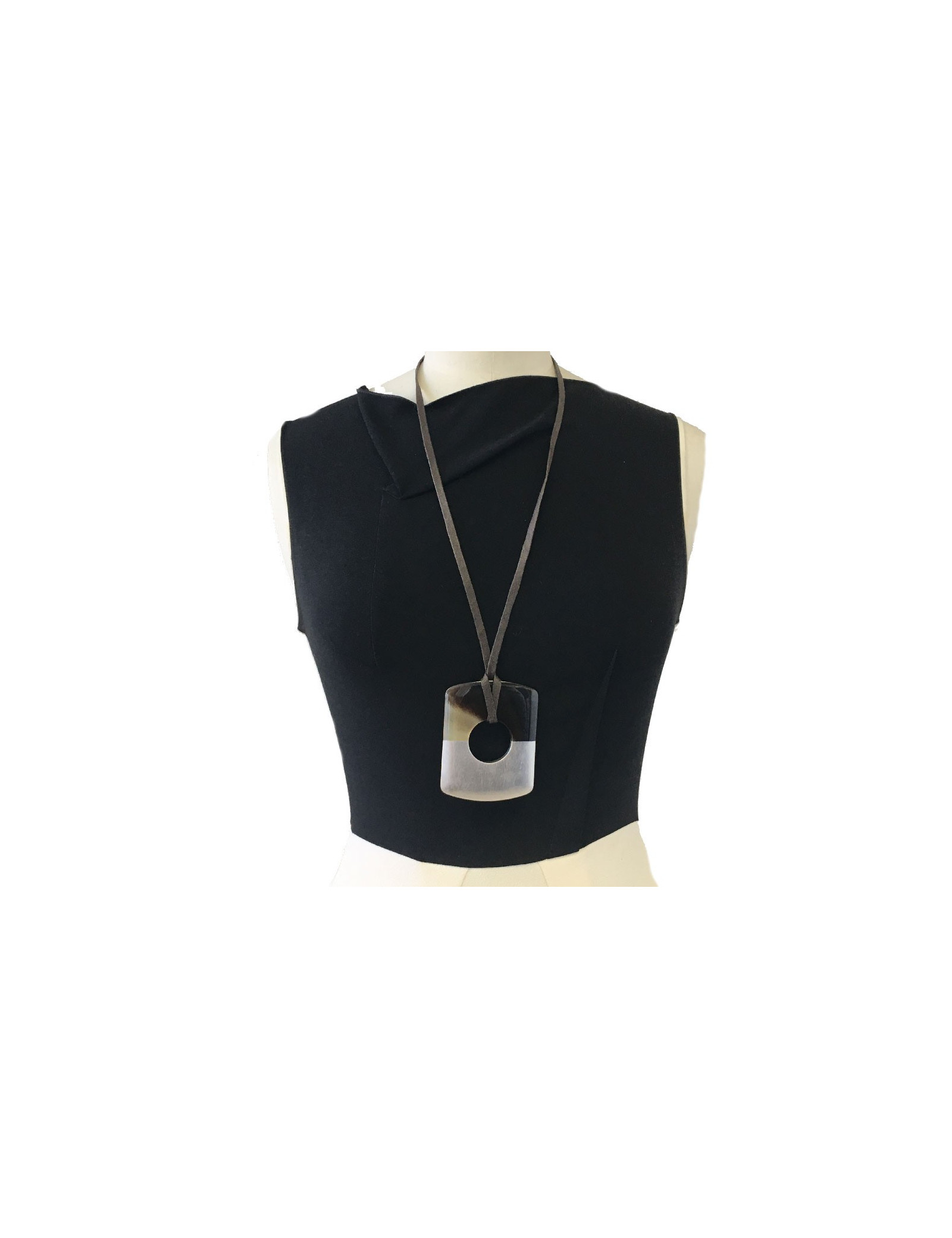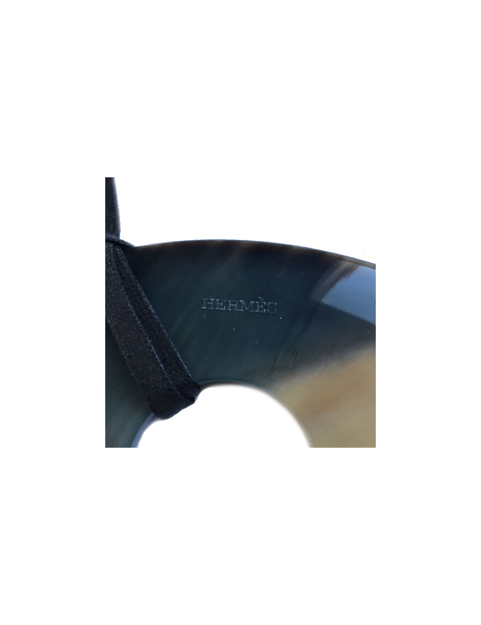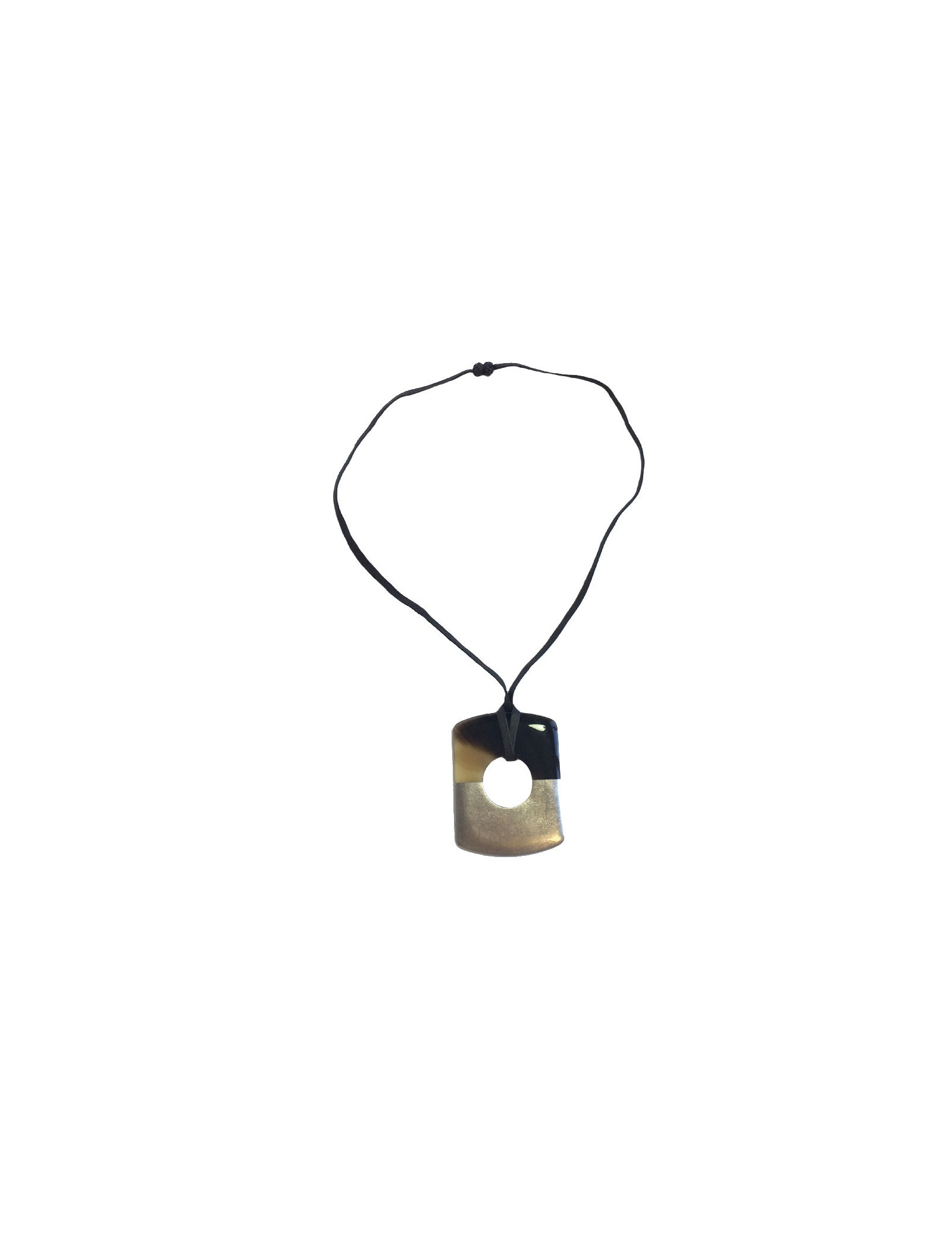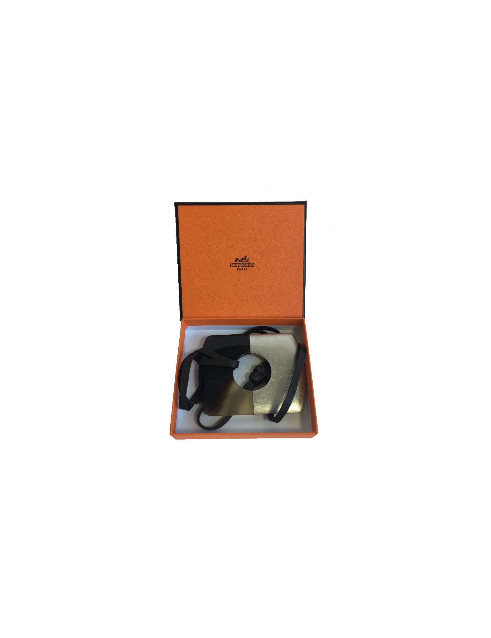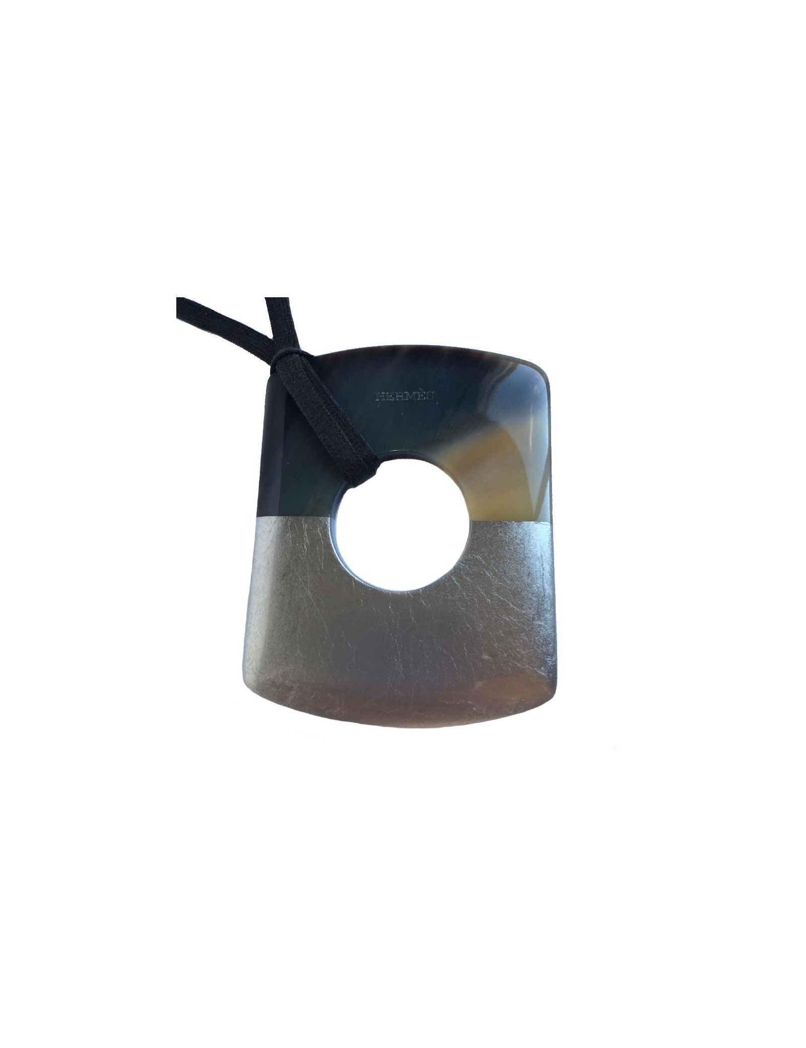 Pendentif Hermès, modèle Dalva, en corne et feuille d'or bronze doré Hermès, avec corde réglable.