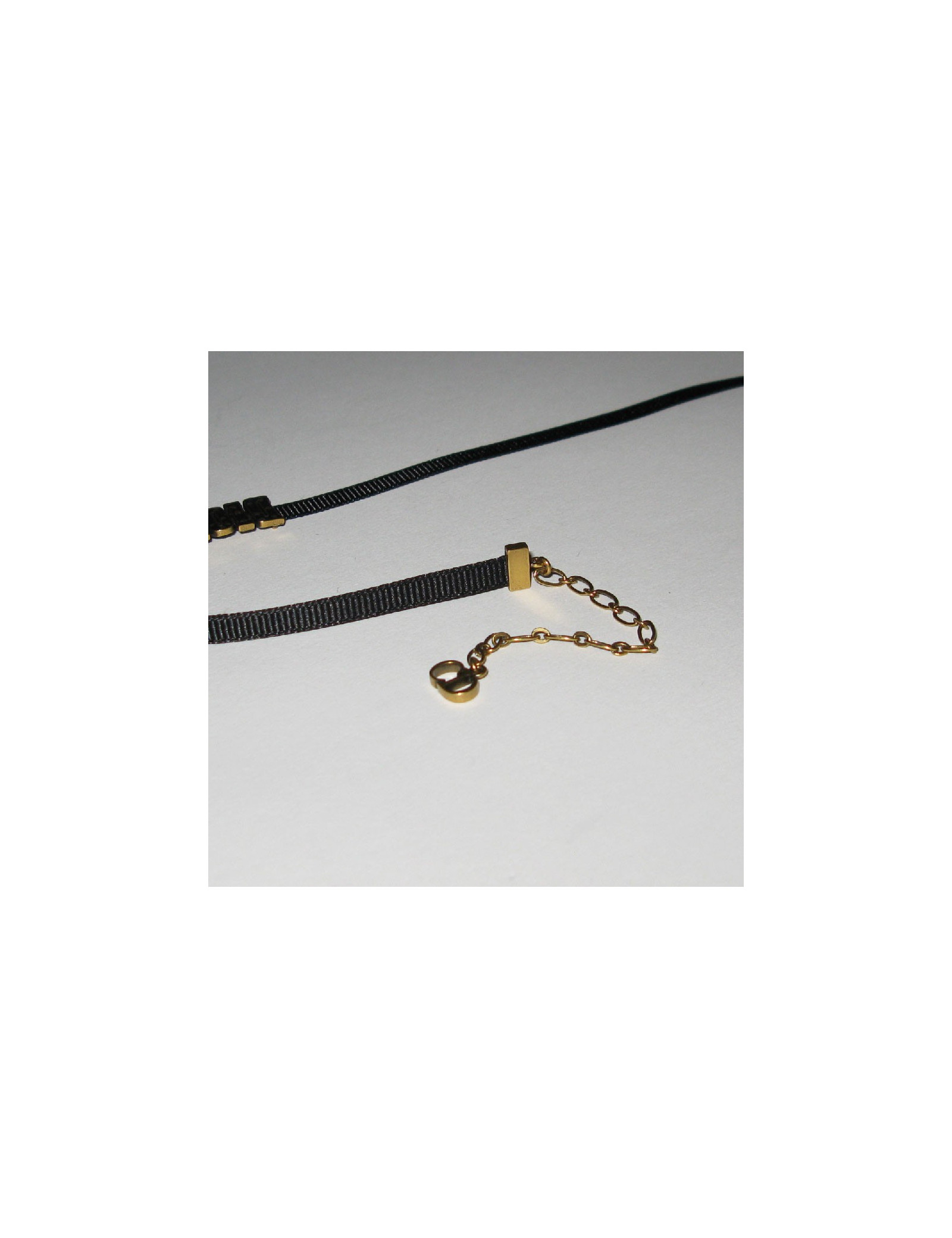Collier "DIOR" ras de cou en gros grain noir et métal doré