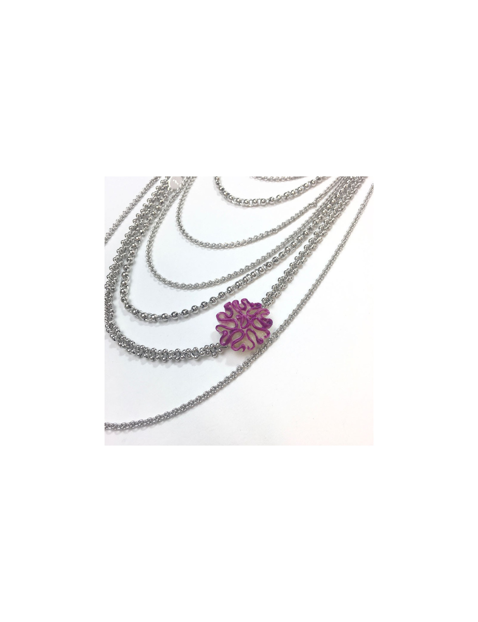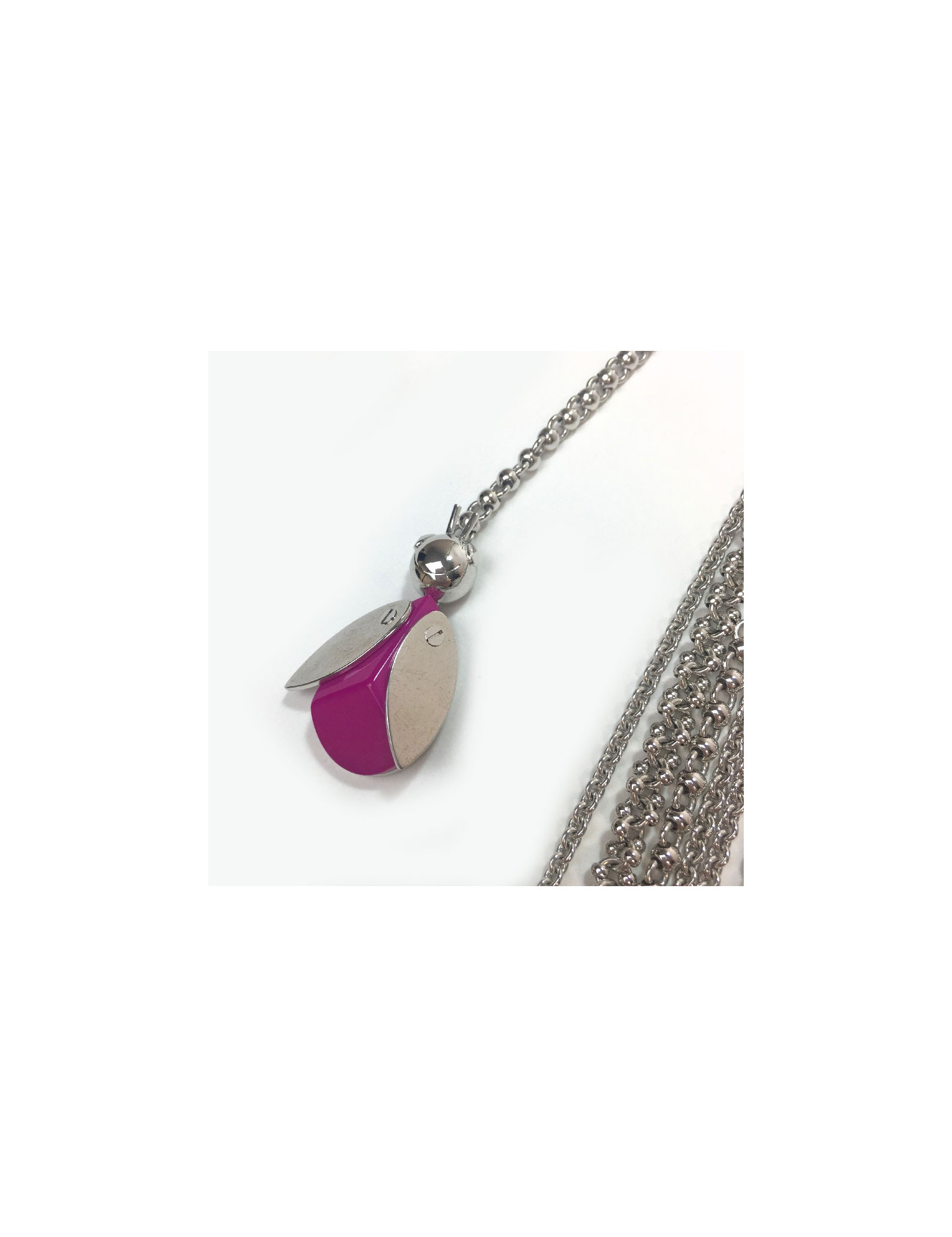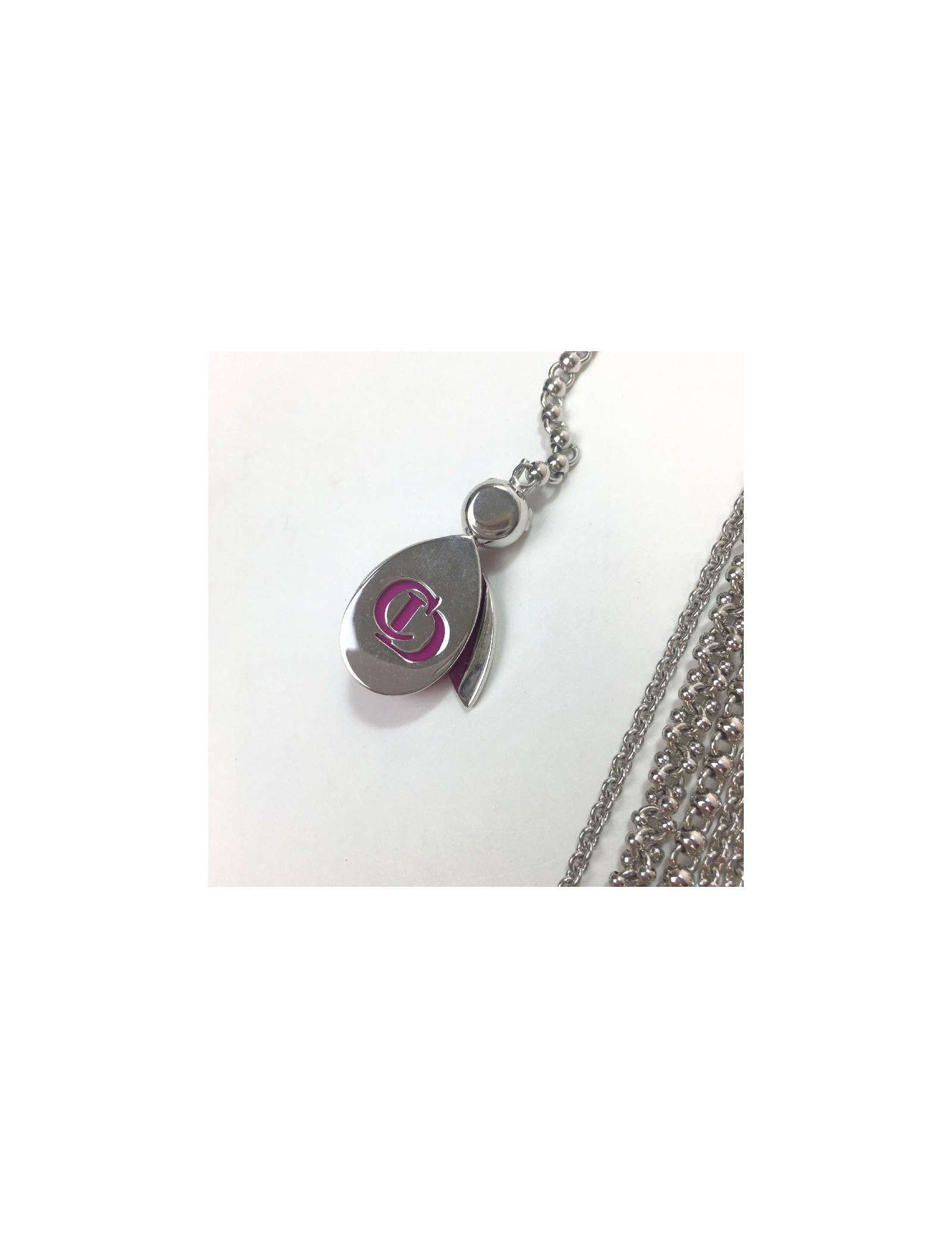 Sautoir DIOR multirangs en métal argenté