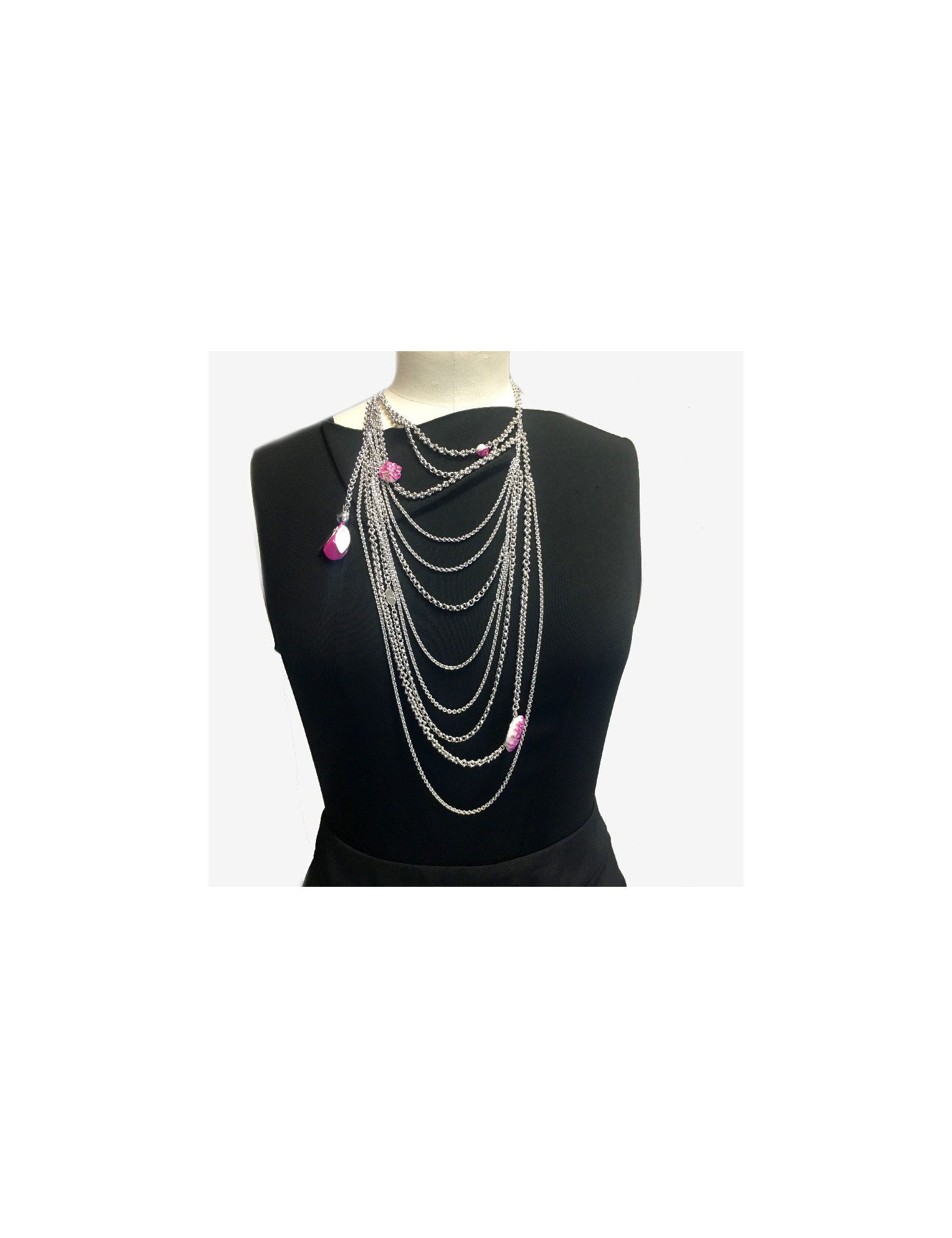10 rangs de chaînes de toutes tailles agrémentée de charms.