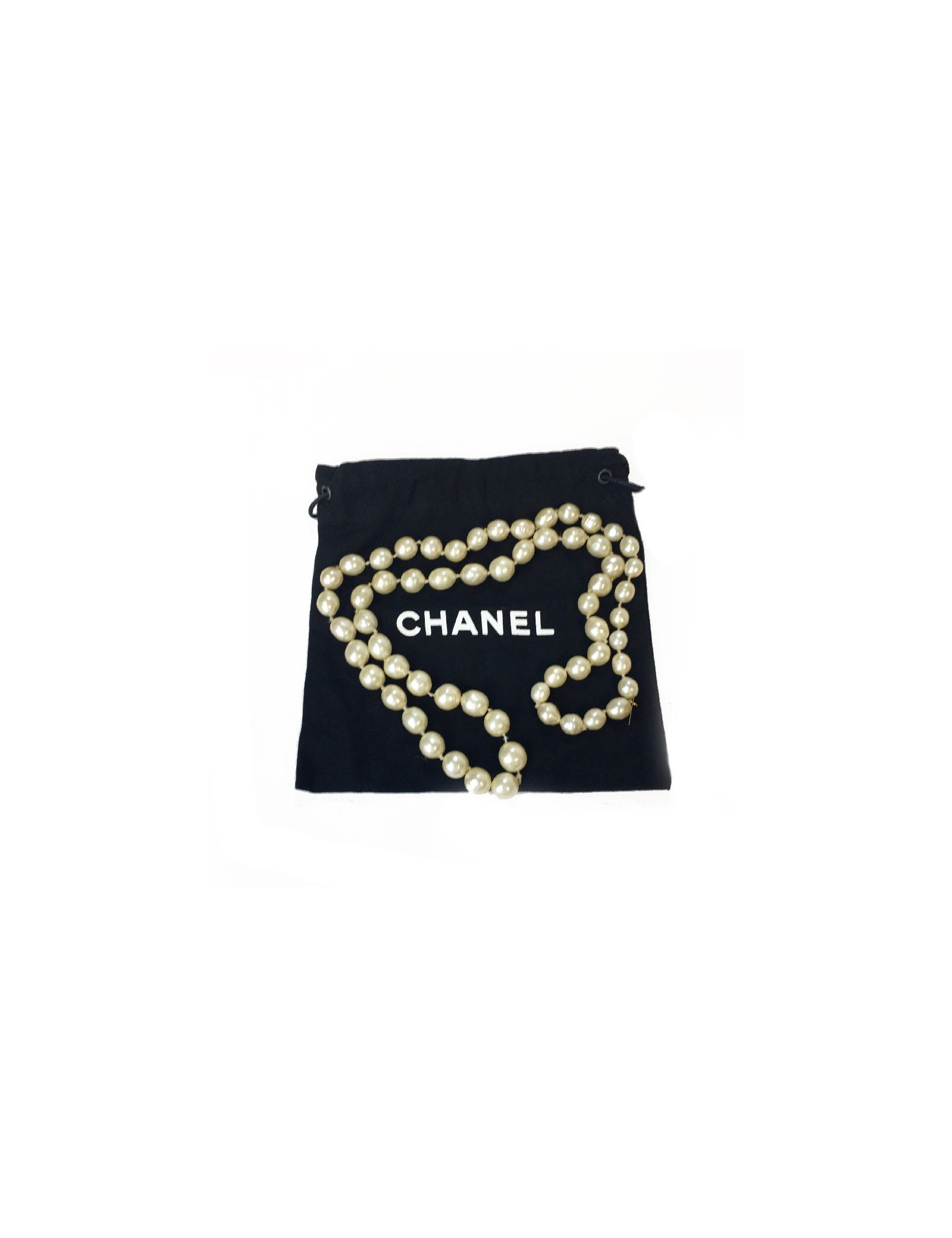 Sautoir Chanel '1983' vintage perles en pâte de verre nacrées