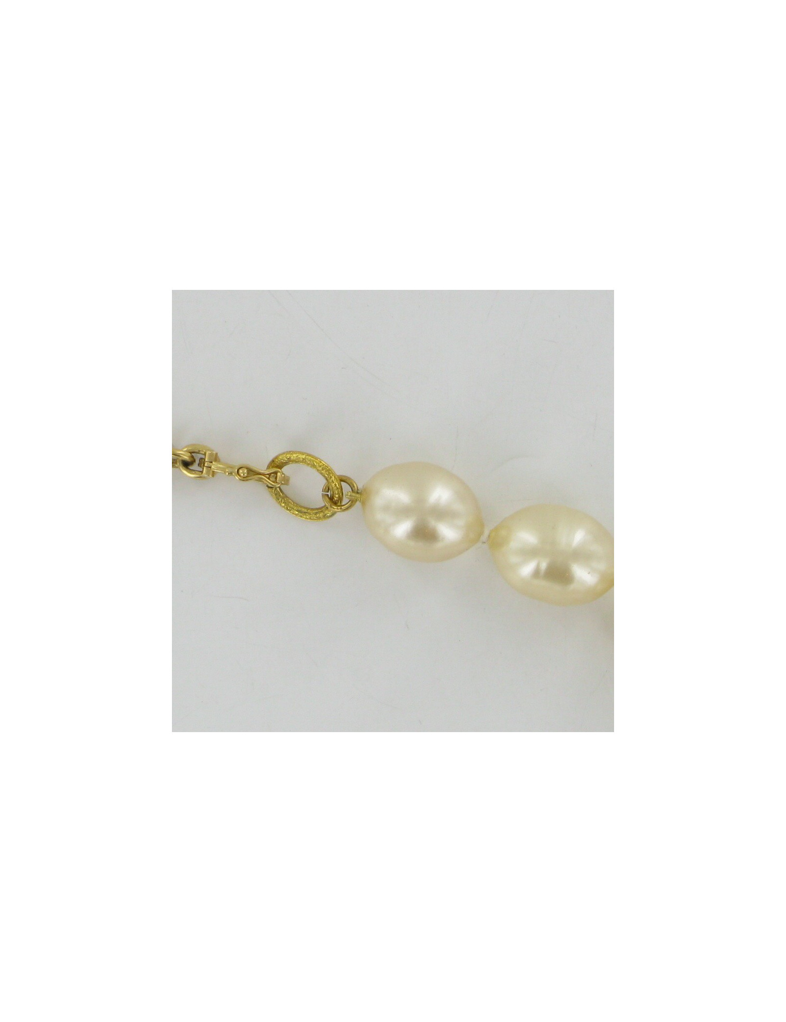 Sublime sautoir couture vintage CHANEL composé d'une chaîne dorée et de grosses perles en pâte de verre nacrée. Chaque perle est fabriquée à la main (savoir-faire français)