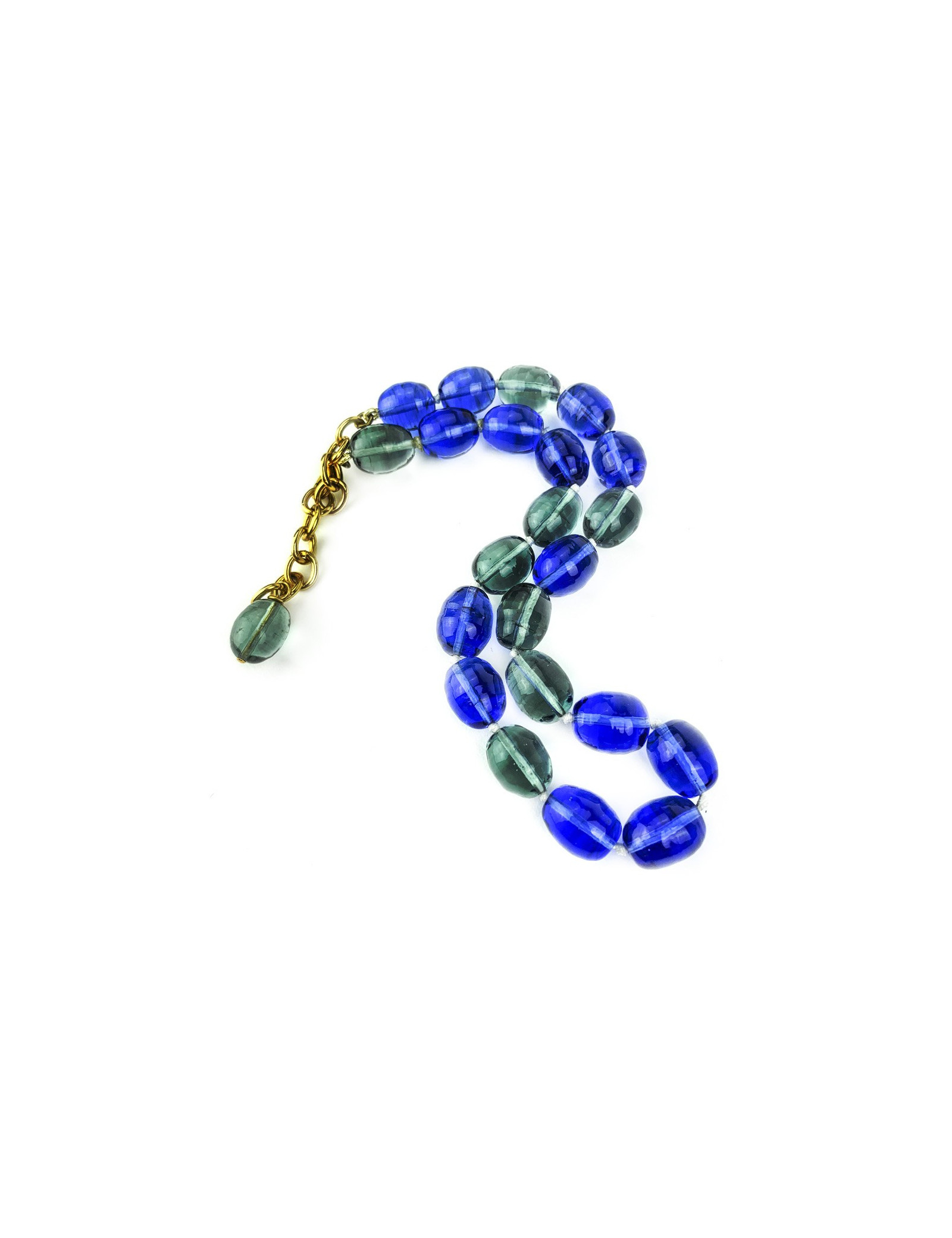 MARGUERITE DE VALOIS Collier pâte de verre bleu saphir et vert fumé